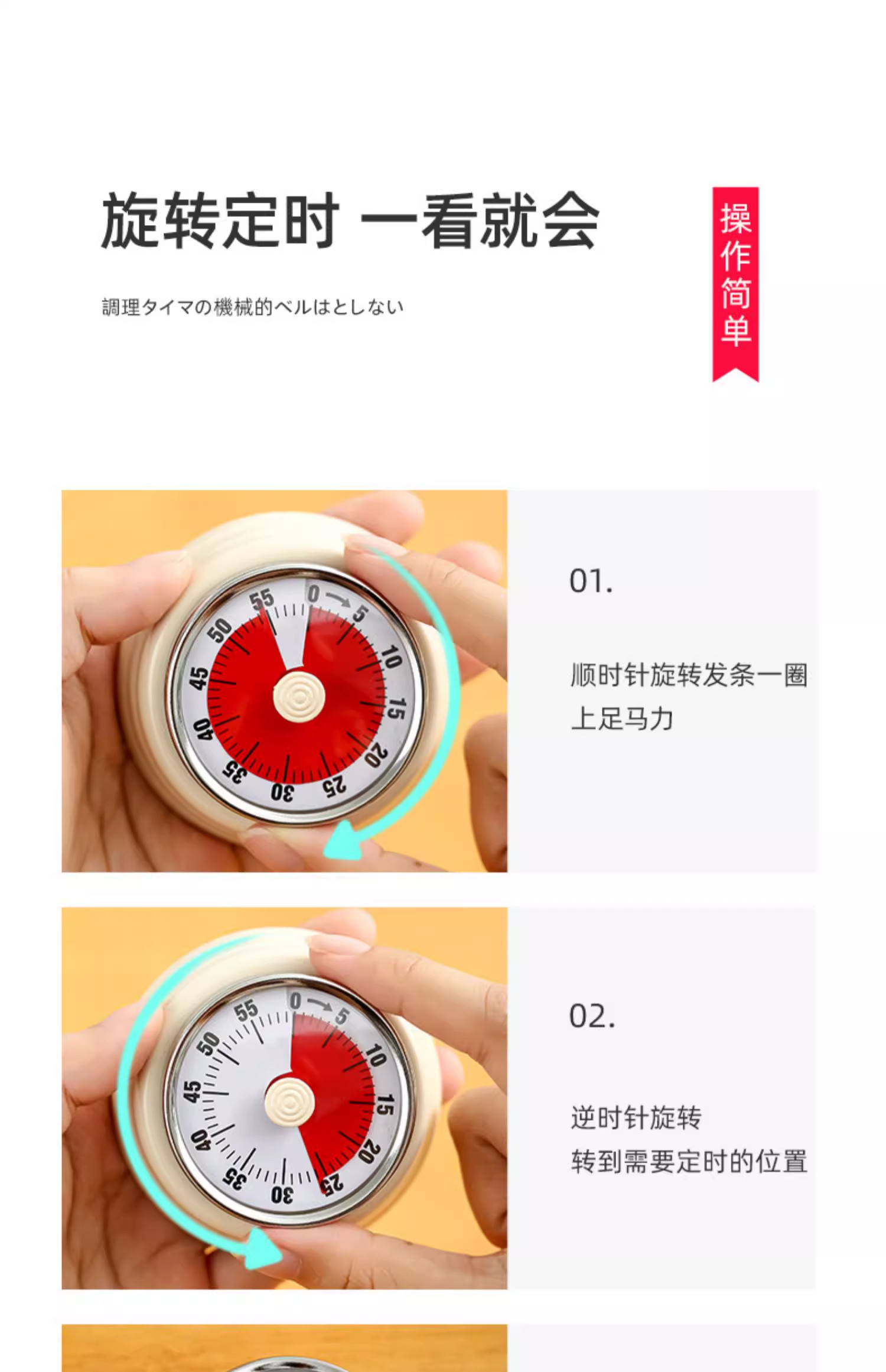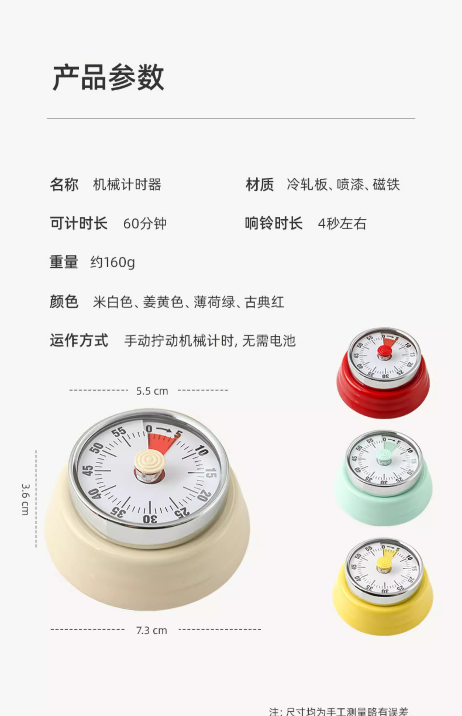 Yiheng Kitchen Reminder Mechanical Timer Primary School Student Self-Discipline Artifact for Cooking Magnetic Learning Special Countdown