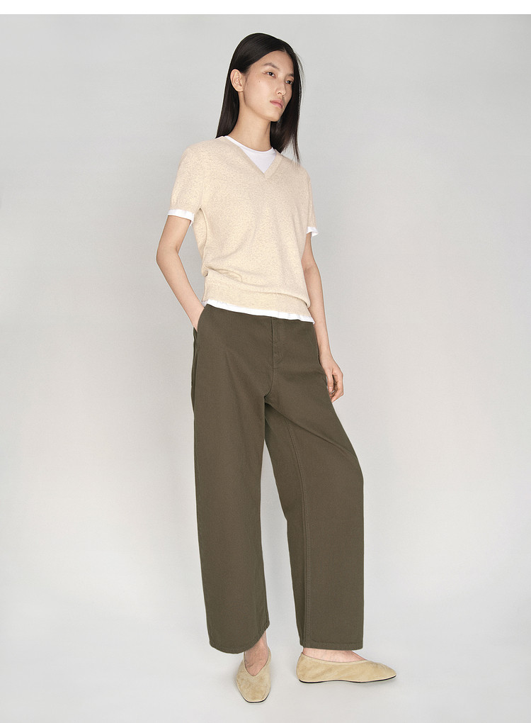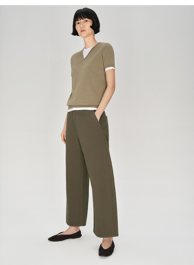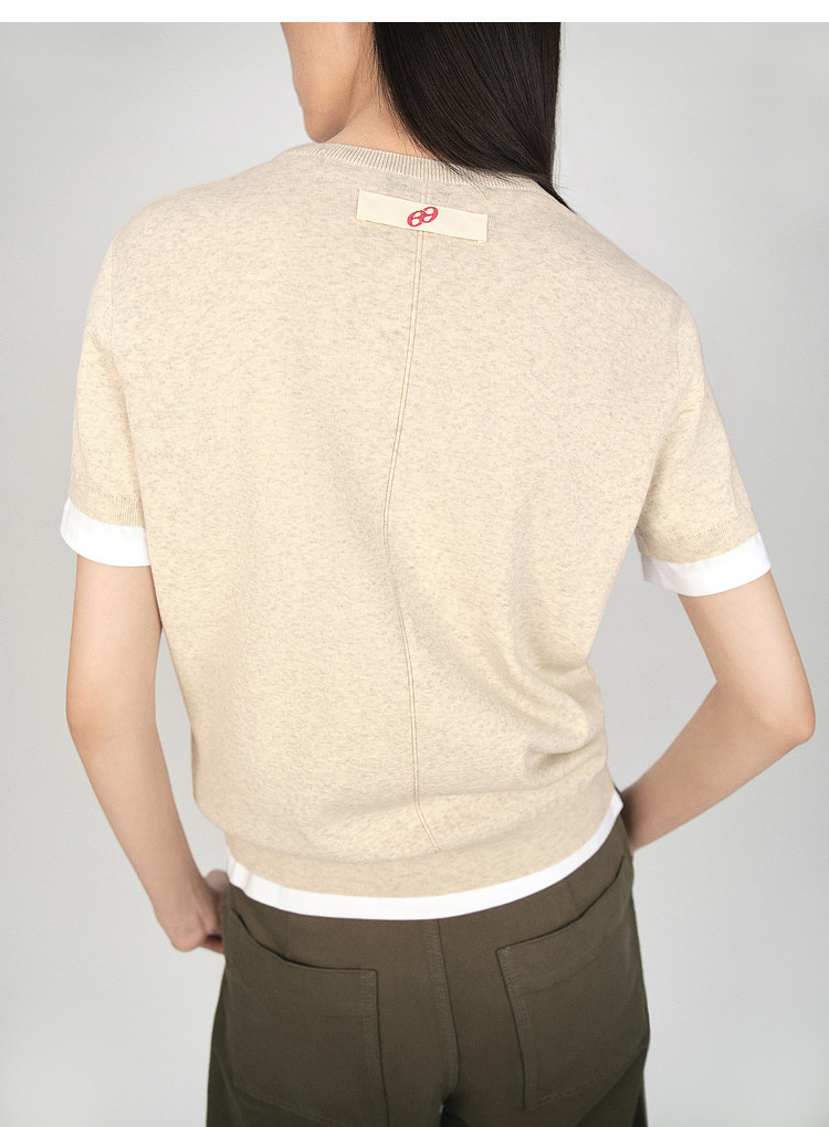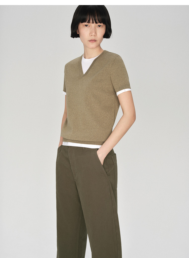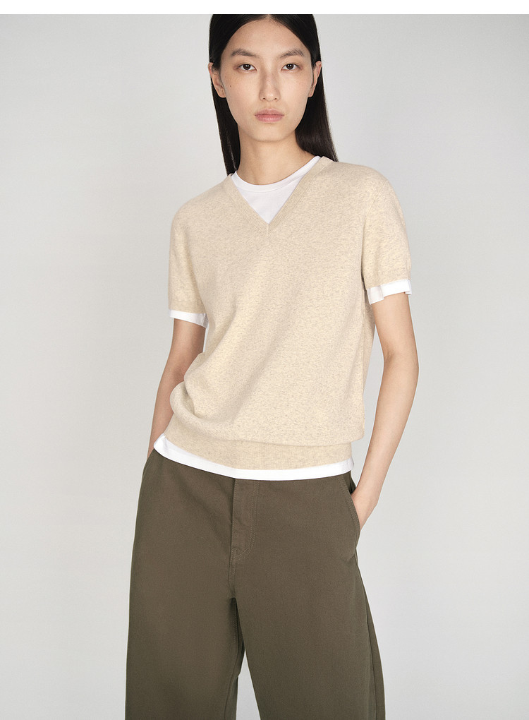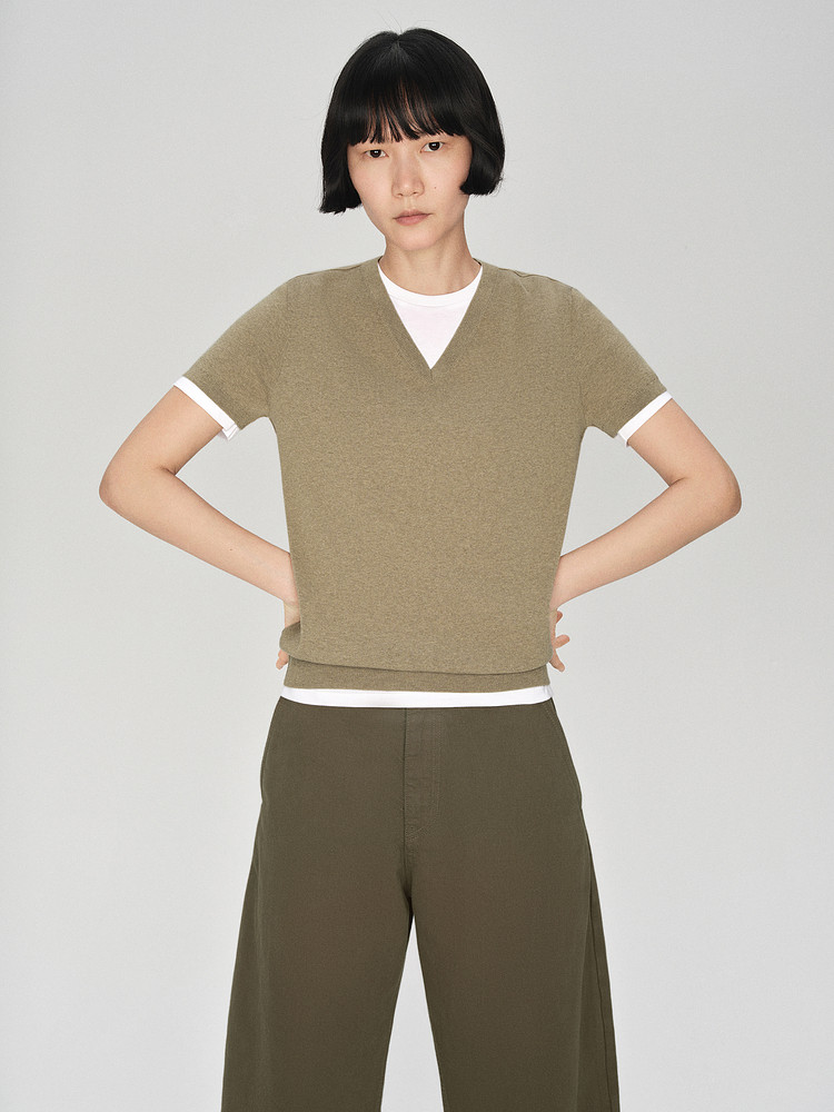 [E+ Light Life Series]Edition2025 Autumn New Knitted Short-Sleeve V-Neck Top Ebe3Swt012