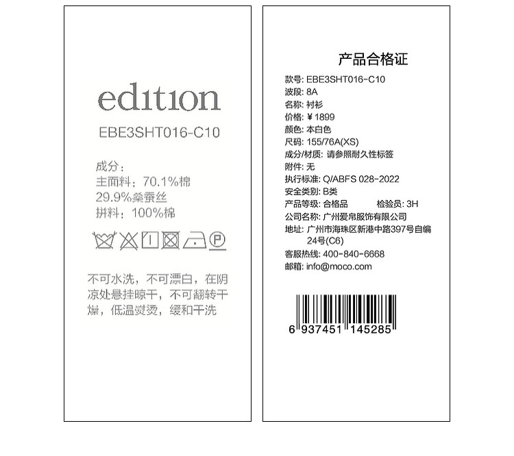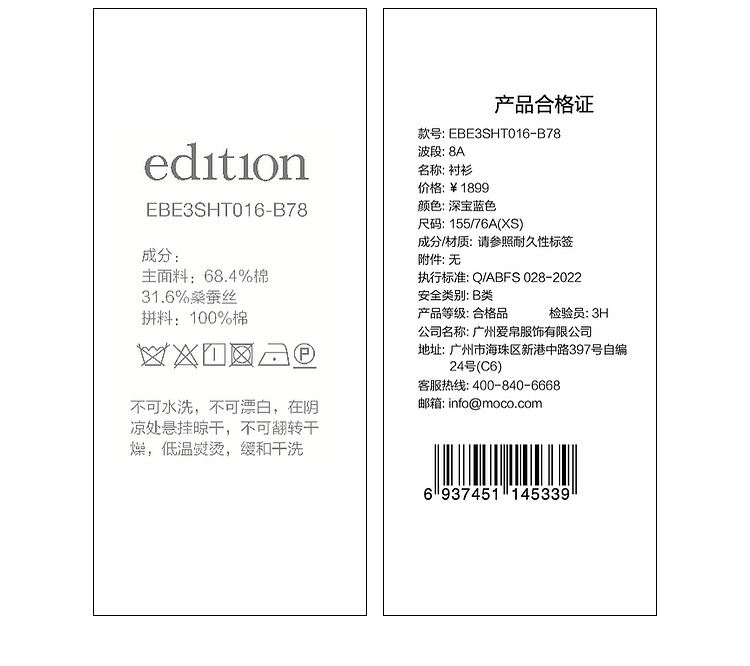 Material Composition Cotton 70.1% Mulberry Silk 29.9%