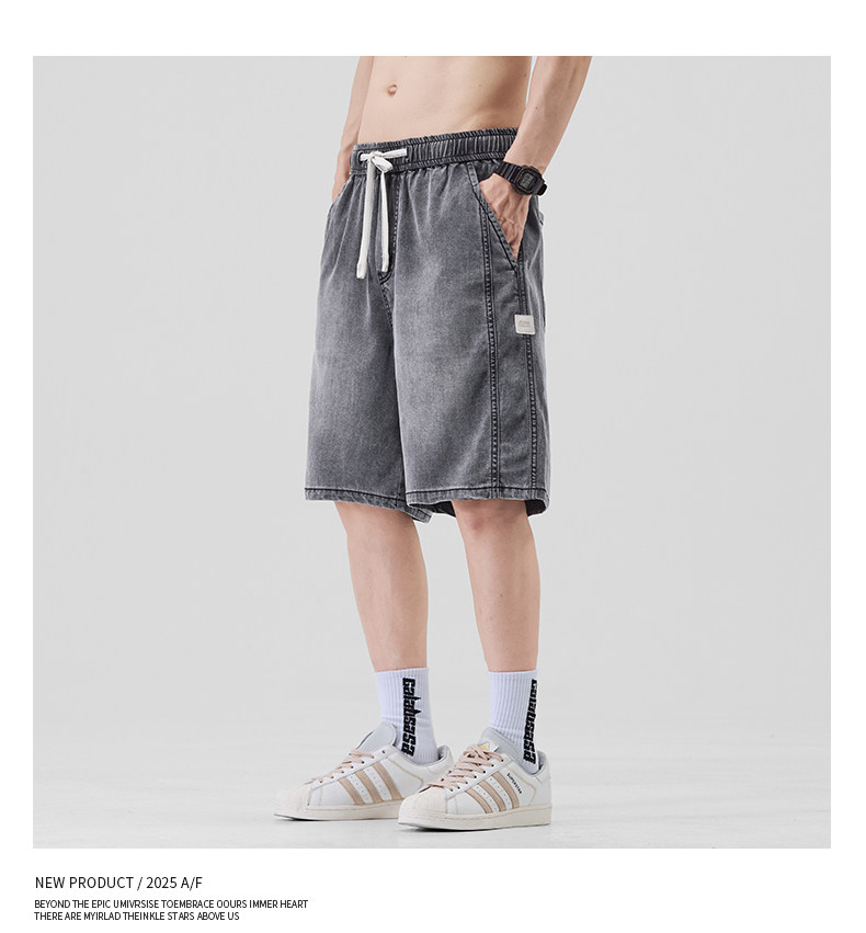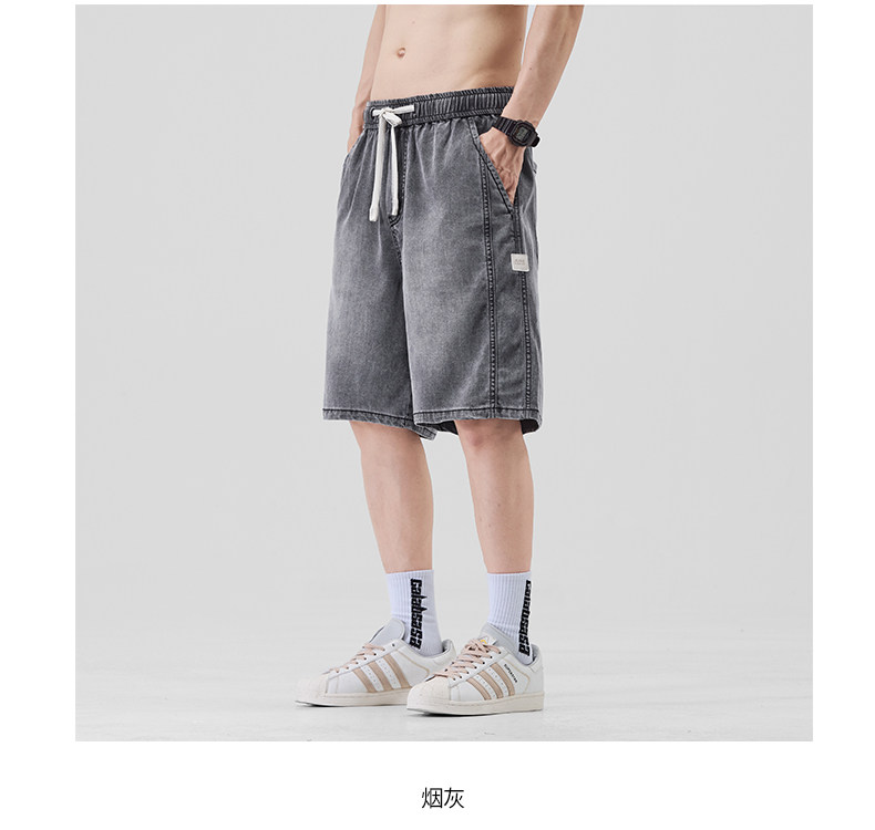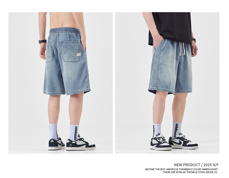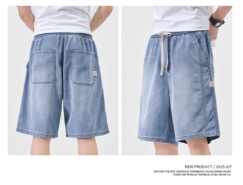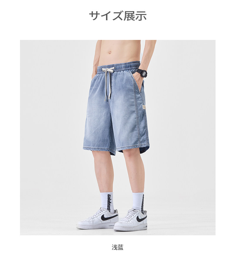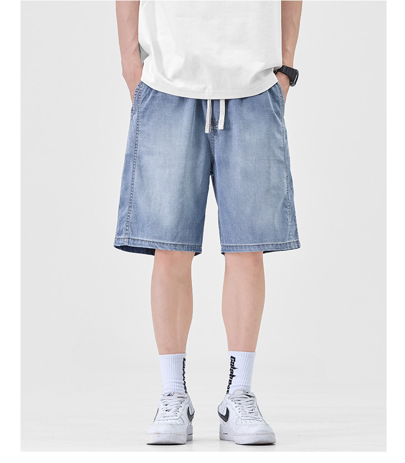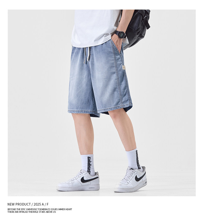 Pure cool lyocell denim shorts for men in summer ice silk thin loose American straight casual pants
