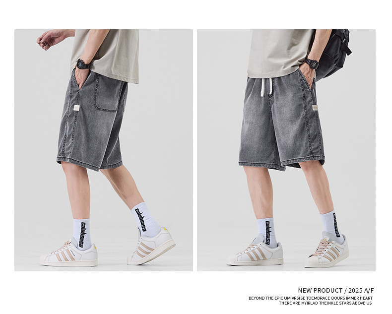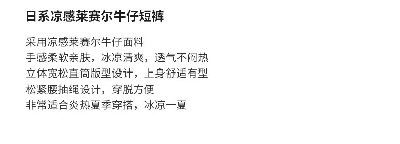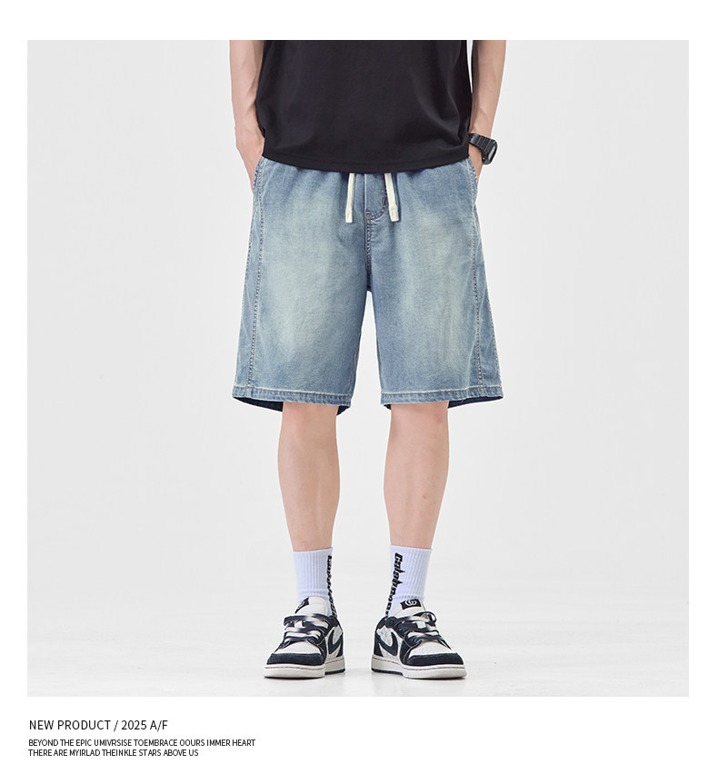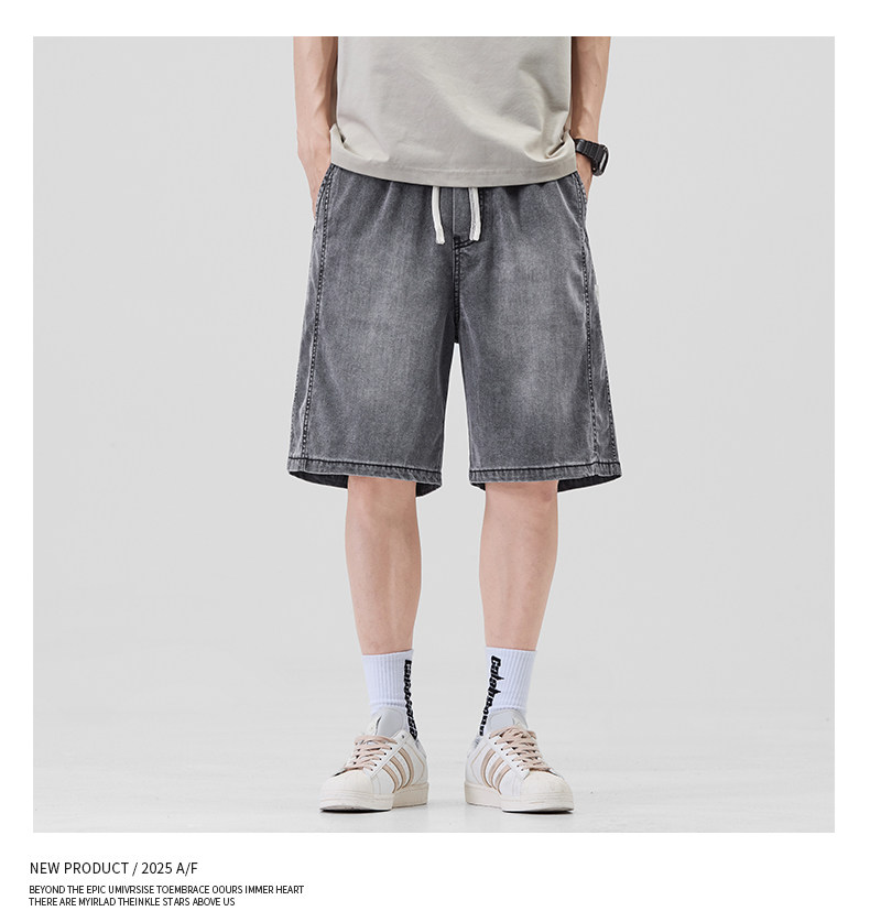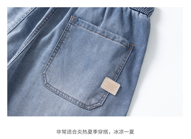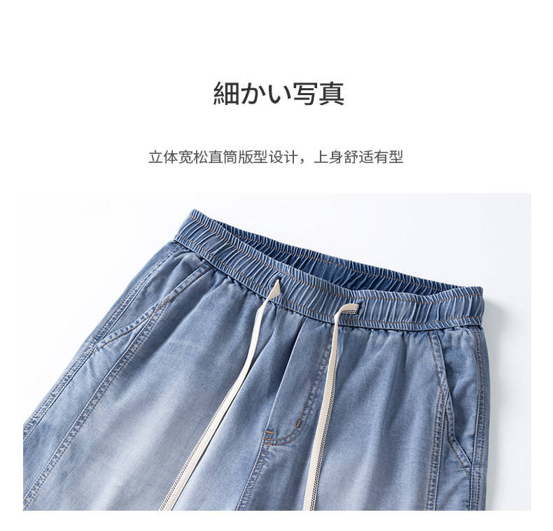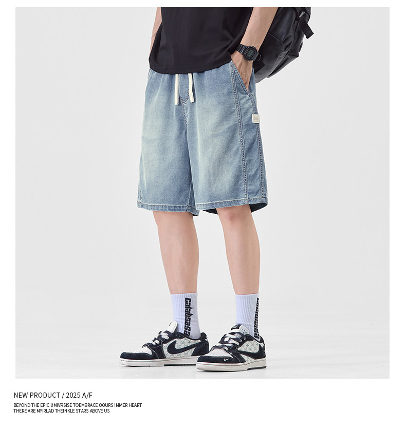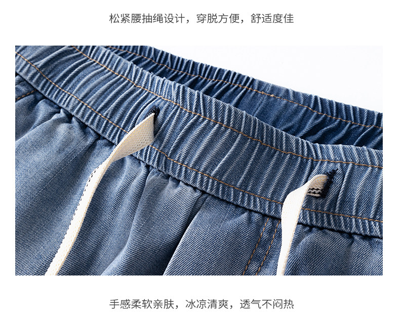 Pure cool lyocell denim shorts for men in summer ice silk thin loose American straight casual pants
