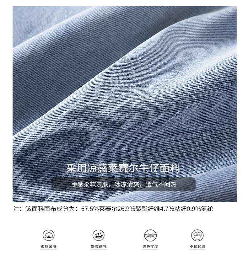 Material ingredients Lyocell fiber (Lyocell) 67.5% Polyester fiber 26.9% Viscose fiber (viscose fiber) 4.7% Polyurethane elastic fiber (spandex) 0.9%