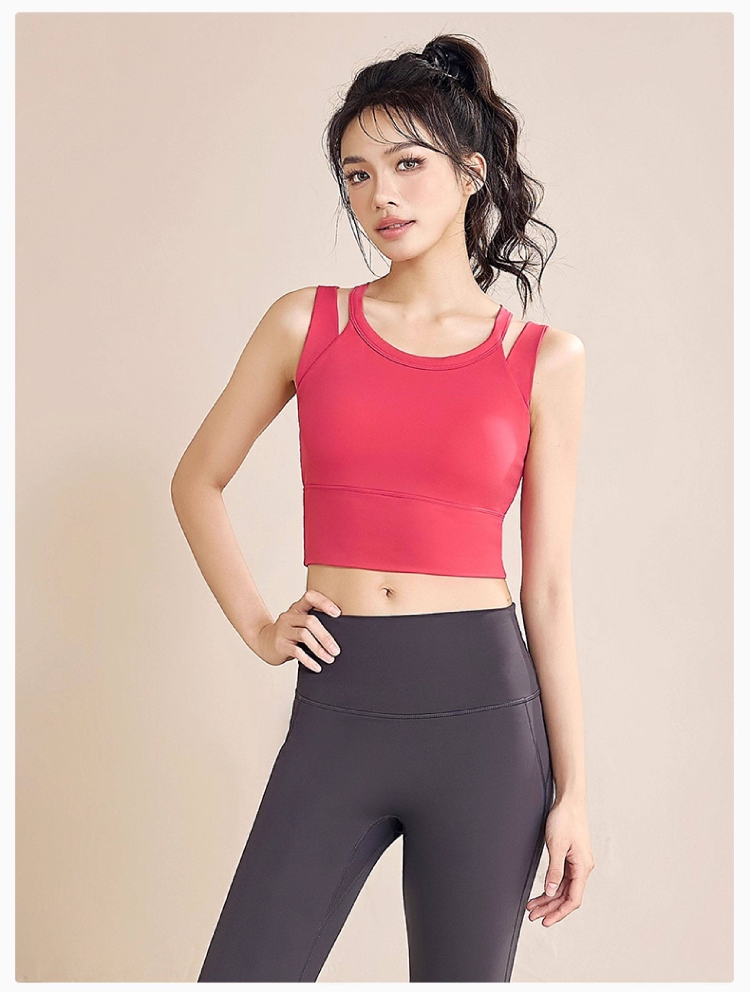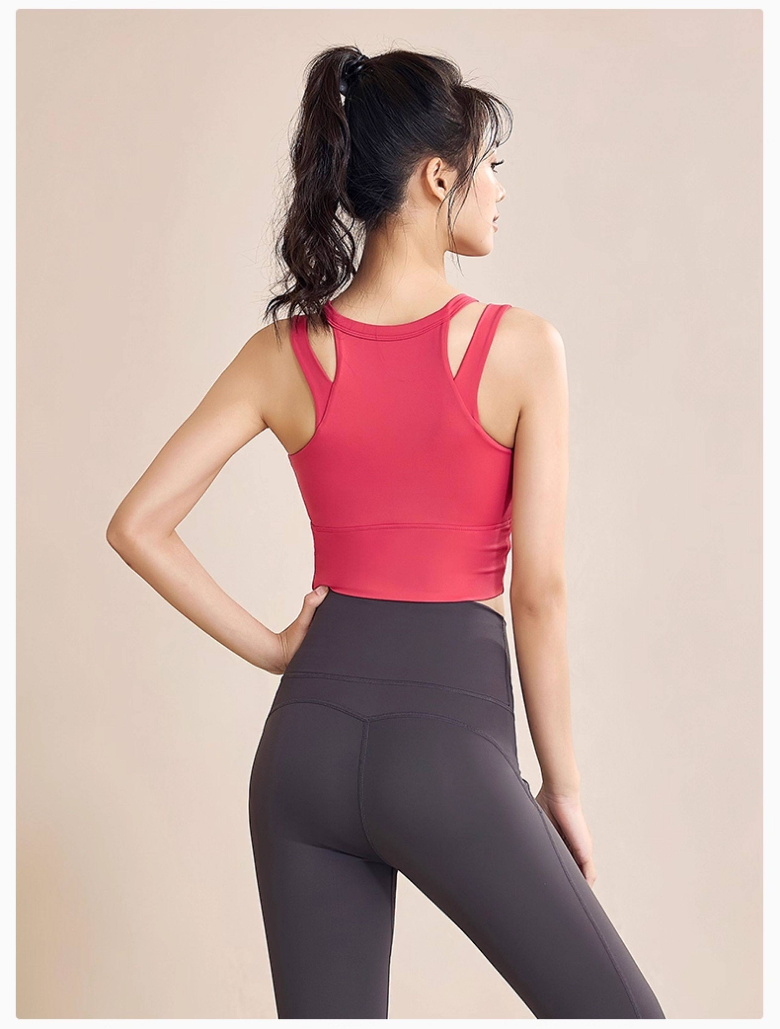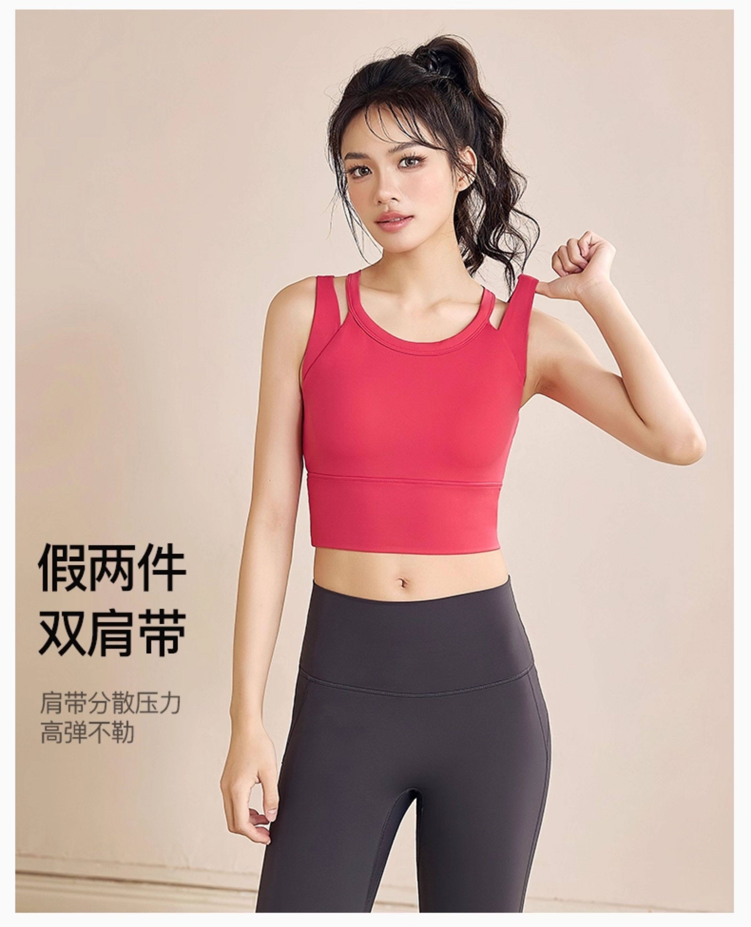 Deeplink double shoulder strap sports bra women's shockproof high-strength side breast shrinking running yoga vest fitness bra