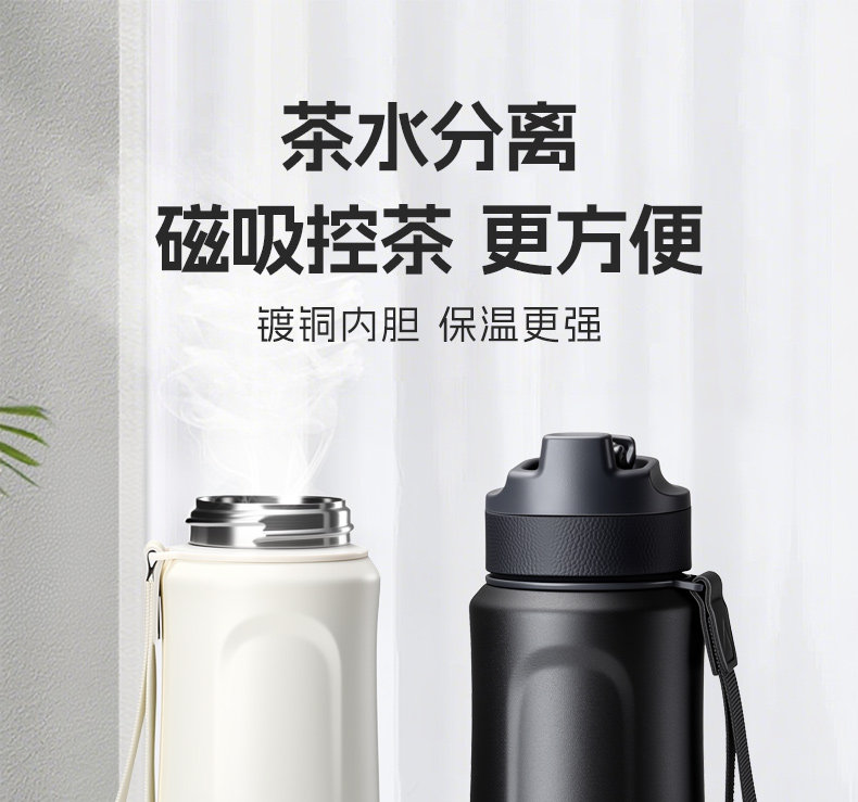 Insulated cup, water cup, tea cup, tea separation cup, men's magnetic suction high-value insulated kettle, cold-keeping office high-end