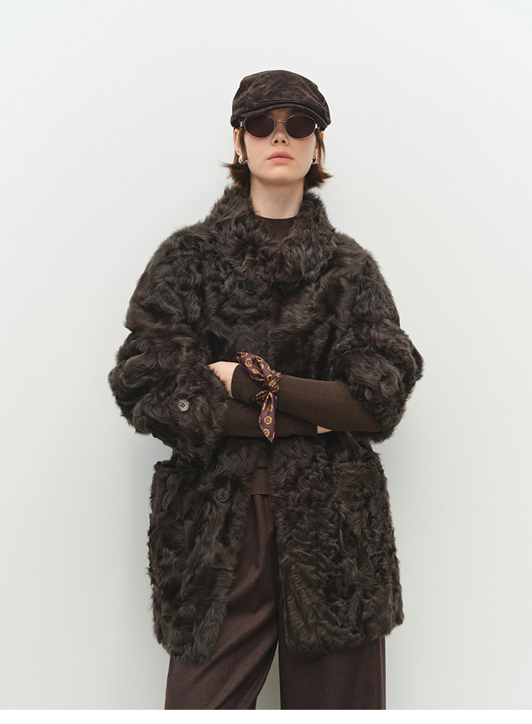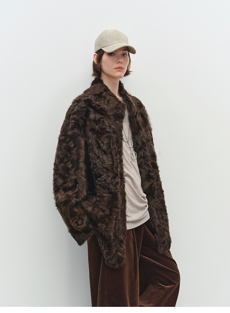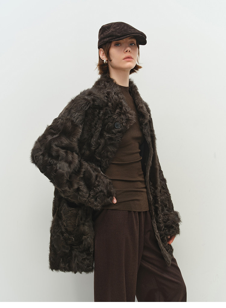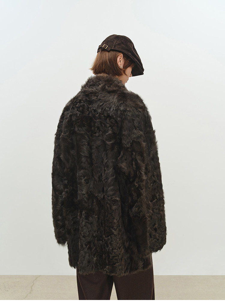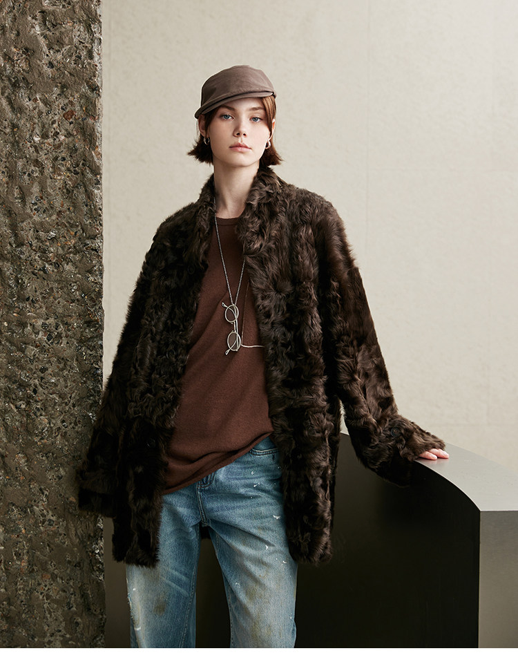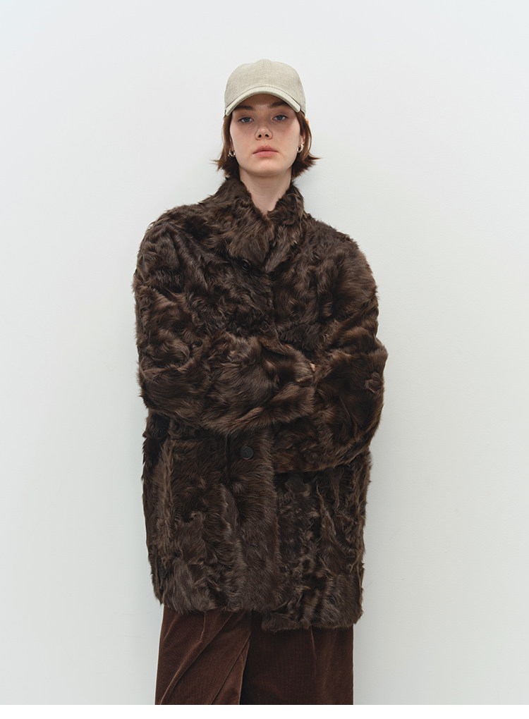 MSBEAST is a light and delicate little Hu sheep, natural curly hair, 0 pressure-sensitive stand-up collar, mid-length fur in one piece丨Light Traveler