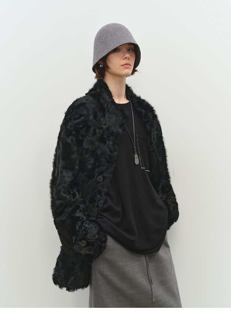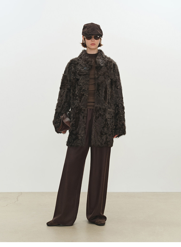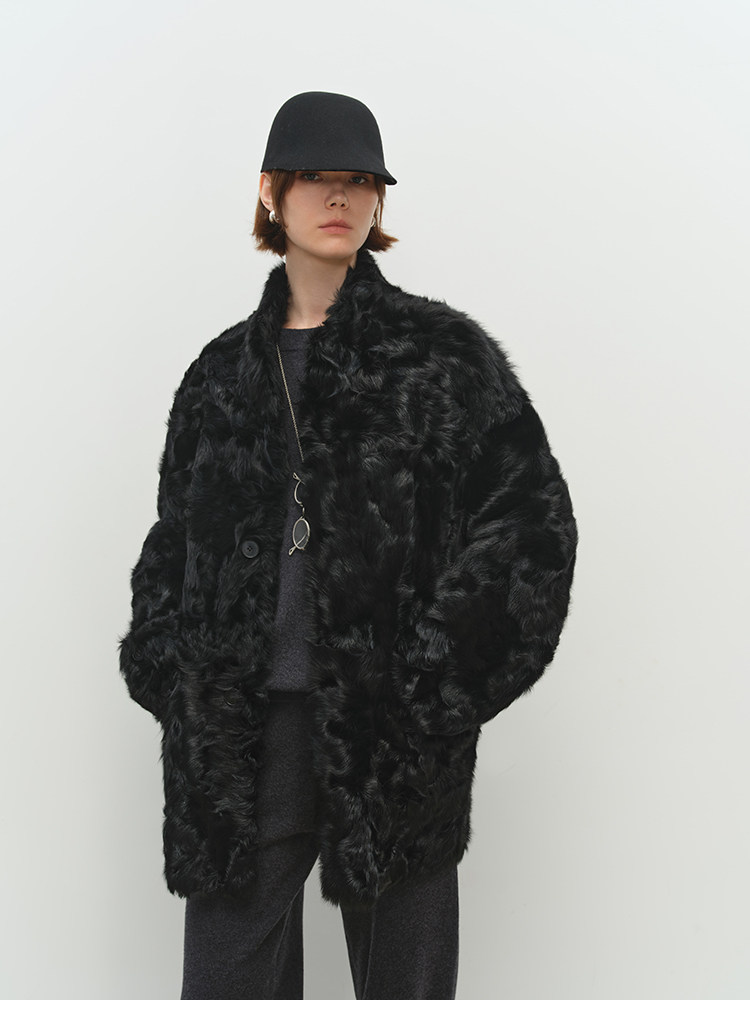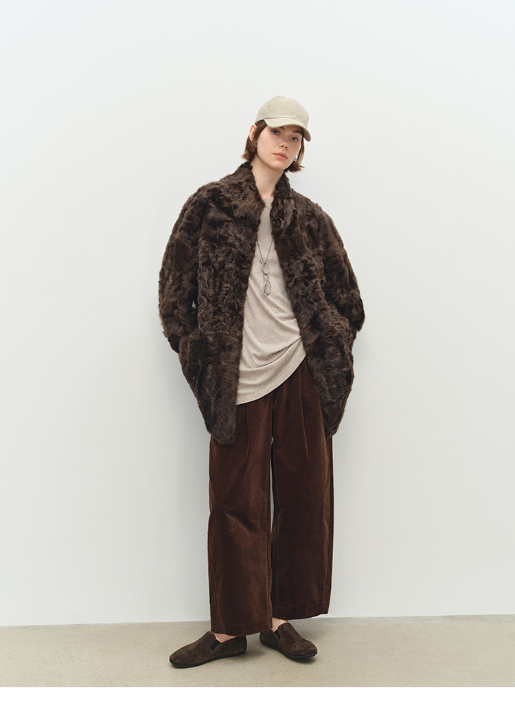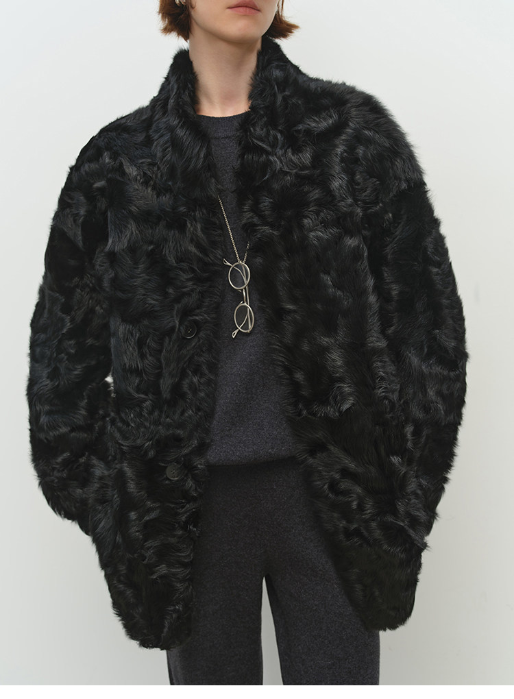 MSBEAST is a light and delicate little Hu sheep, natural curly hair, 0 pressure-sensitive stand-up collar, mid-length fur in one piece丨Light Traveler