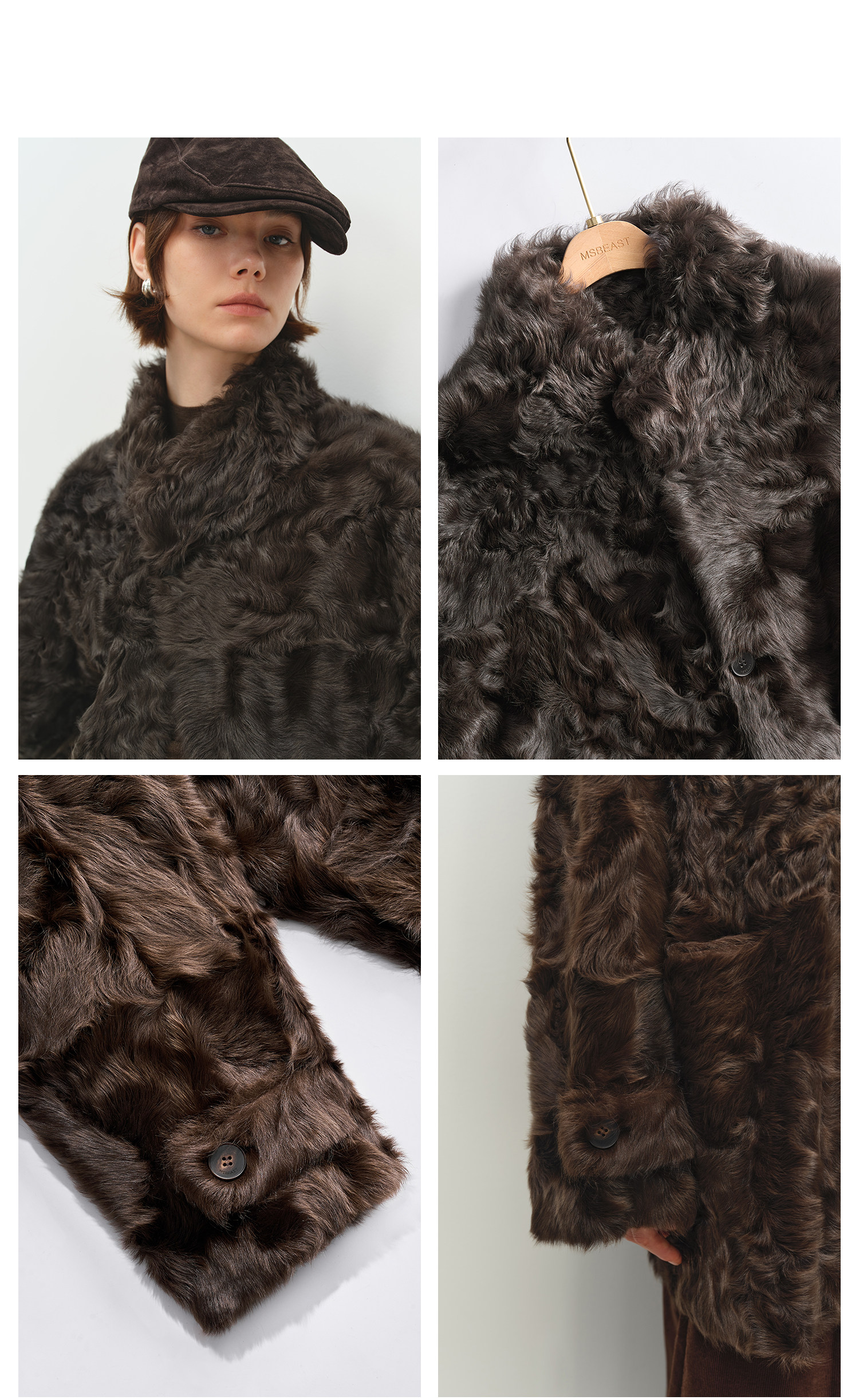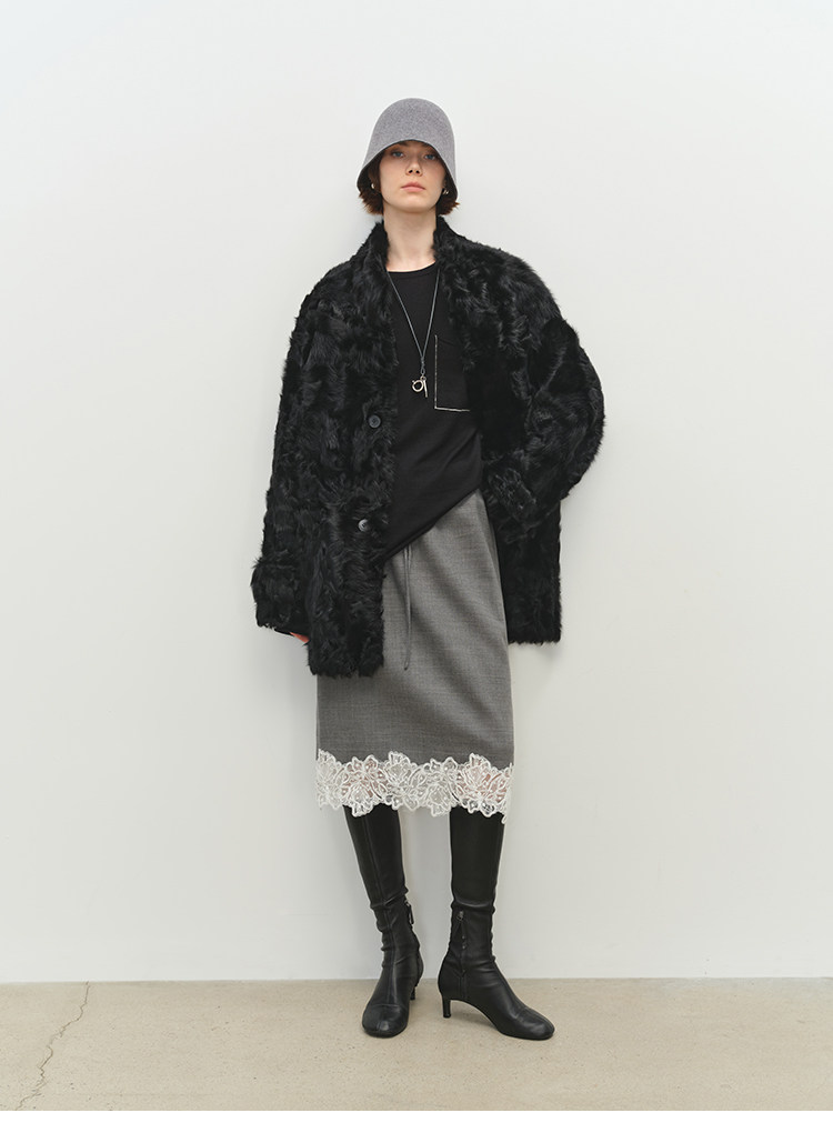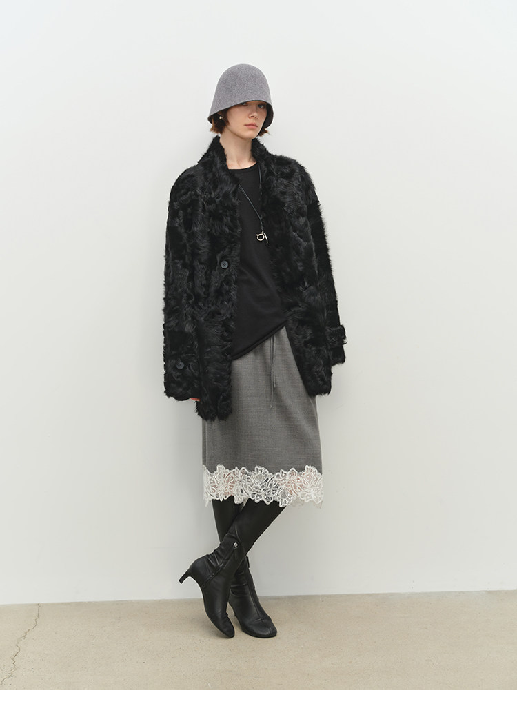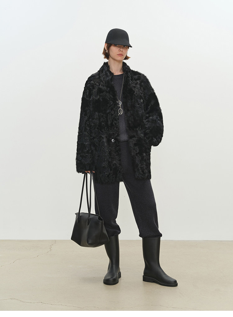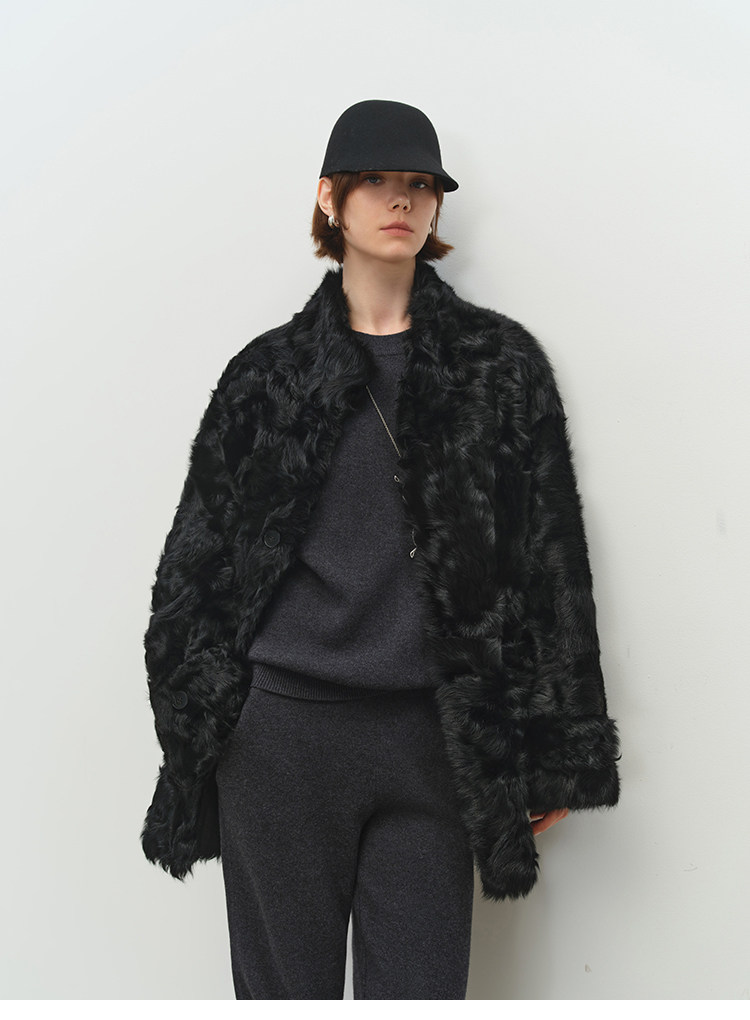 MSBEAST is a light and delicate little Hu sheep, natural curly hair, 0 pressure-sensitive stand-up collar, mid-length fur in one piece丨Light Traveler