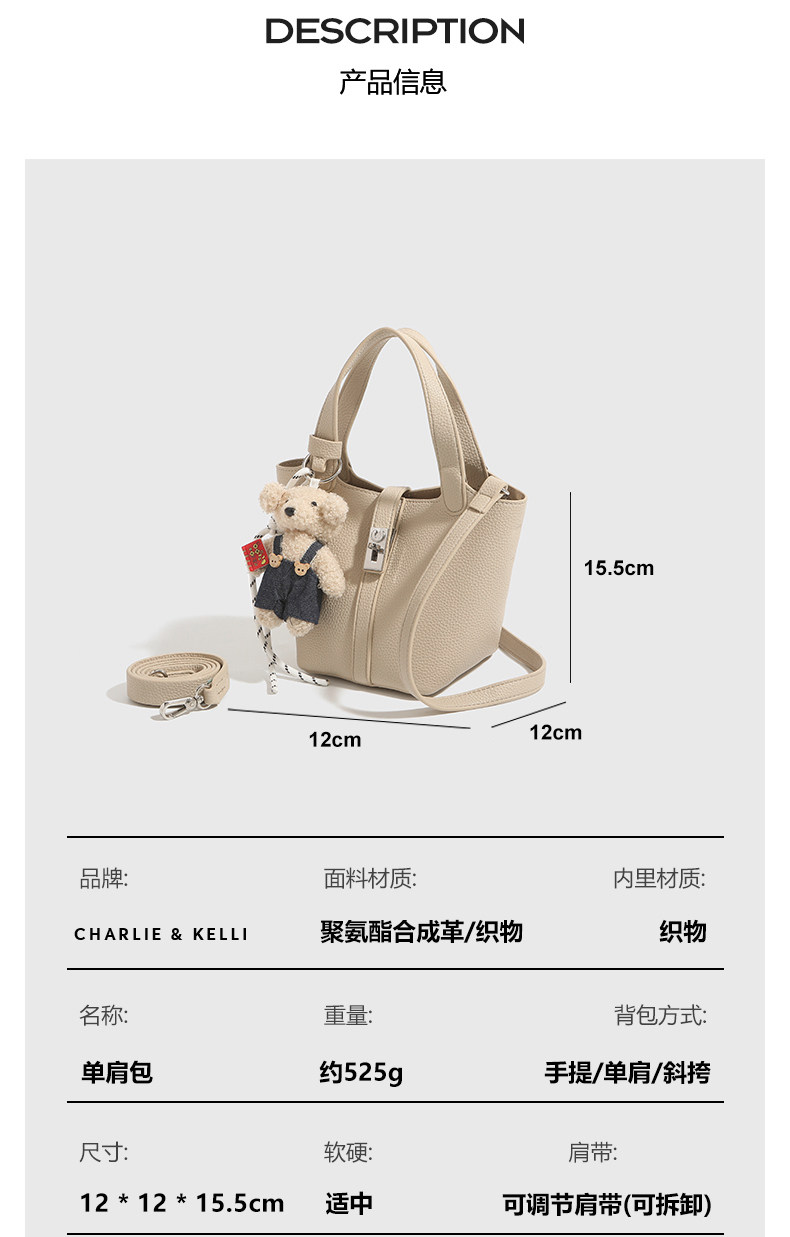 CHARLIE&KELLI women's bag 2026 new fashion casual handbag bucket bag niche single shoulder crossbody bag