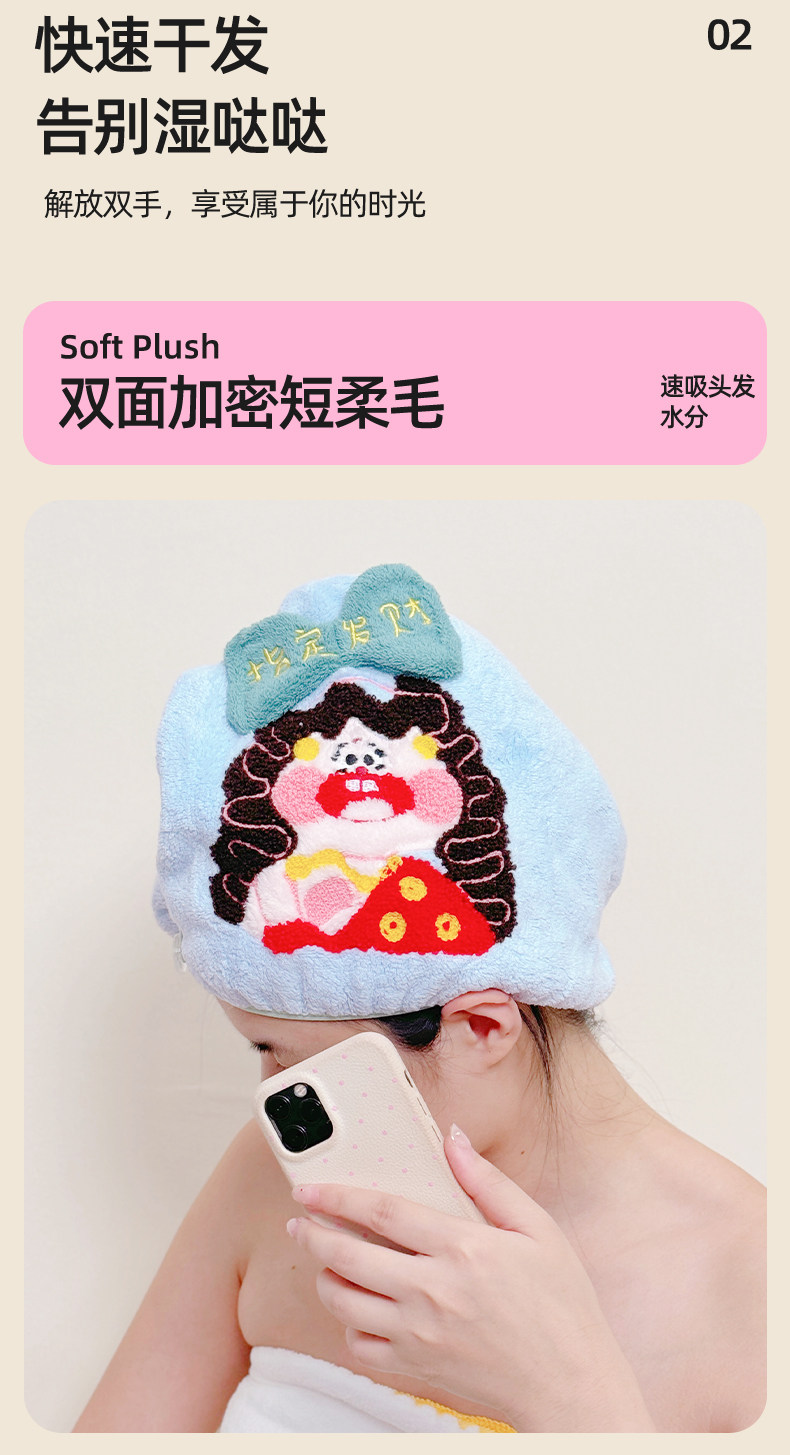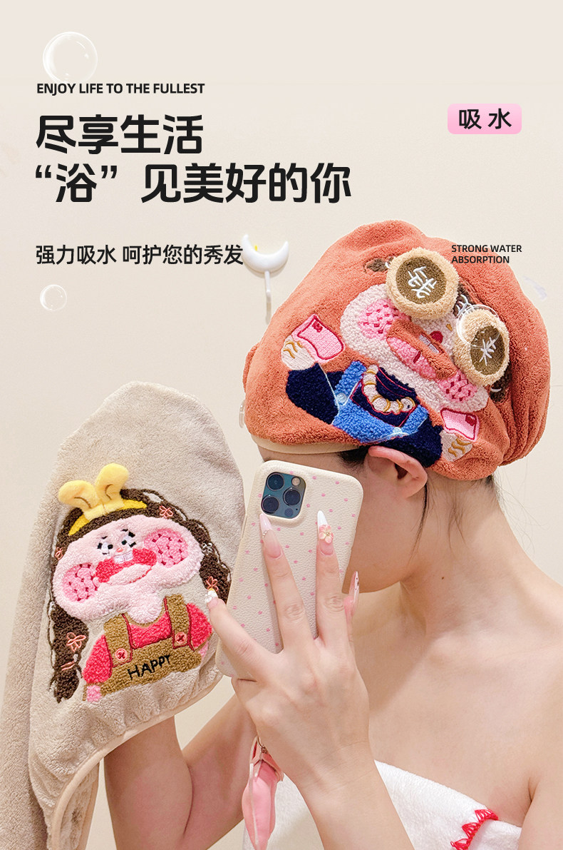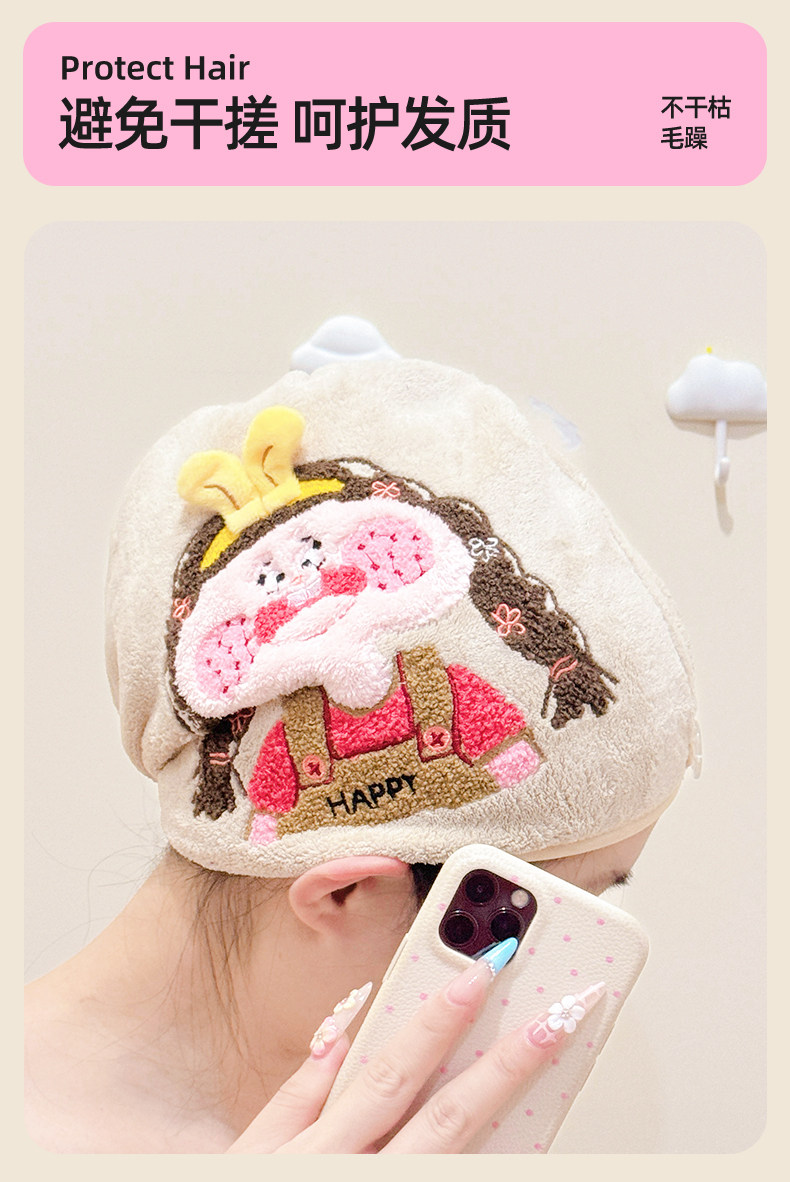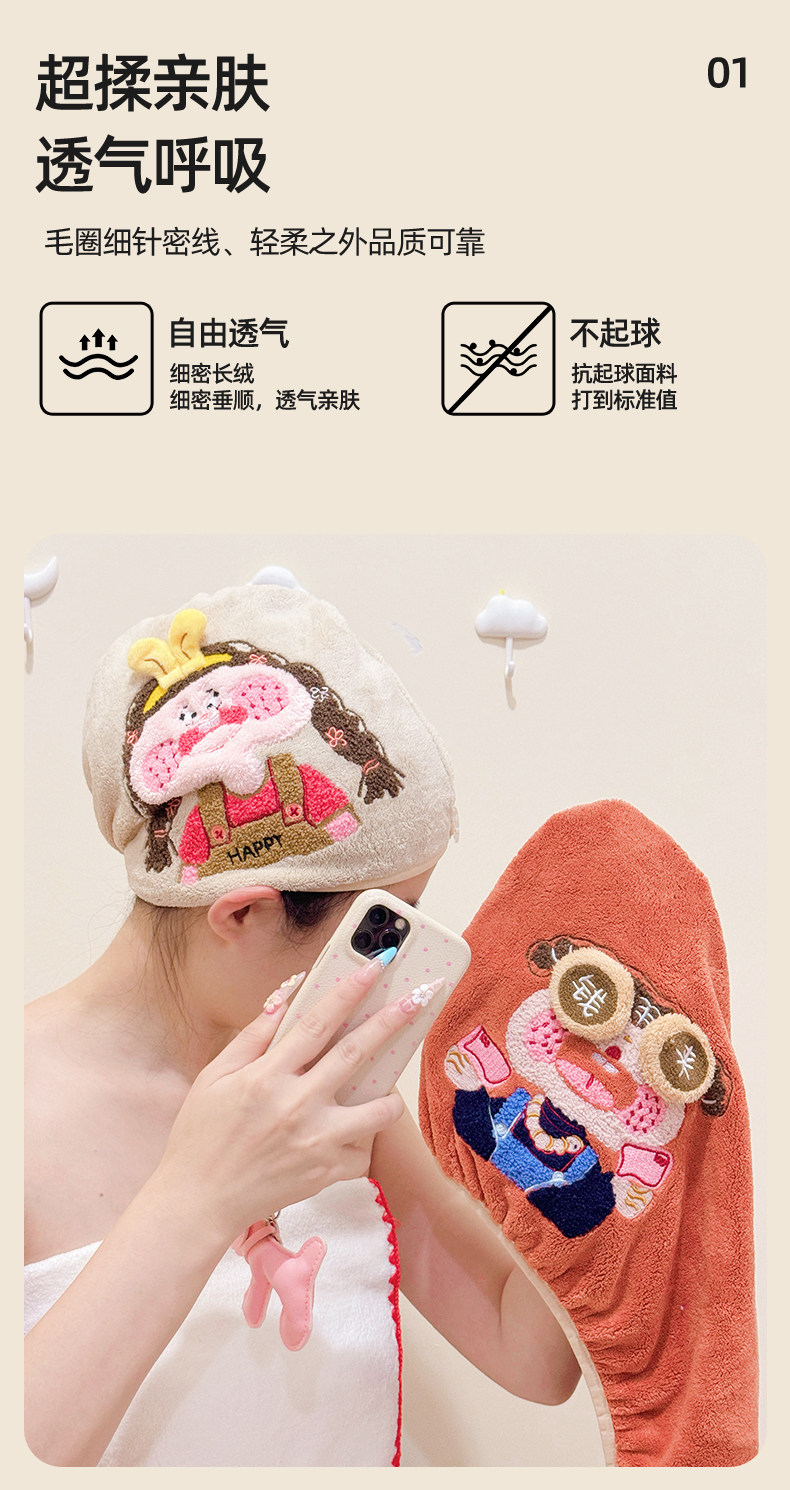 Dry hair cap for women 2025 new cute absorbent bag headscarf quick-drying towel student dormitory scrub head shower cap thickened