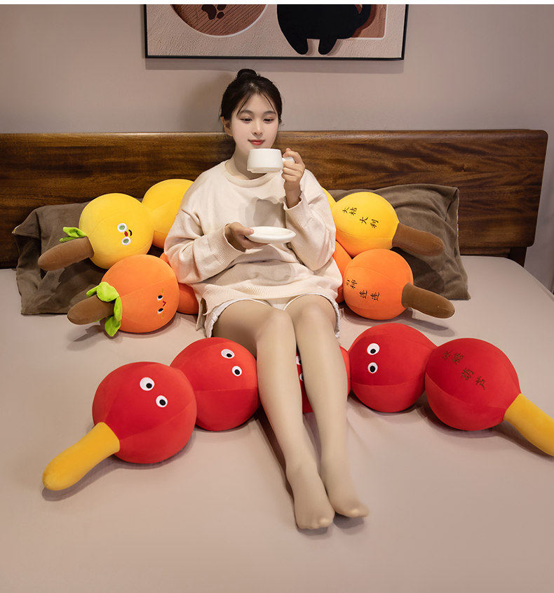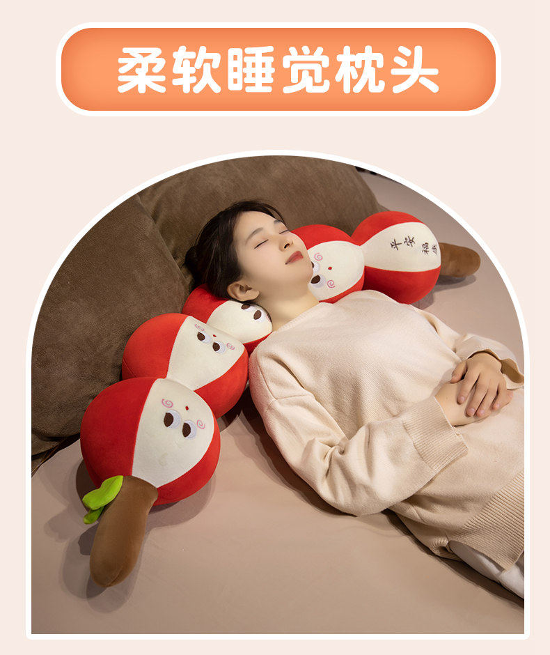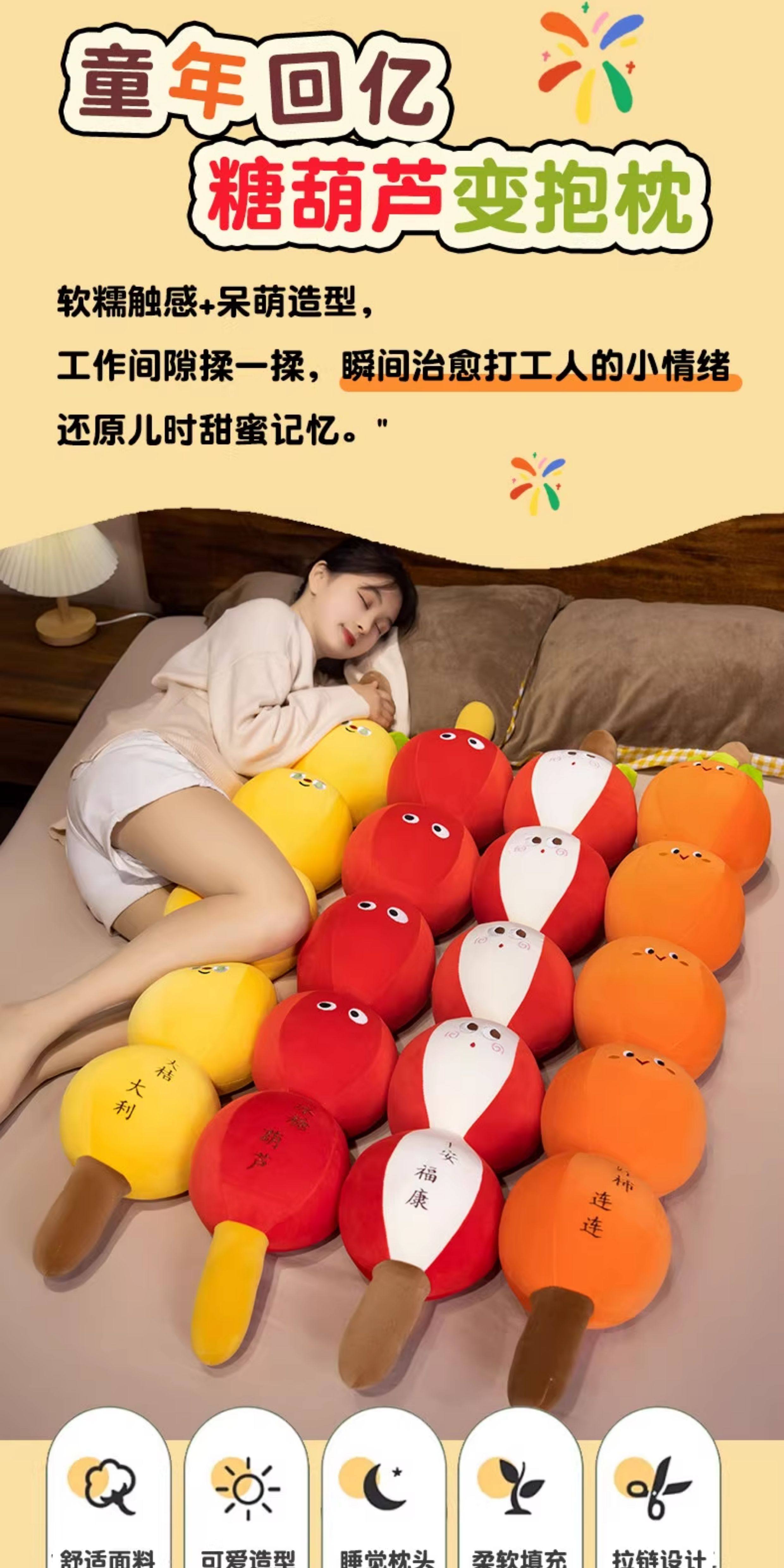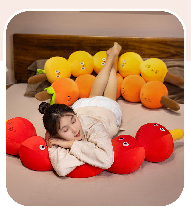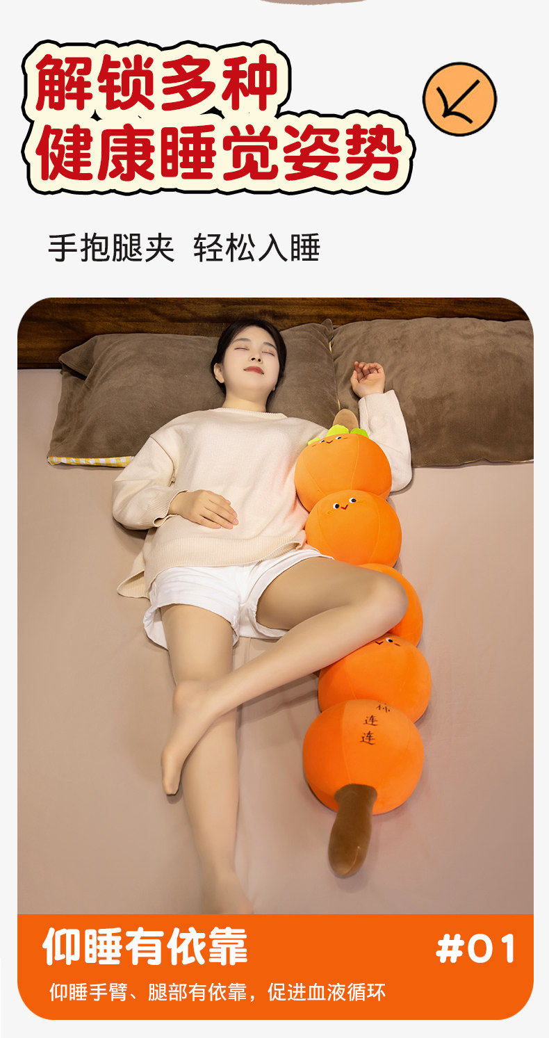Persimmon-Shaped Long Pillow, Children's Bed Pillow for Hugging While Sleeping, Side Sleeping, Leg-Hugging, Soft Candied Fruit Pillow, Cushion, Headrest