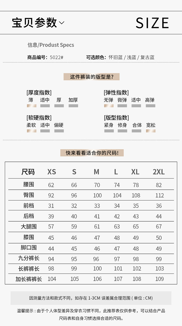 Outseam (cm) 99 cm 101.5 cm 104 cm 106.5 cm 109 cm