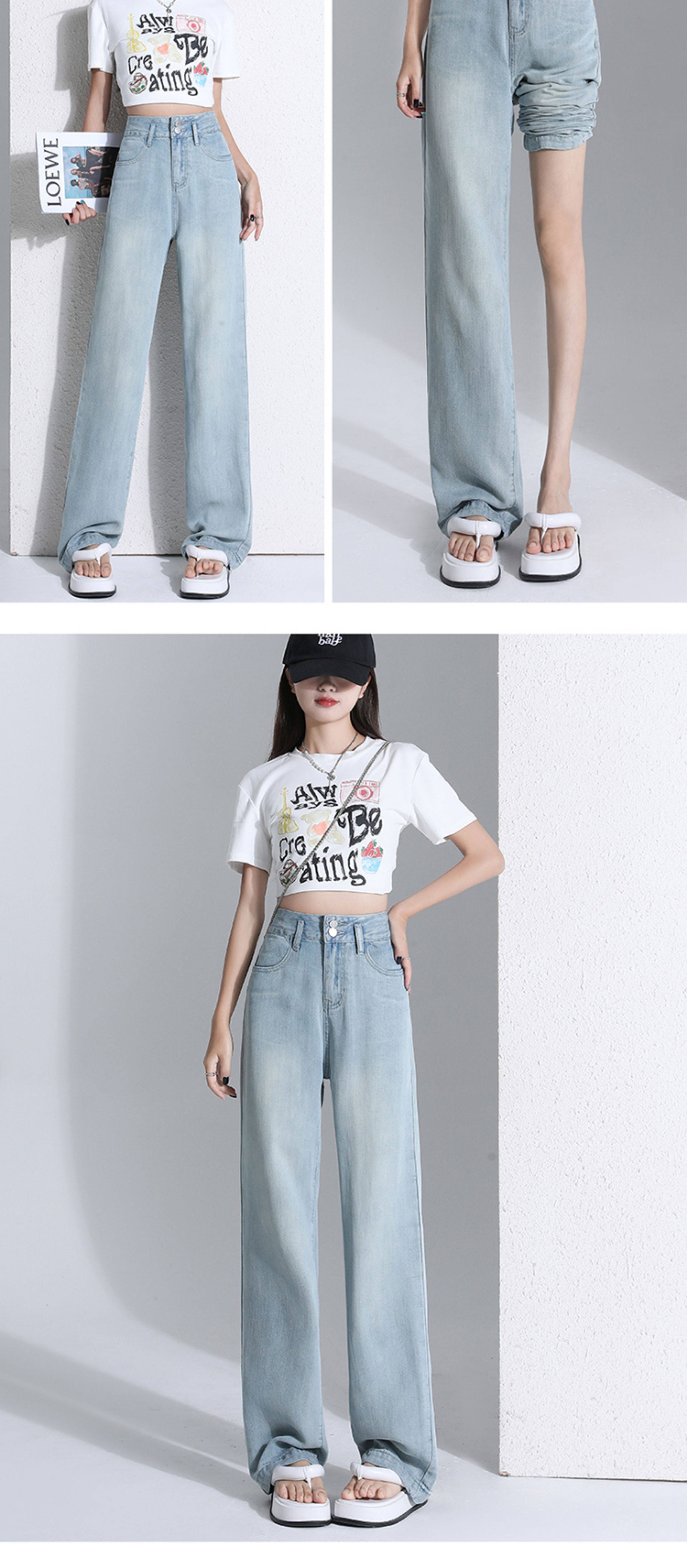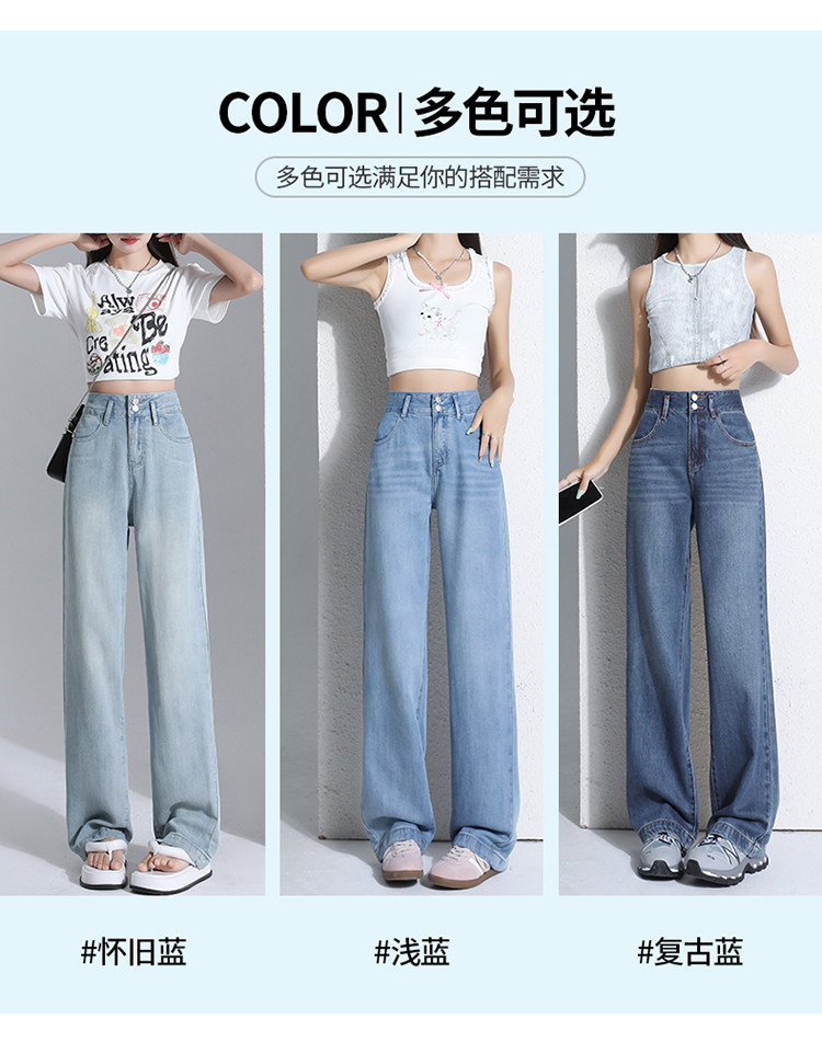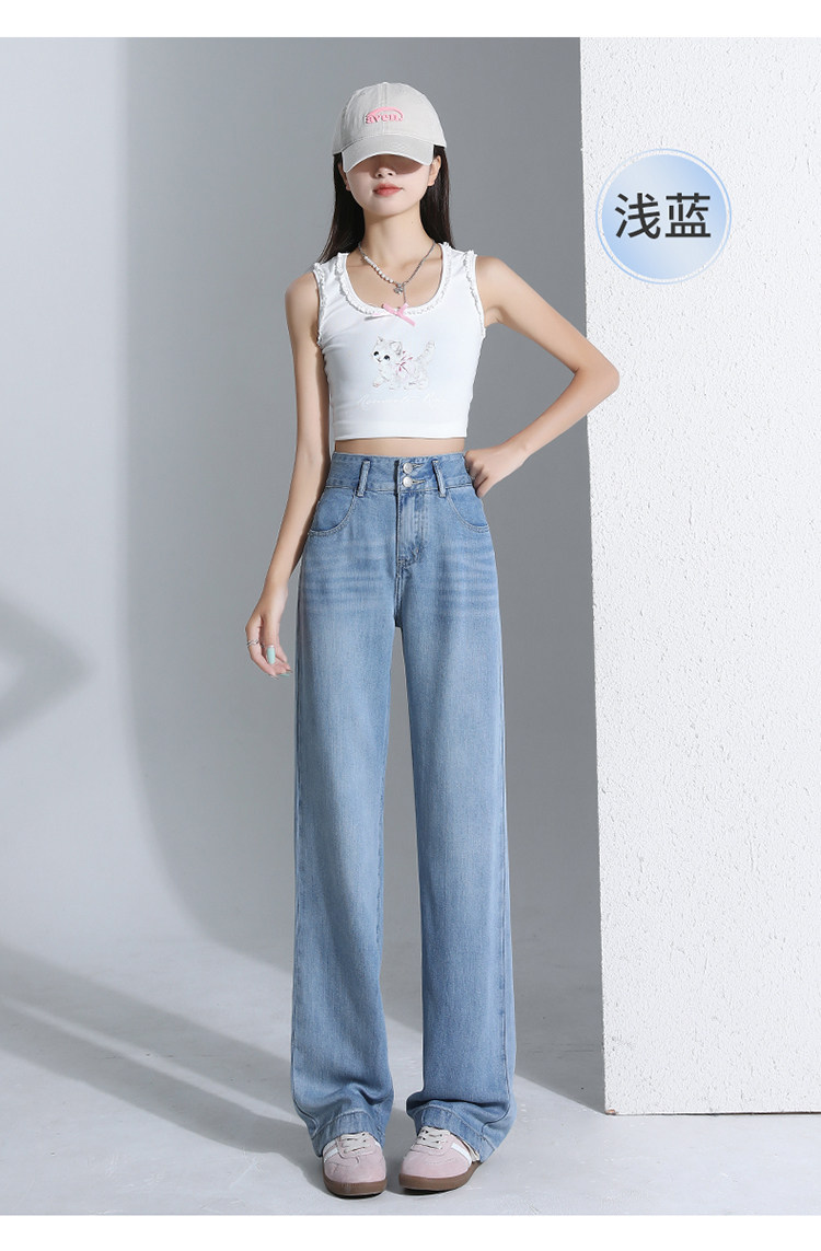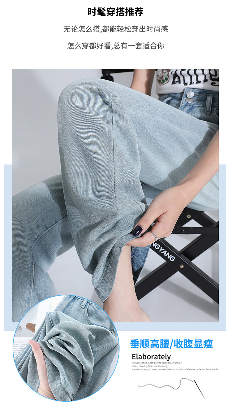Jeans light color lyocell tencel drape soft jeans women's summer thin narrow wide leg pants