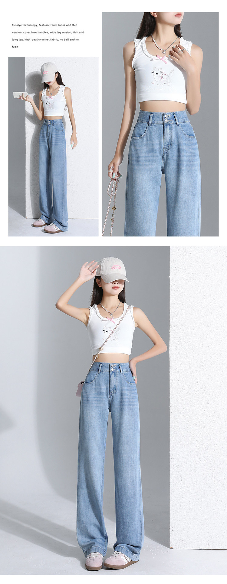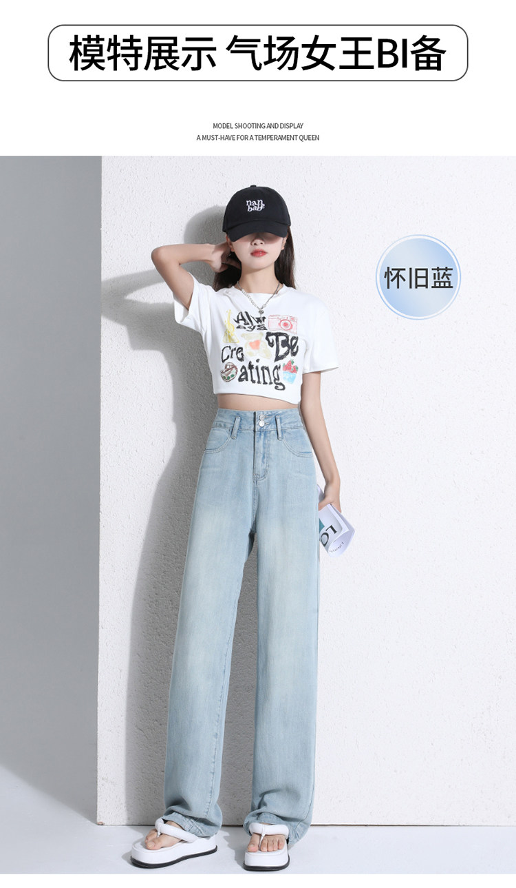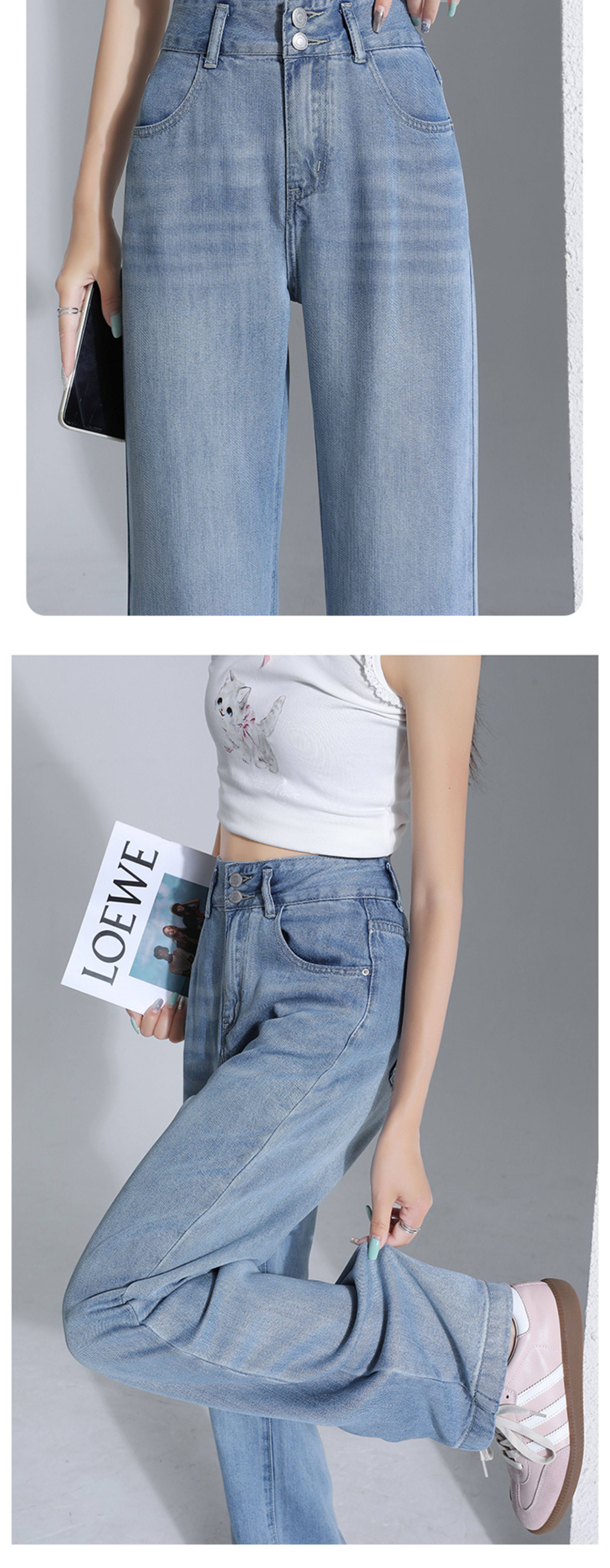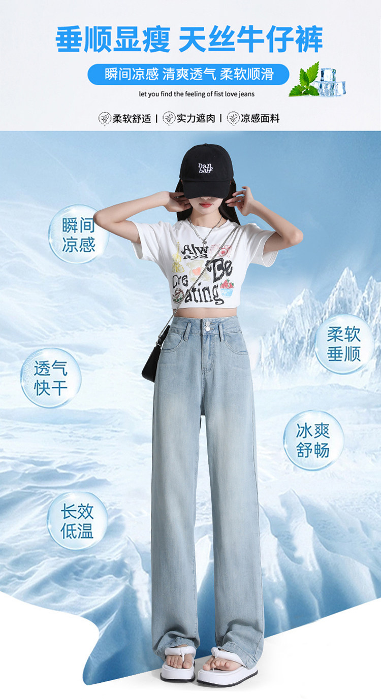 Jeans light color lyocell tencel drape soft jeans women's summer thin narrow wide leg pants