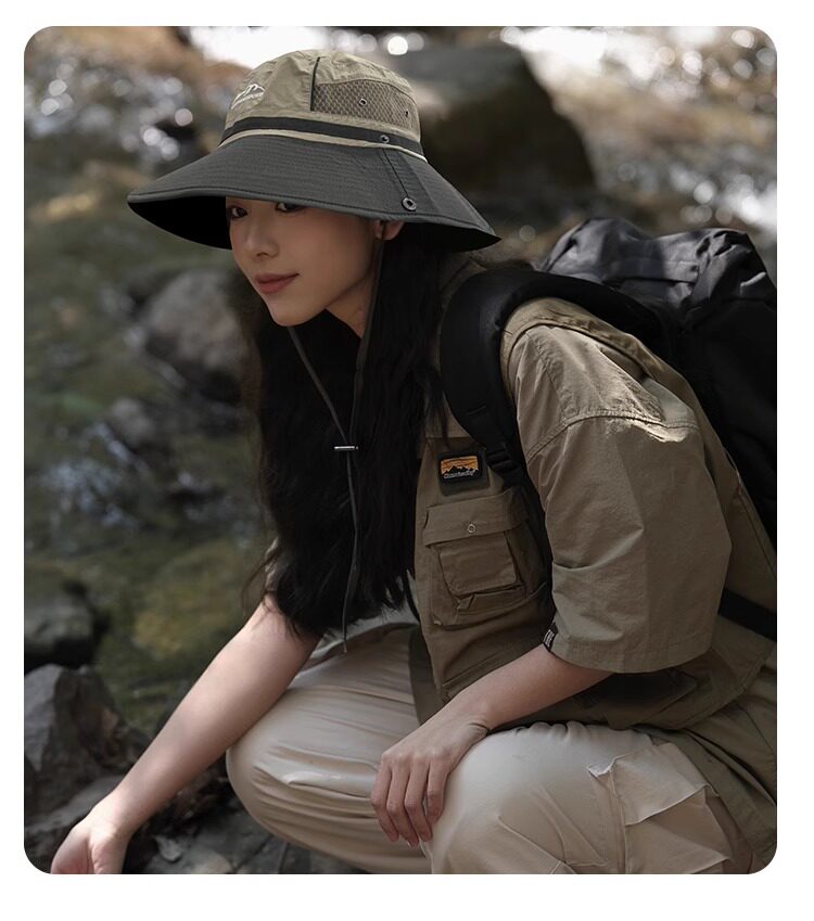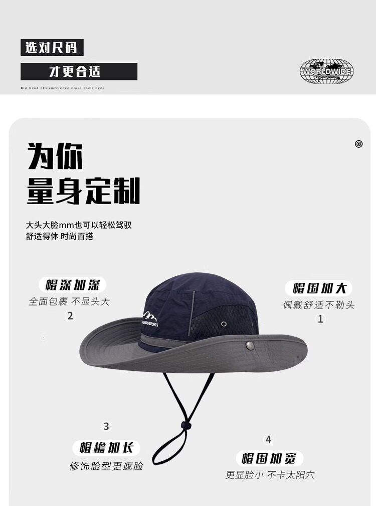 MIND BOY outdoor hiking mountaineering hat large head circumference quick-drying mesh fisherman hat color matching foldable sun protection visor