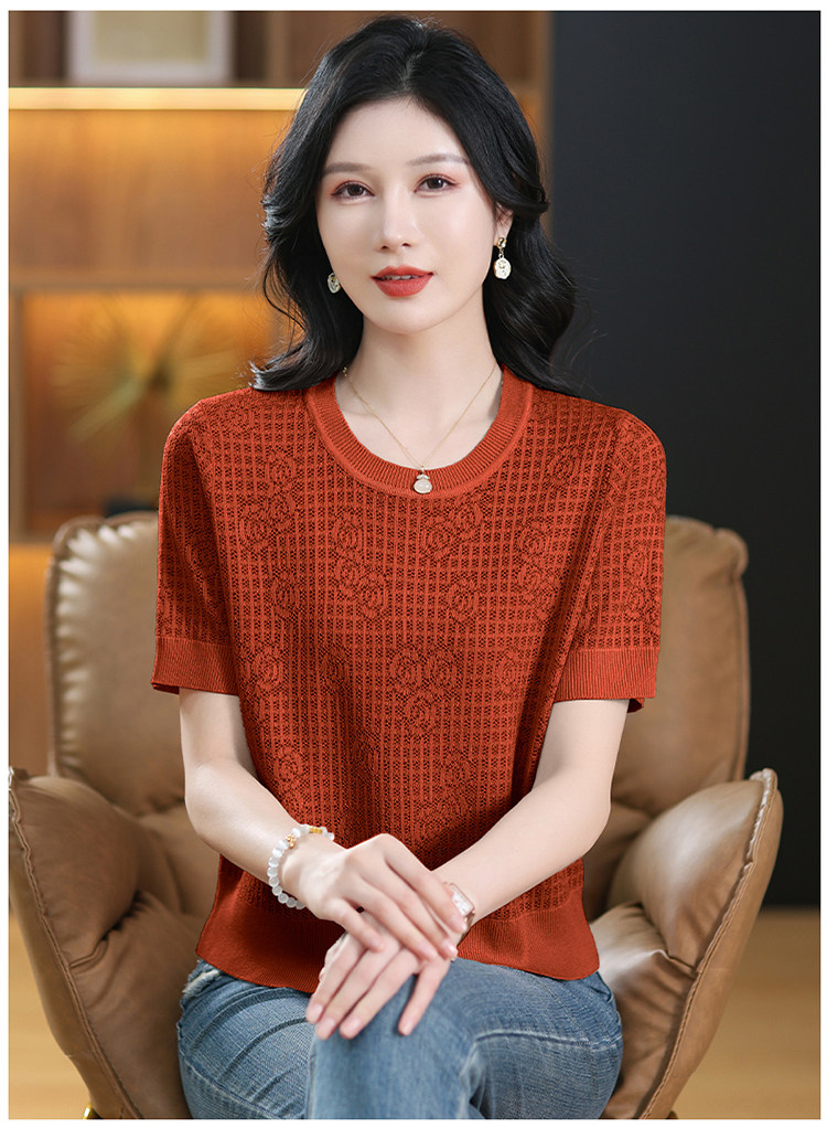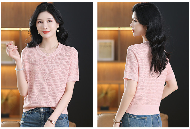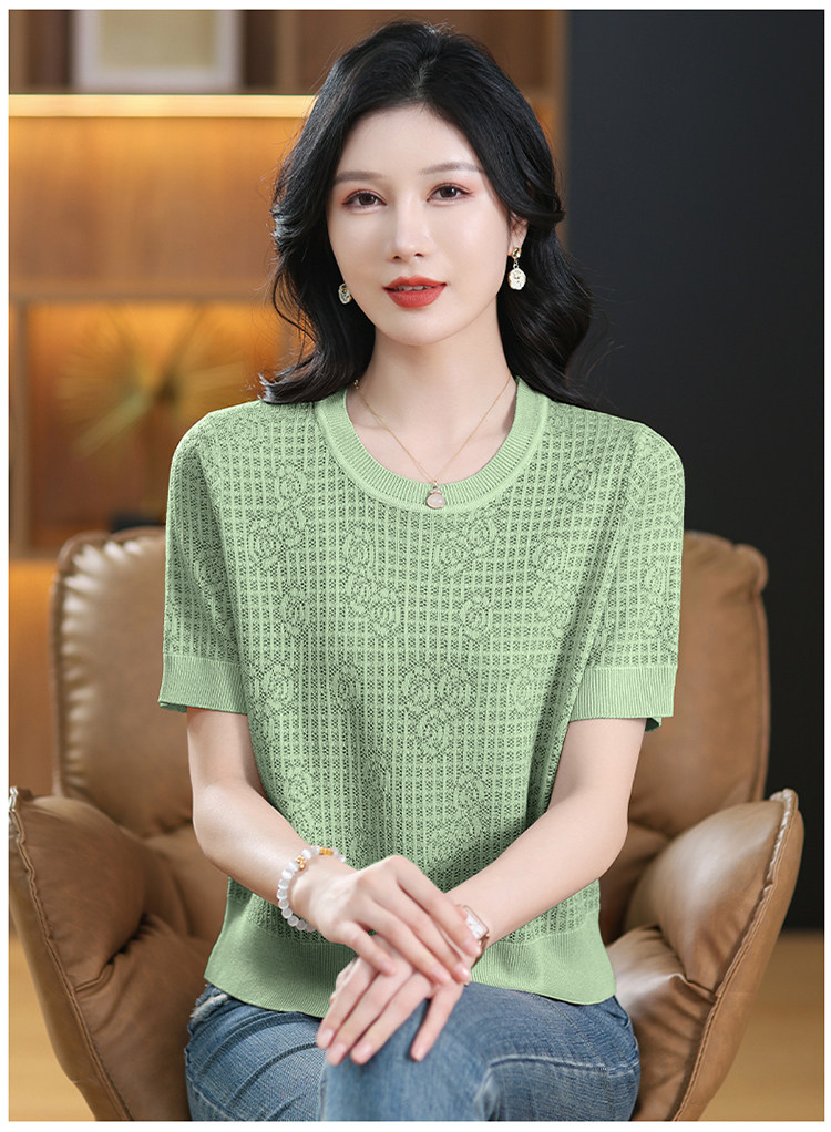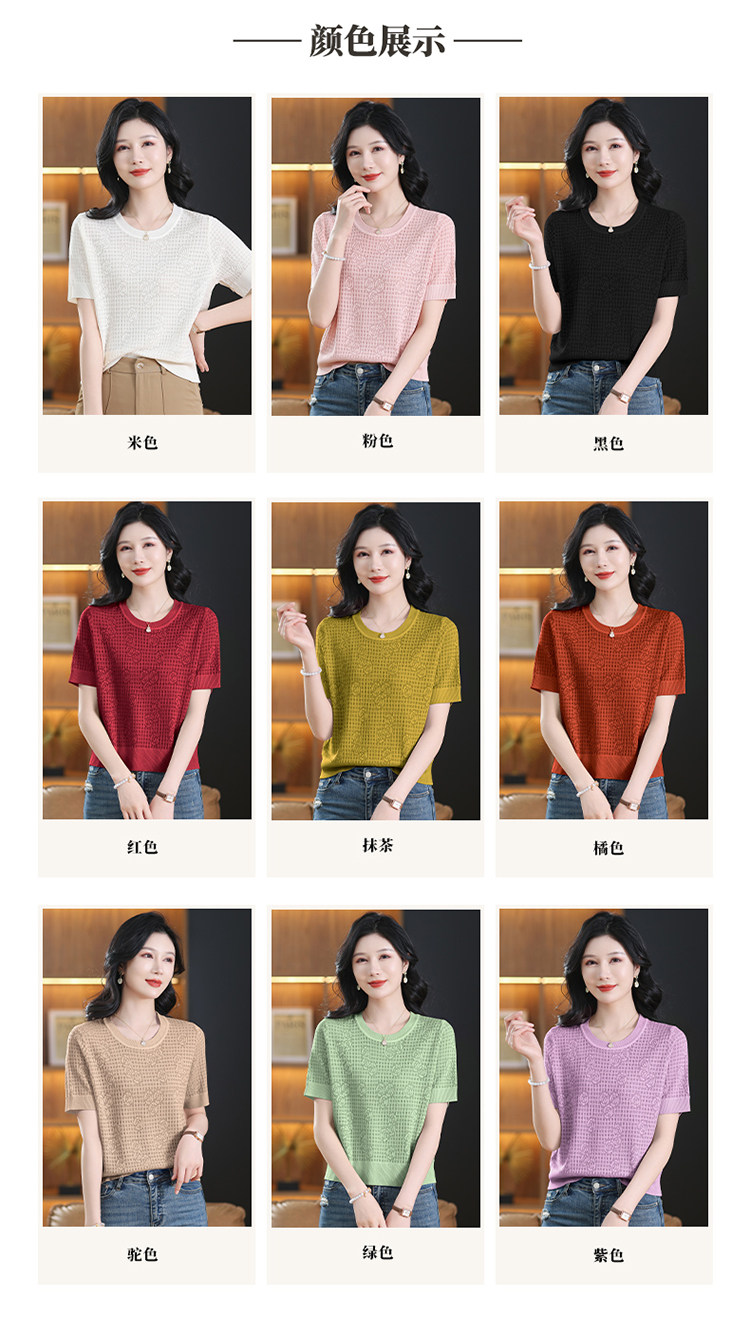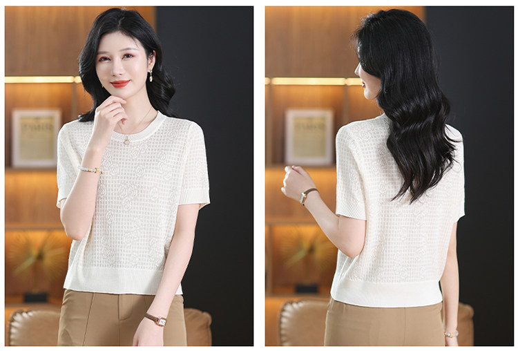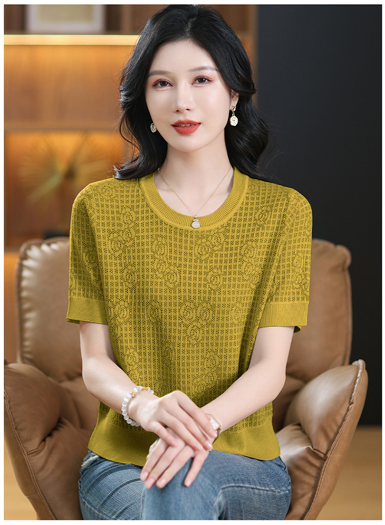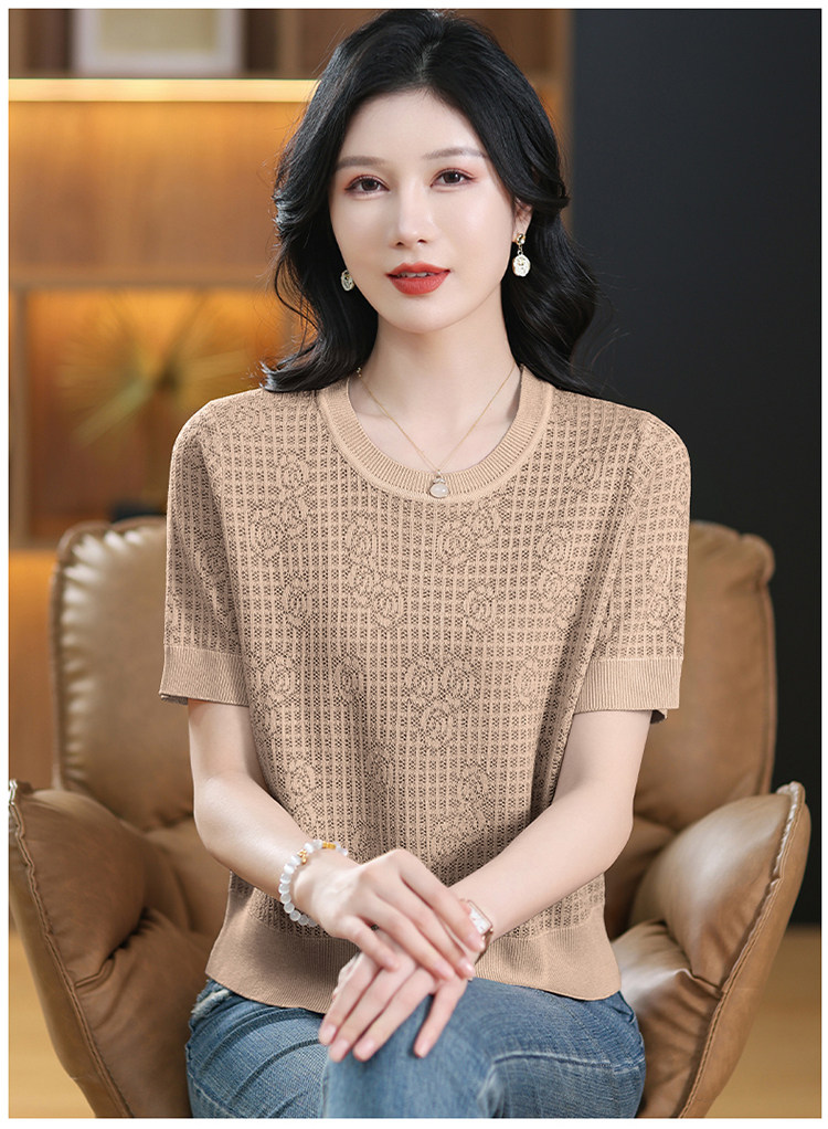 Summer Mulberry Silk Short-Sleeve T-Shirt for Petite Women, Stylish Short Top, Low-Neck Ice Silk Knitwear, Thin Style