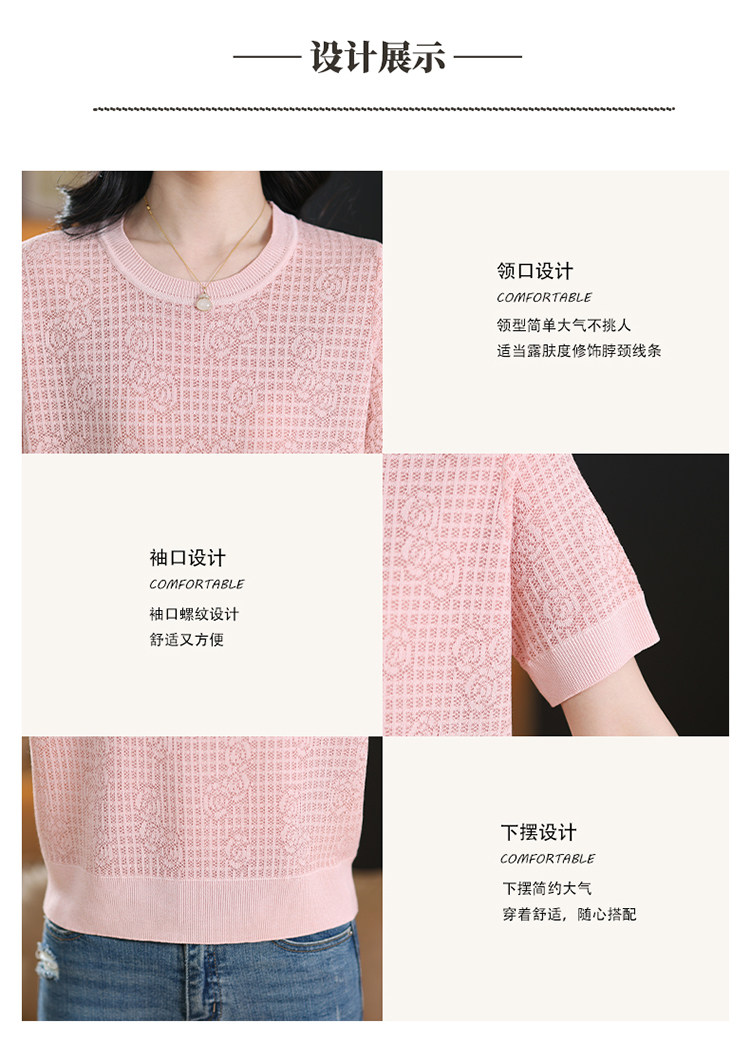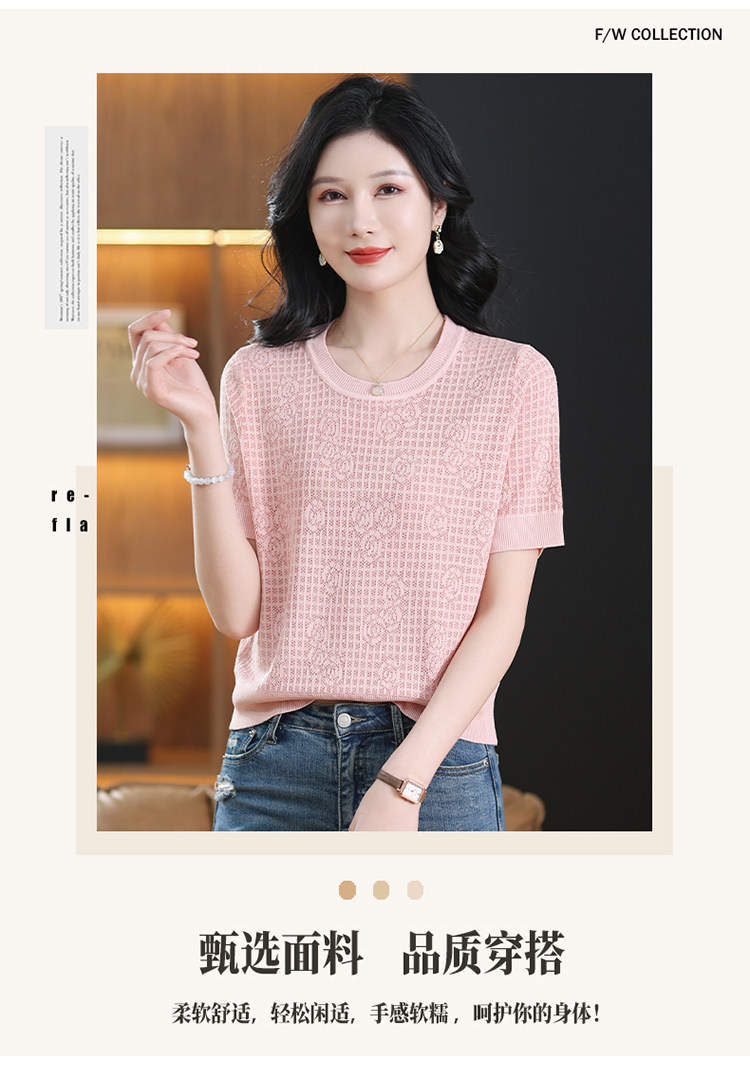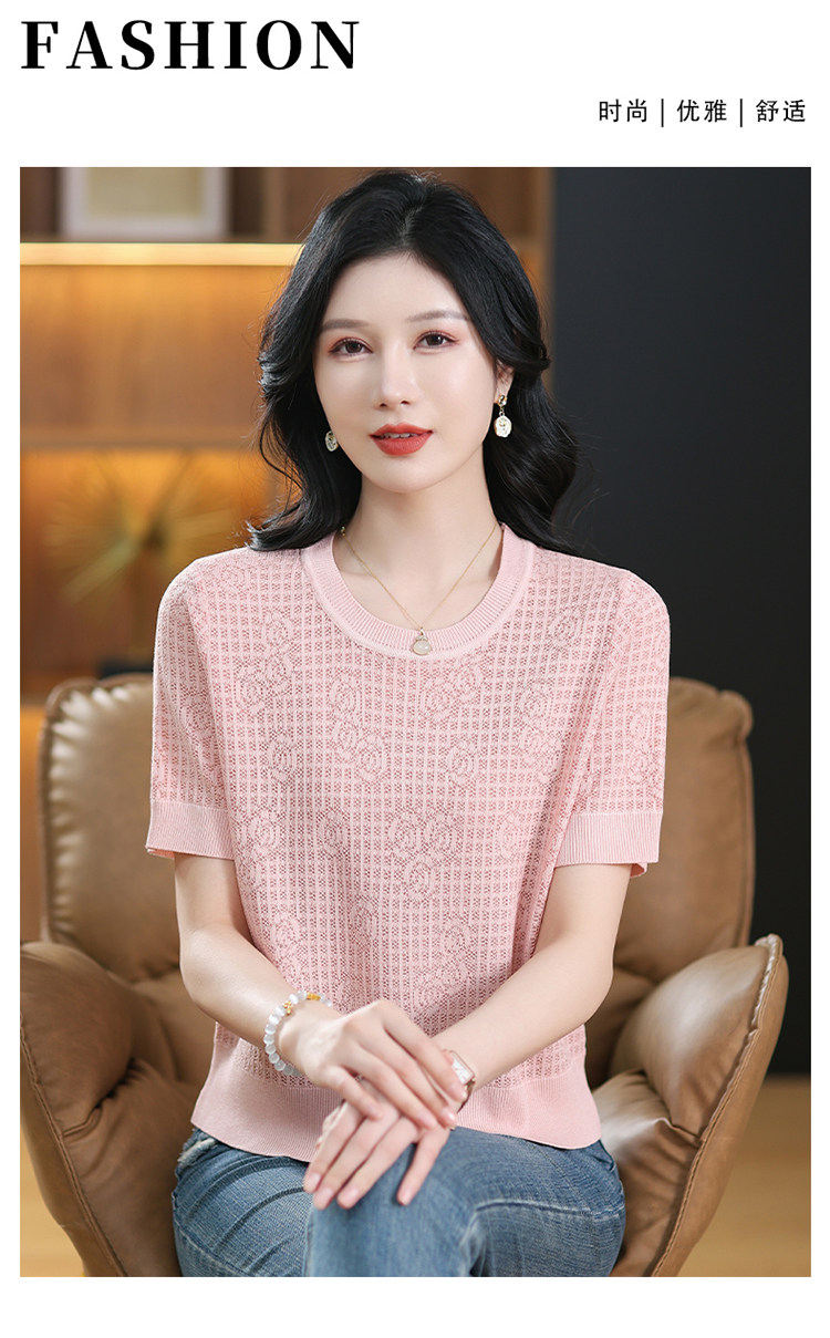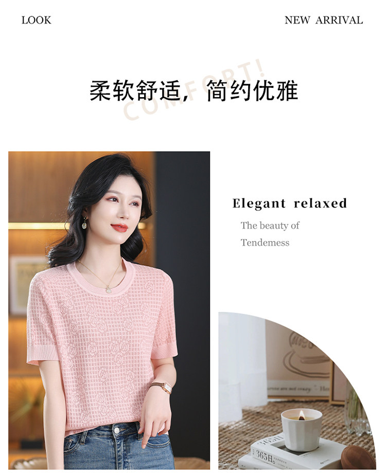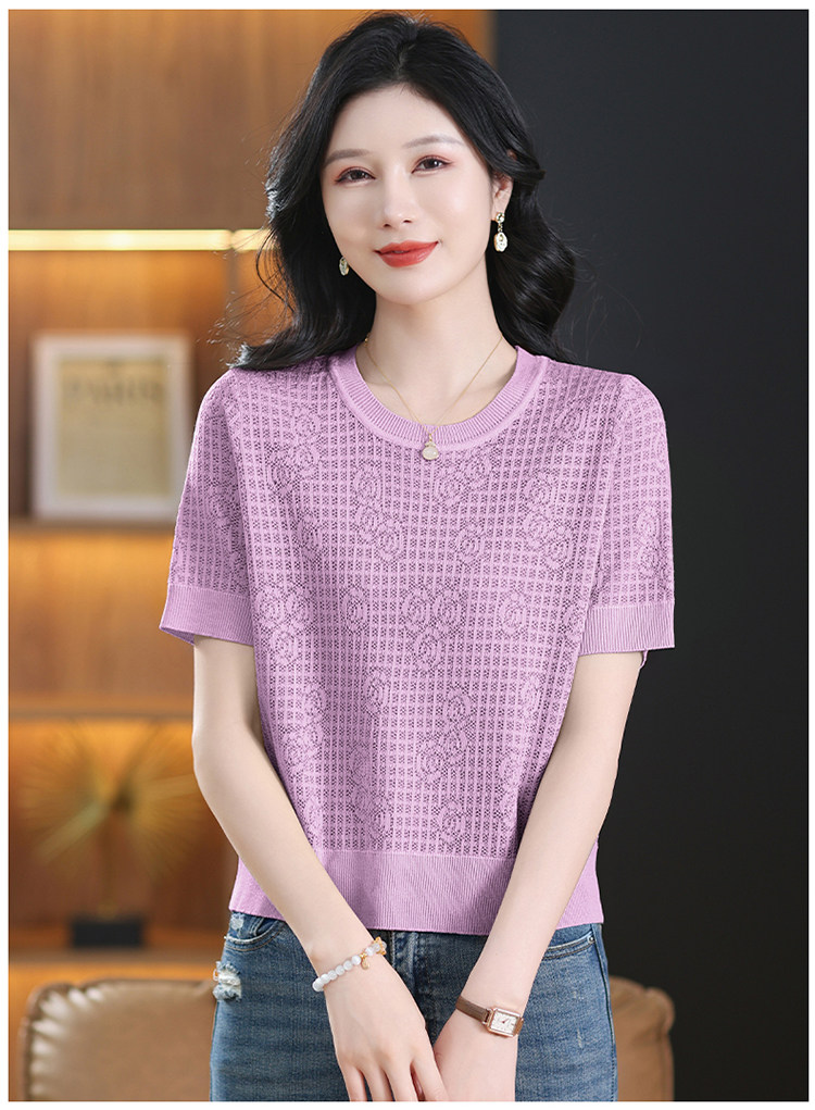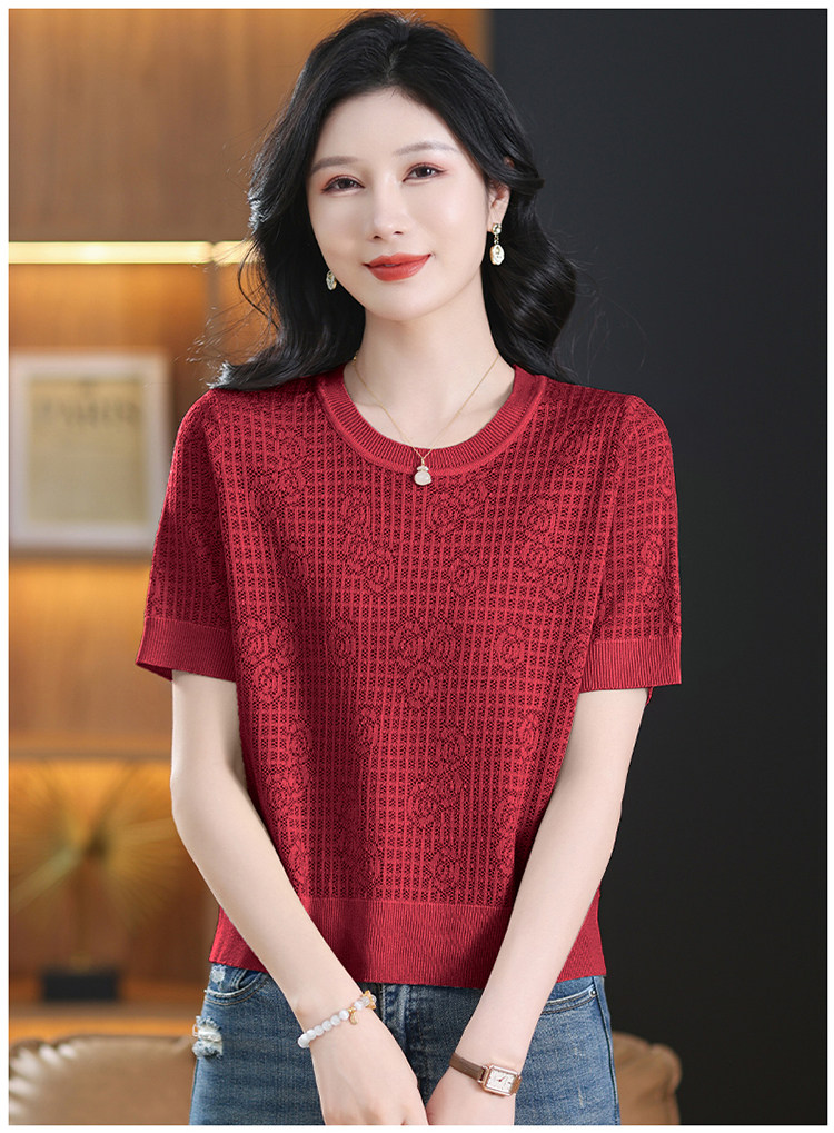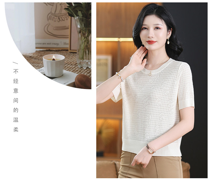 Summer Mulberry Silk Short-Sleeve T-Shirt for Petite Women, Stylish Short Top, Low-Neck Ice Silk Knitwear, Thin Style