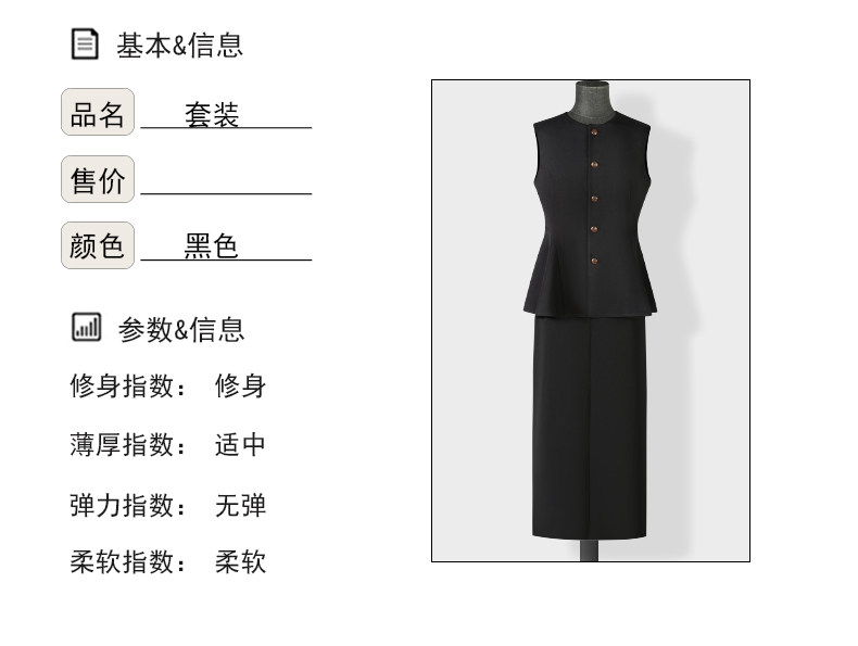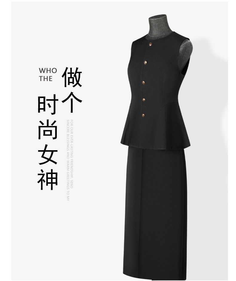 Color Classification Black Vest Jacket,Black Skirt,Black Two Piece Suit