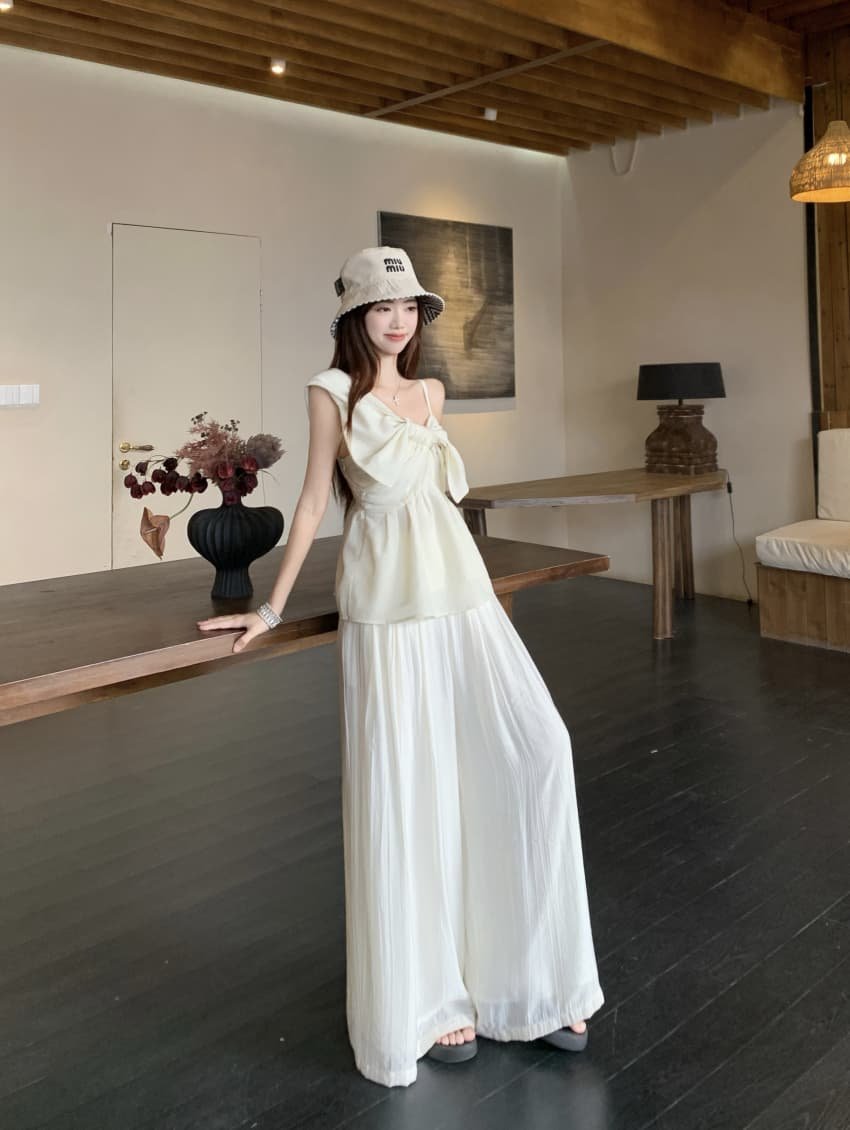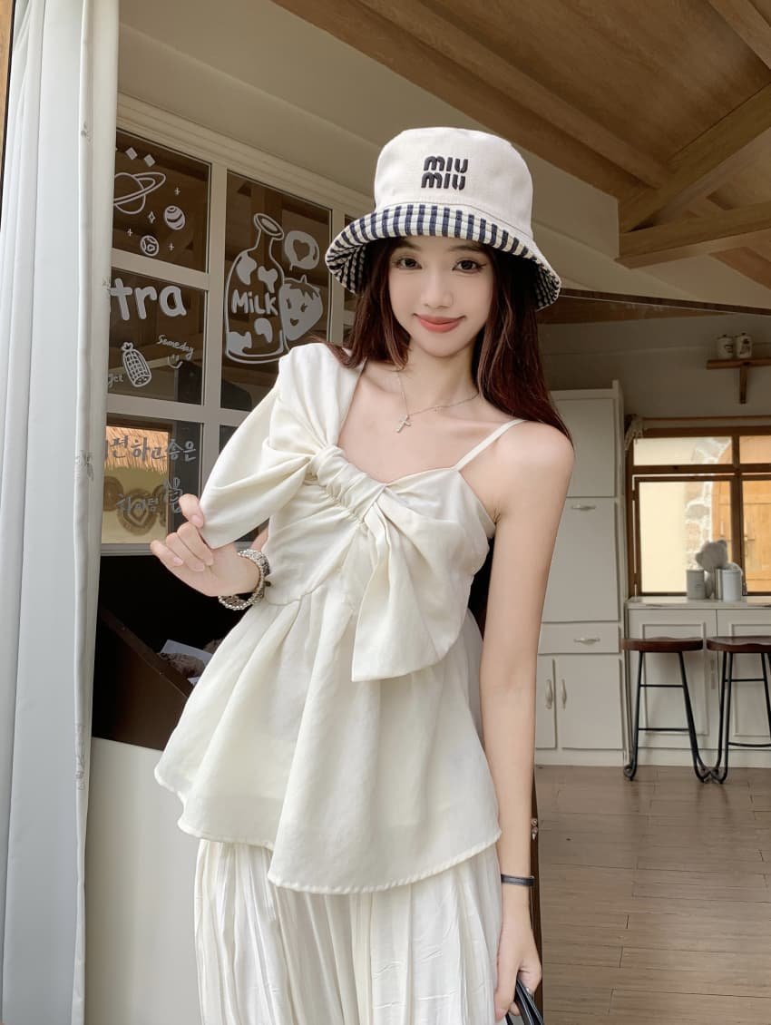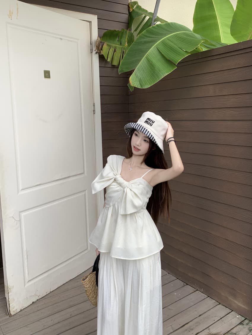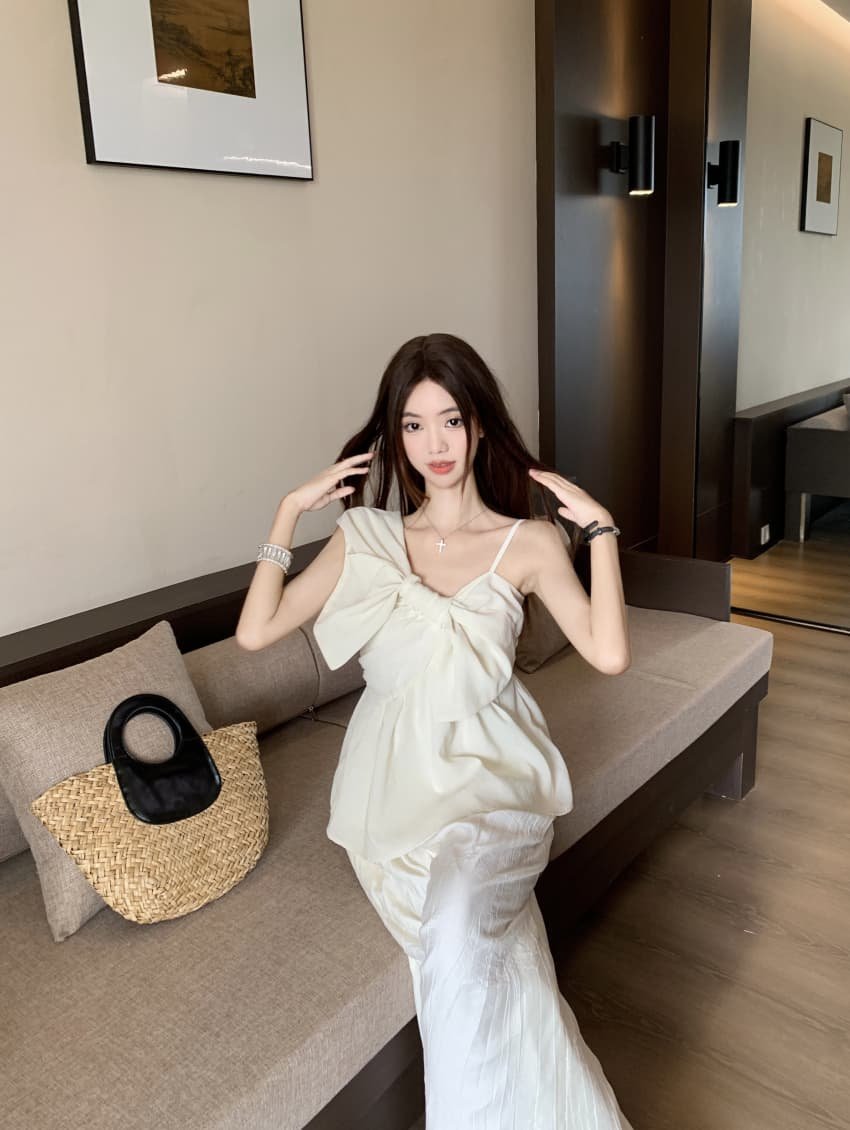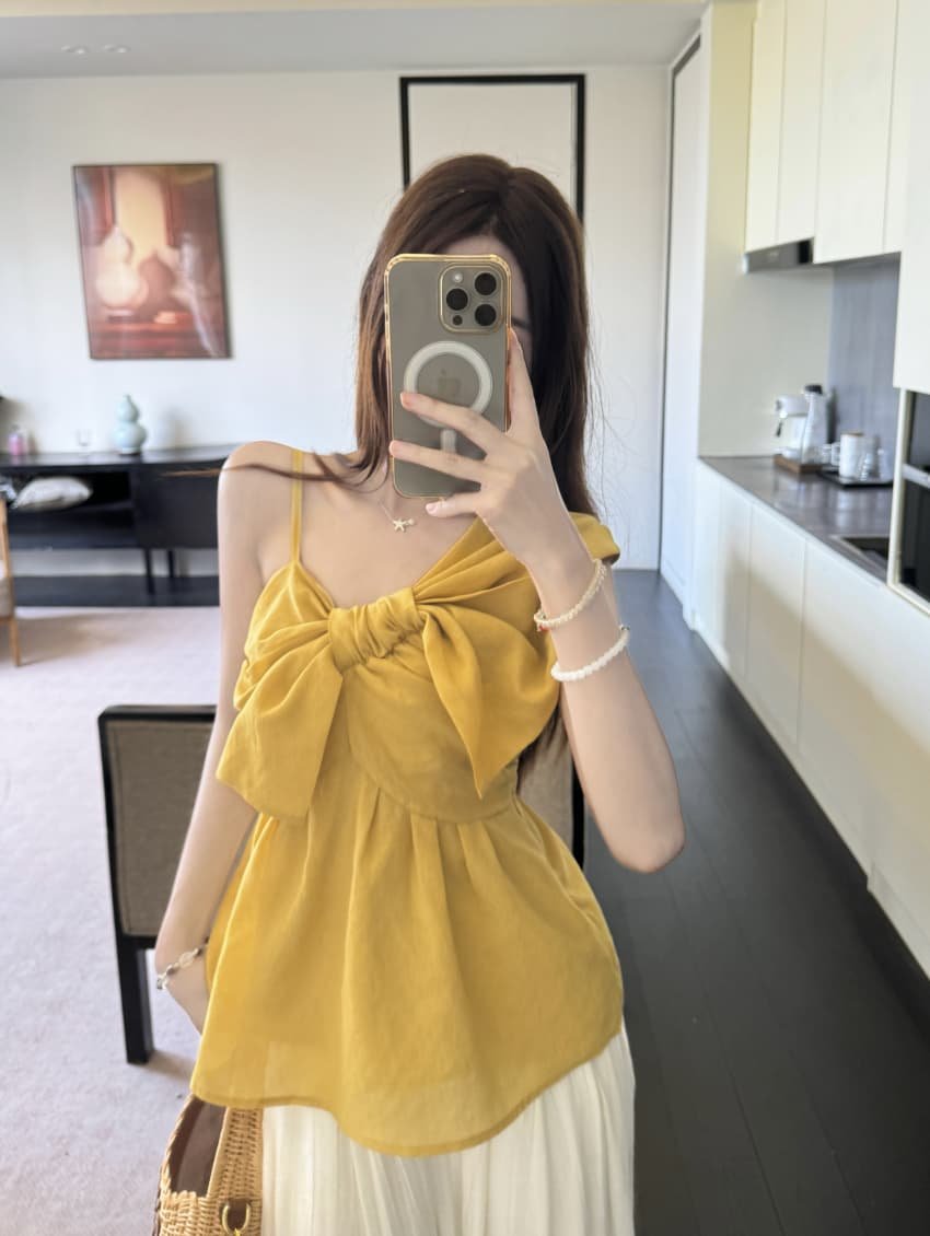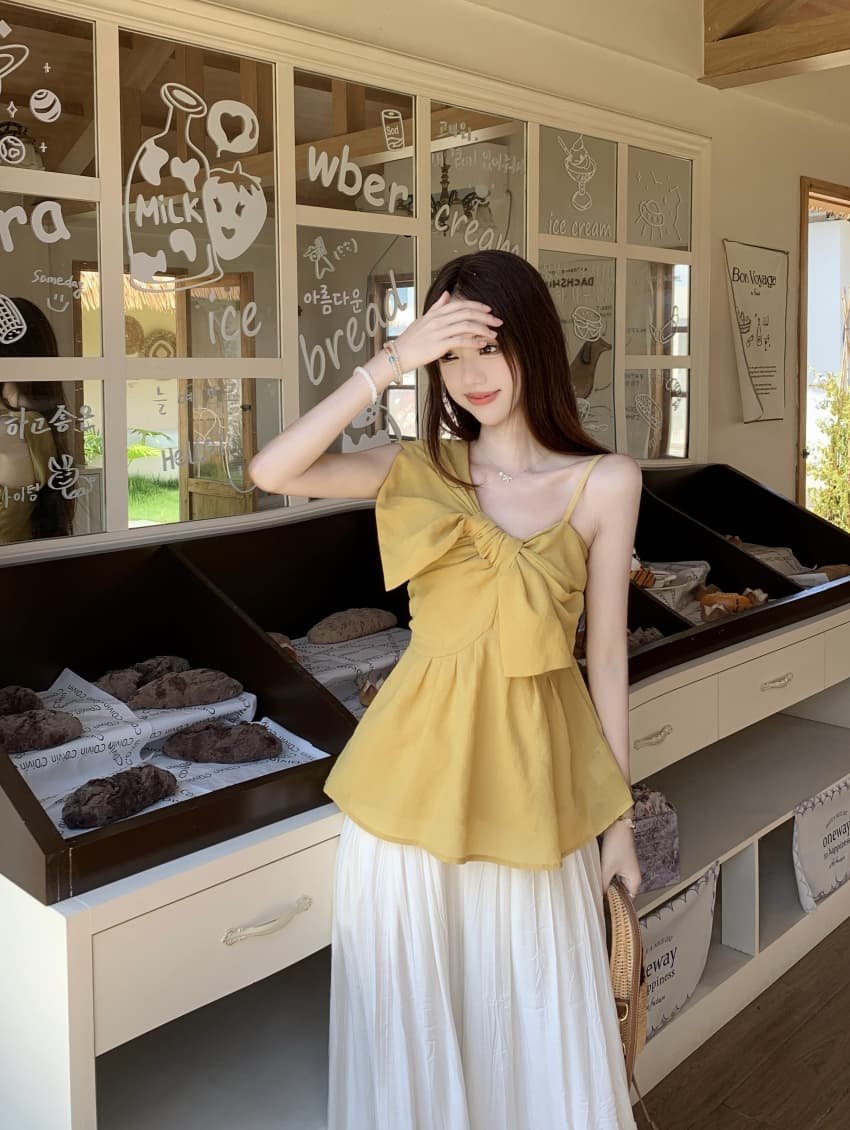 French-Style High-End Bowknot Off-Shoulder Shirt for Women, Summer Design, Stylish Sleeveless Babydoll Top