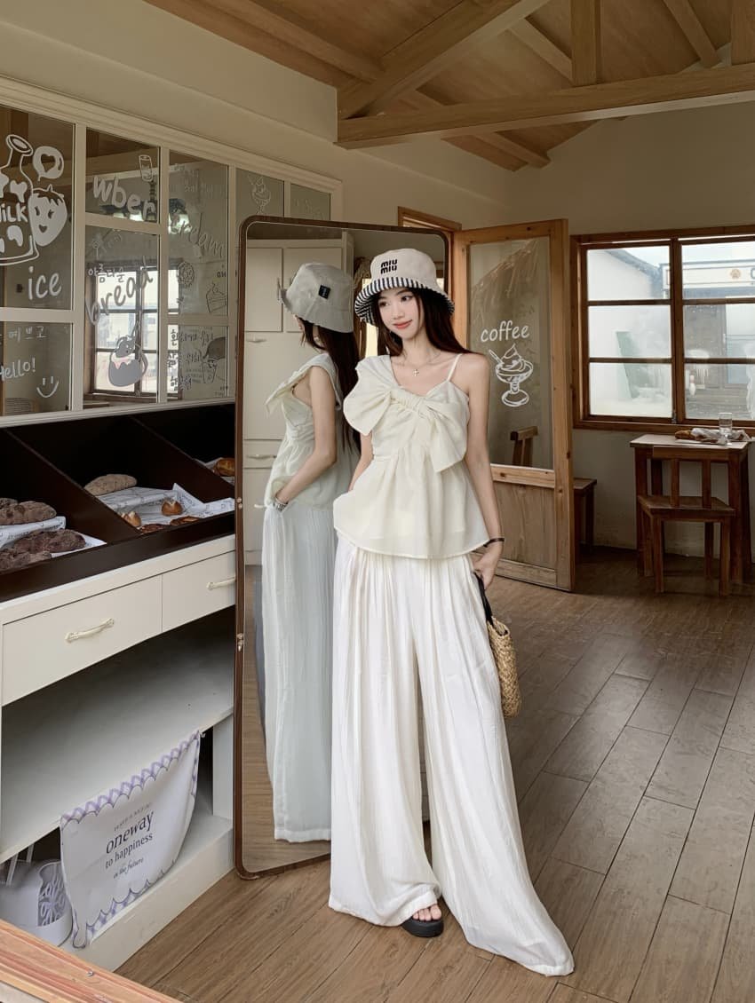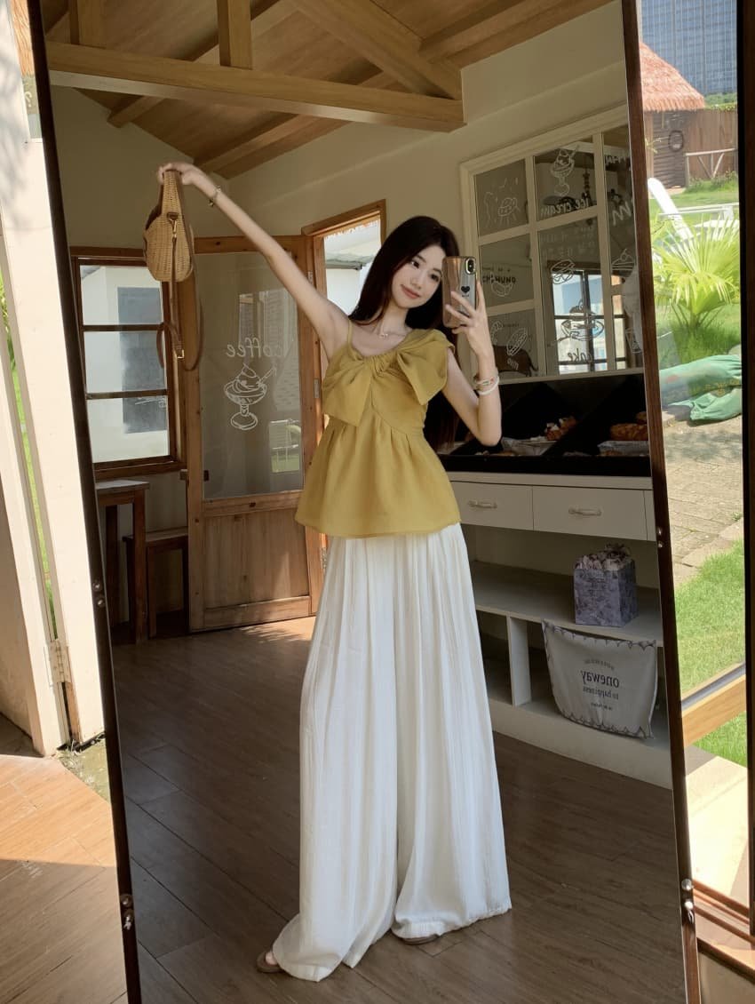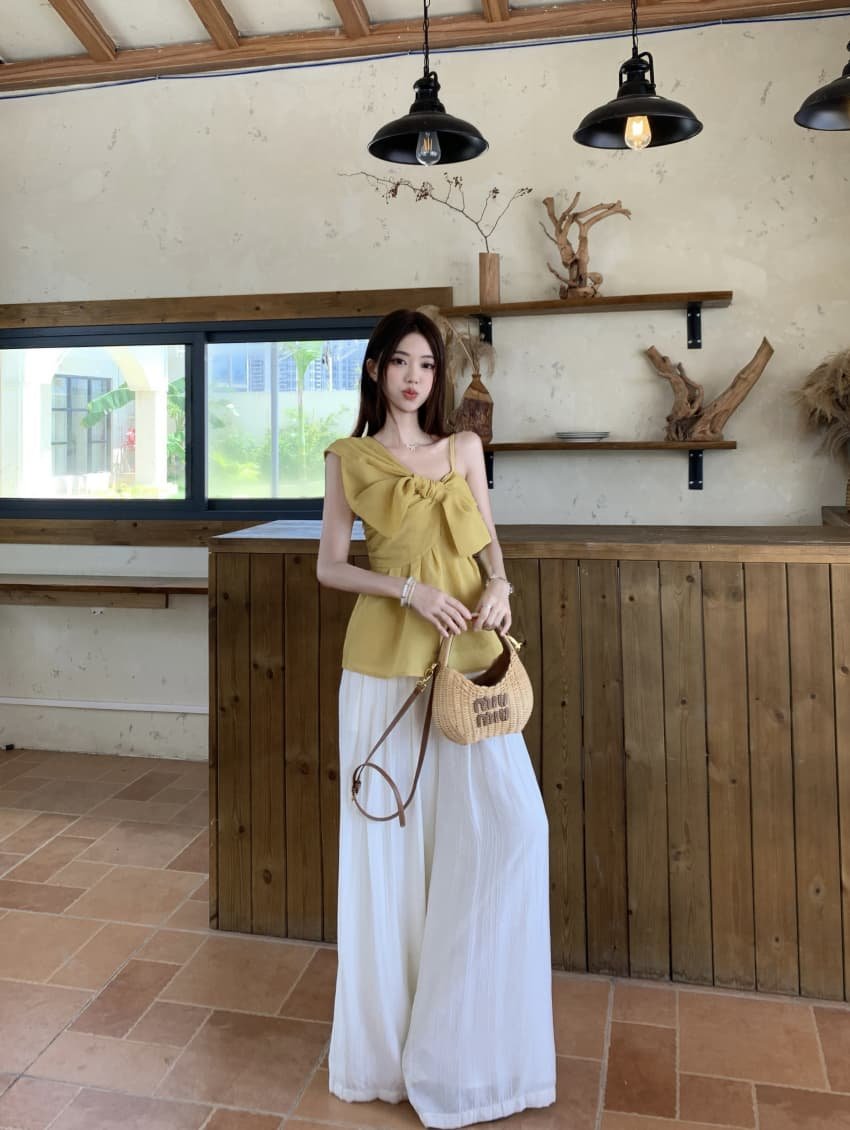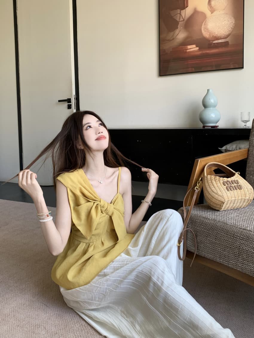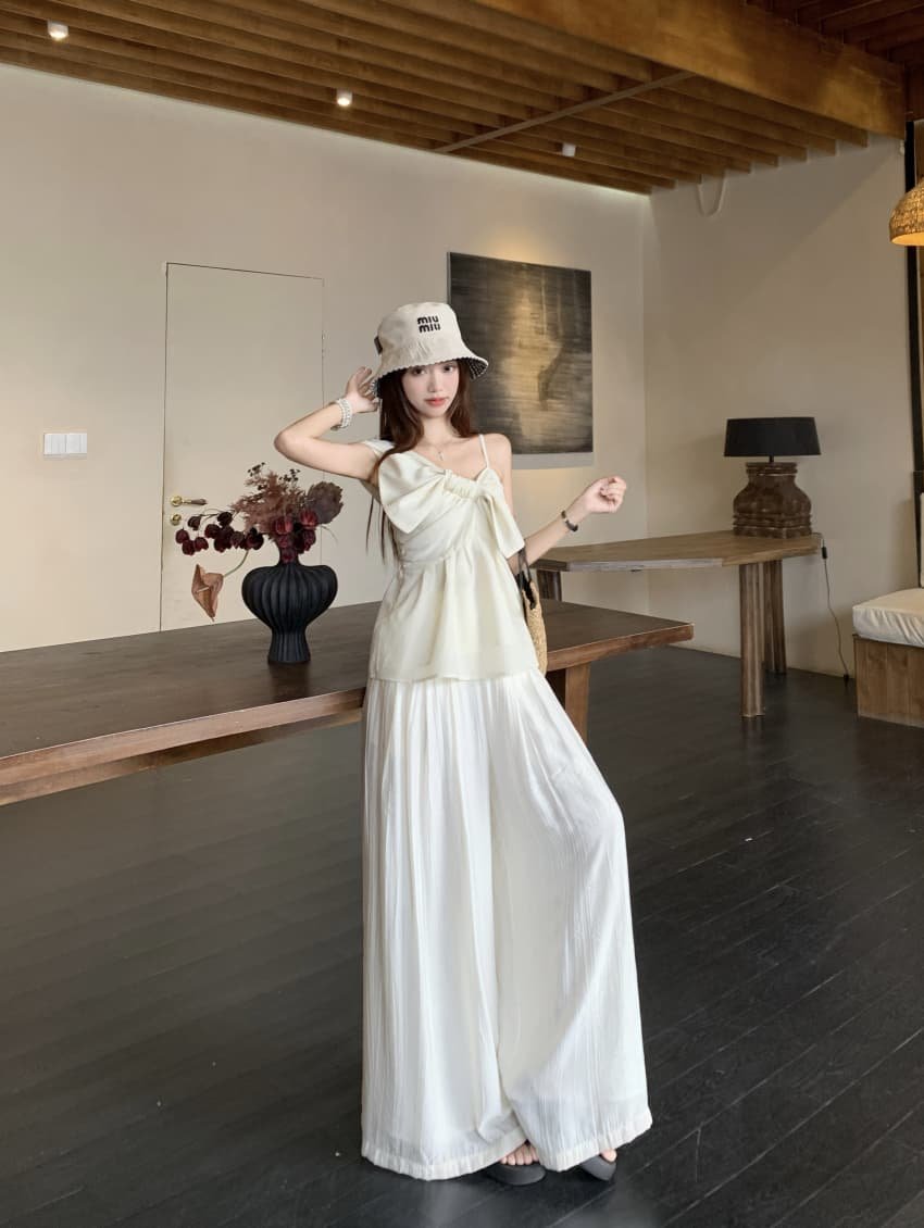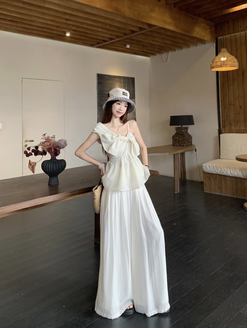 French-Style High-End Bowknot Off-Shoulder Shirt for Women, Summer Design, Stylish Sleeveless Babydoll Top