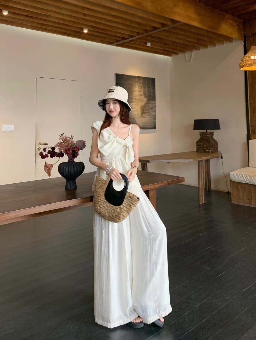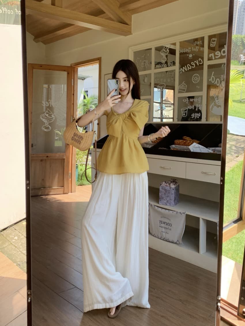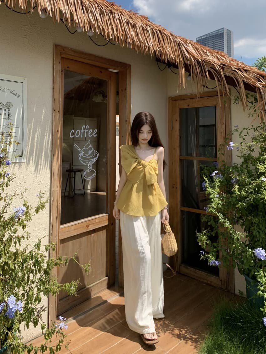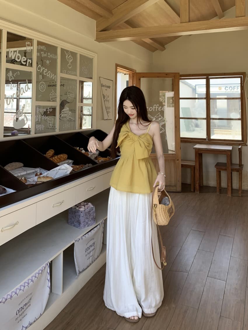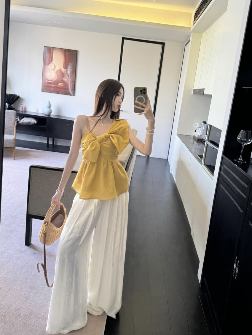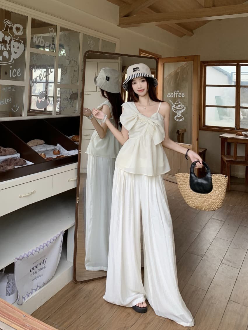 French-Style High-End Bowknot Off-Shoulder Shirt for Women, Summer Design, Stylish Sleeveless Babydoll Top
