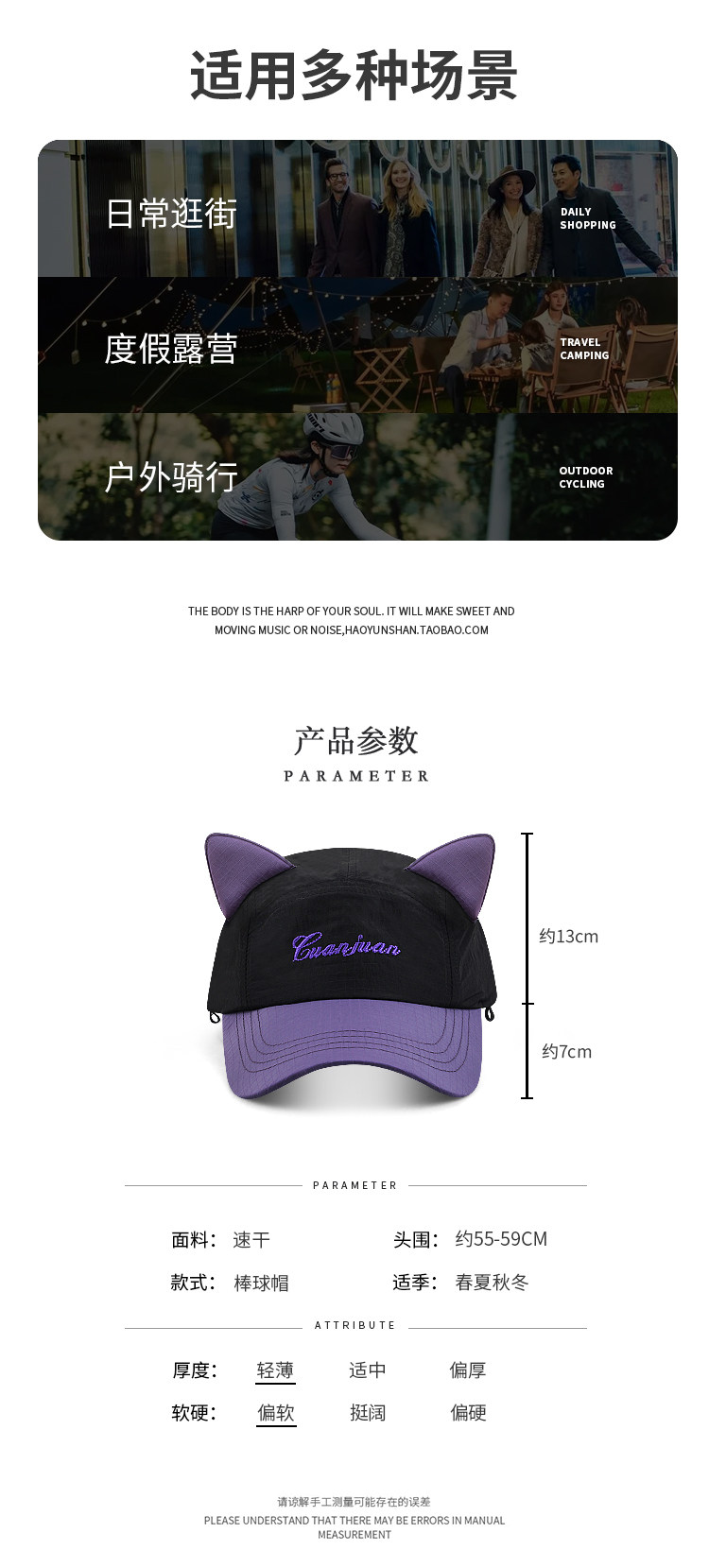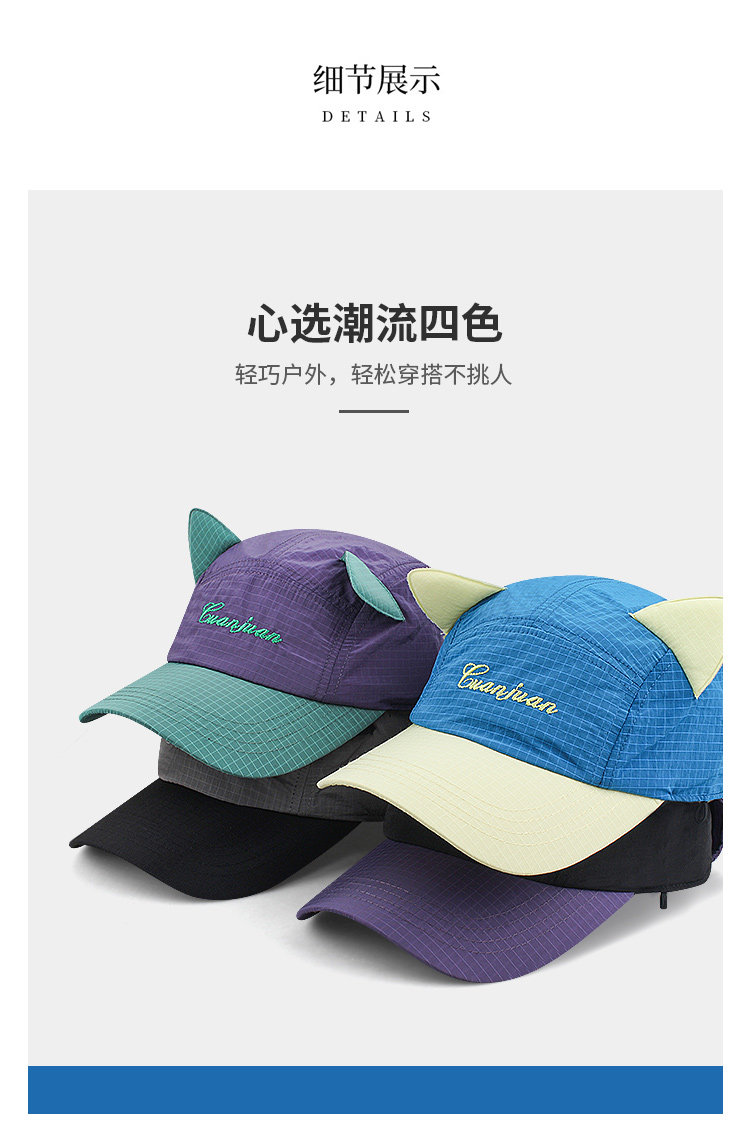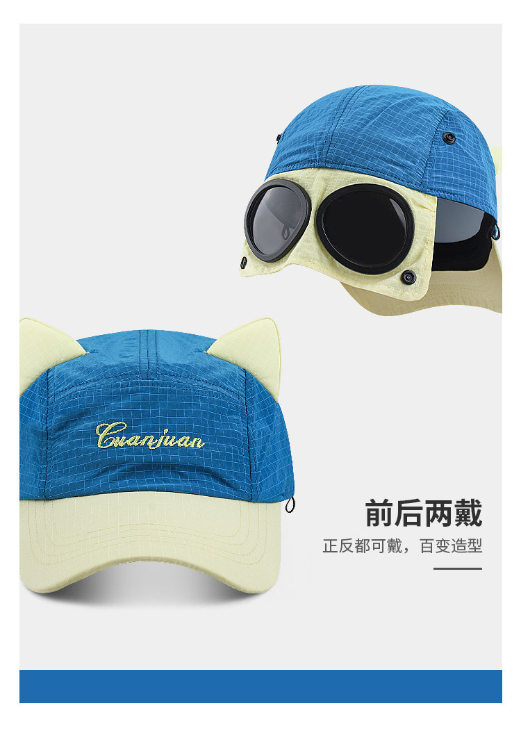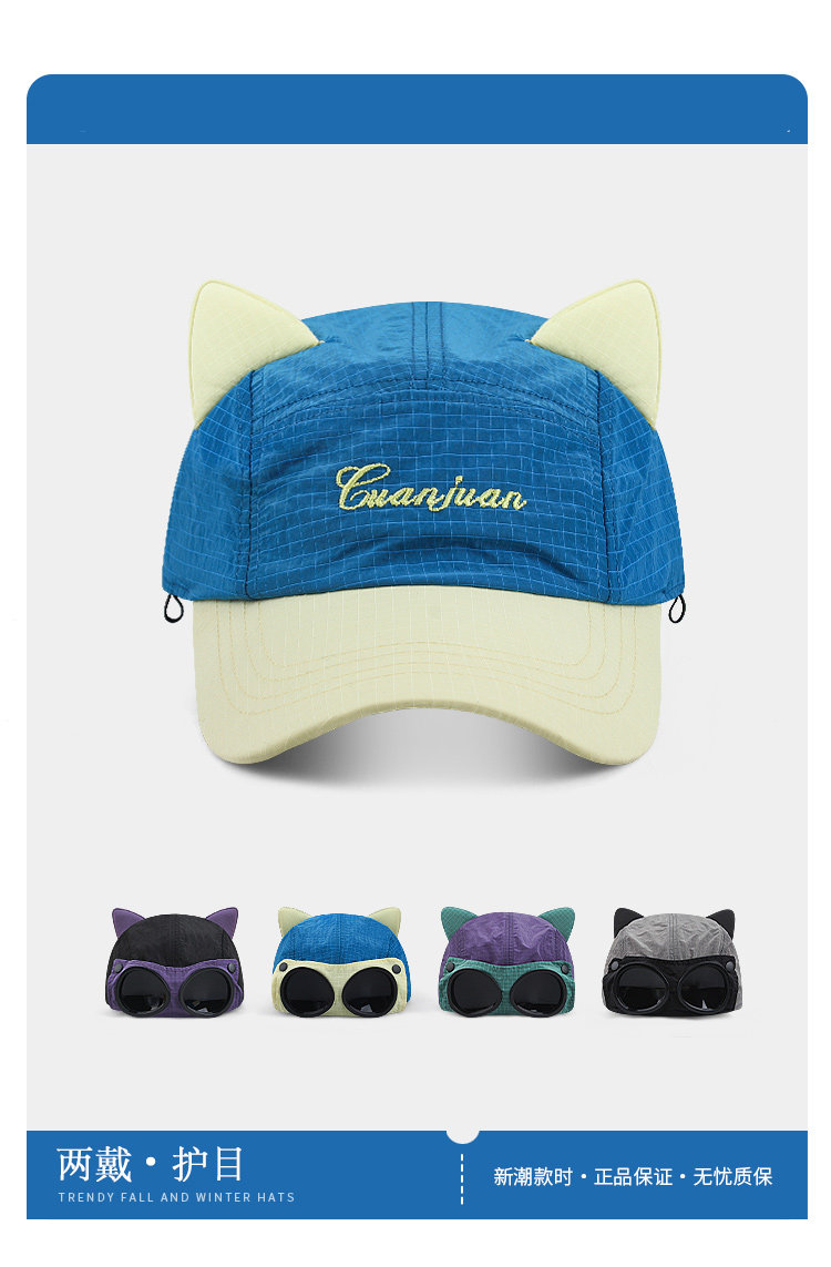 MIND BOY Korean aviator glasses quick-drying baseball hat for women cute cat ears big head cap for men