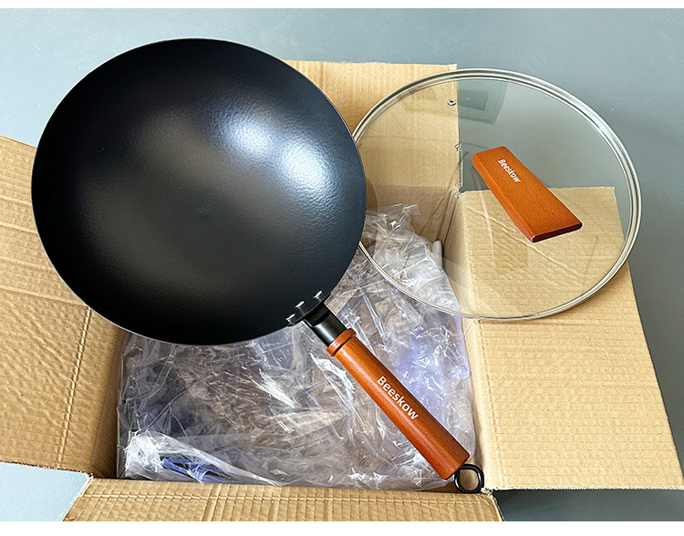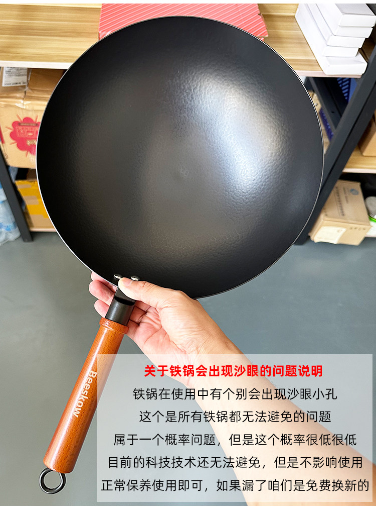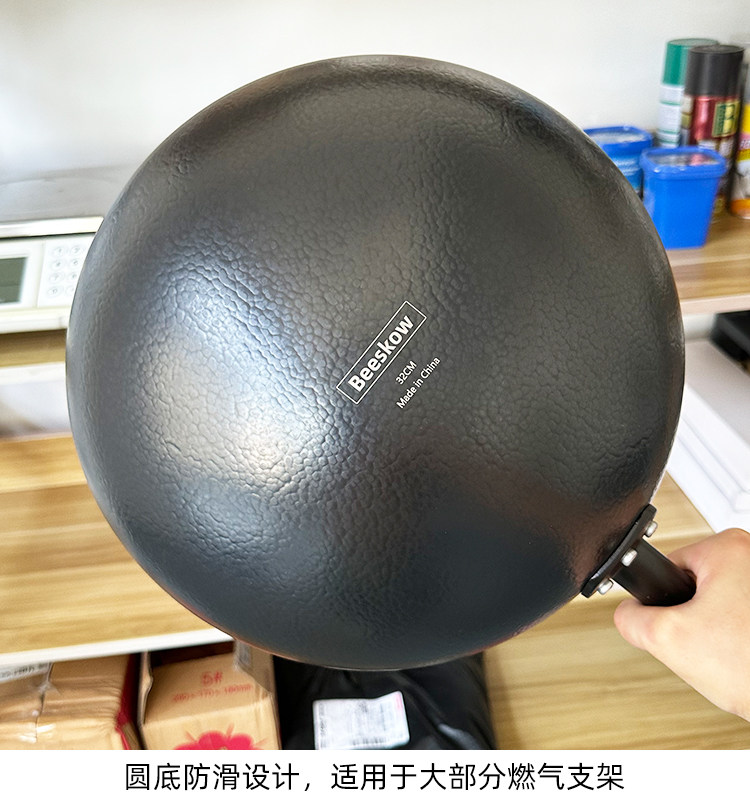 XMAN+ stock fine iron round bottom wok, household iron pan, special for open fire gas stove, foreign trade final order