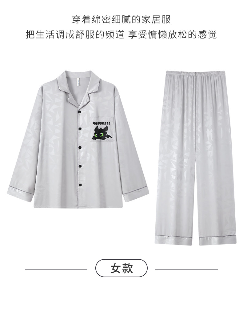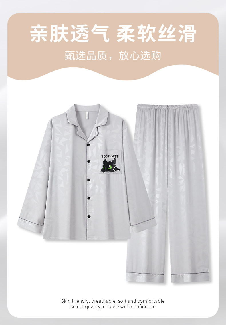 2026 New Toothless Pajamas Men's Spring and Autumn Ice Silk Long Sleeve Teenagers Loose Men's Home Clothes Summer Thin