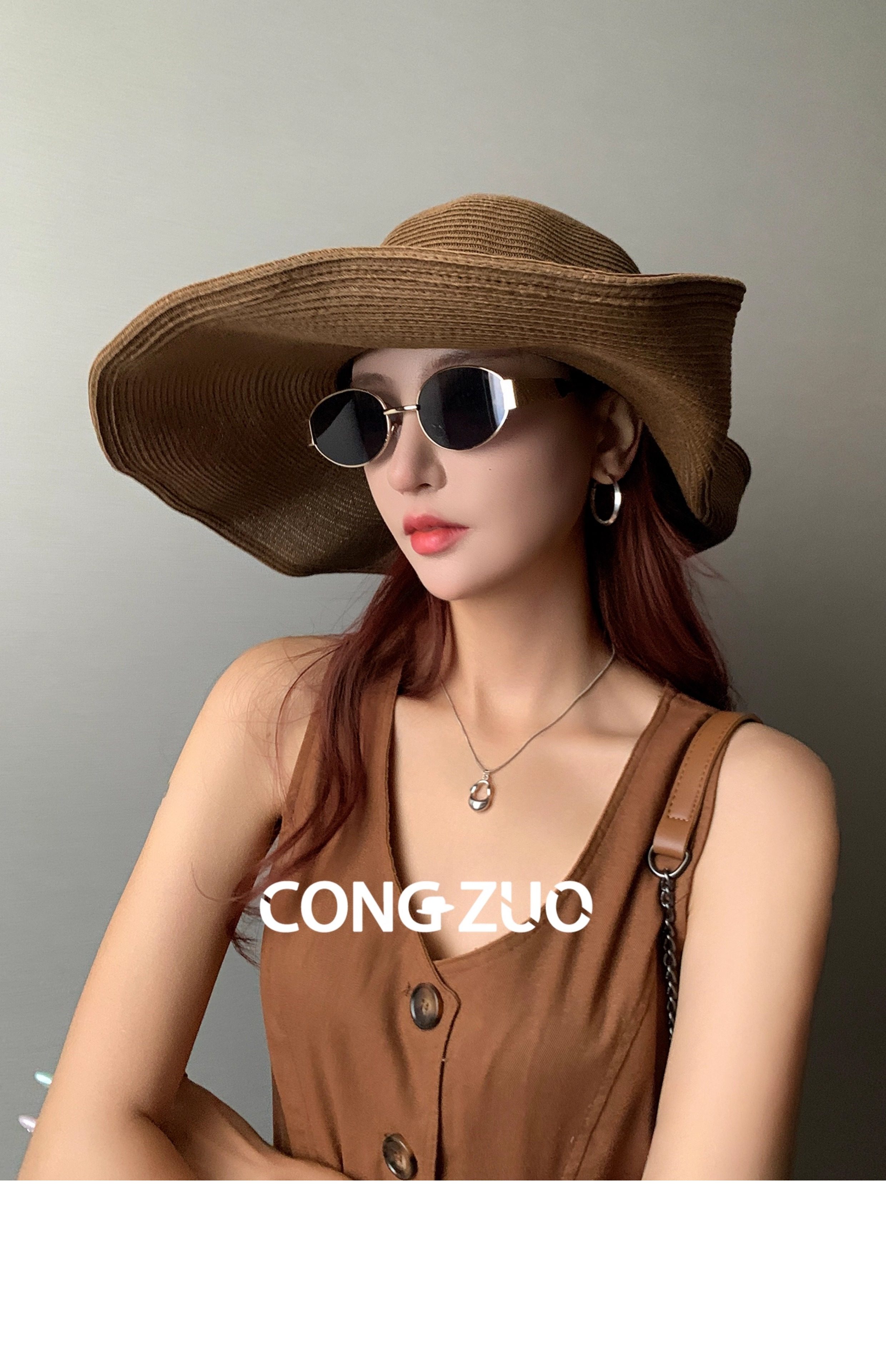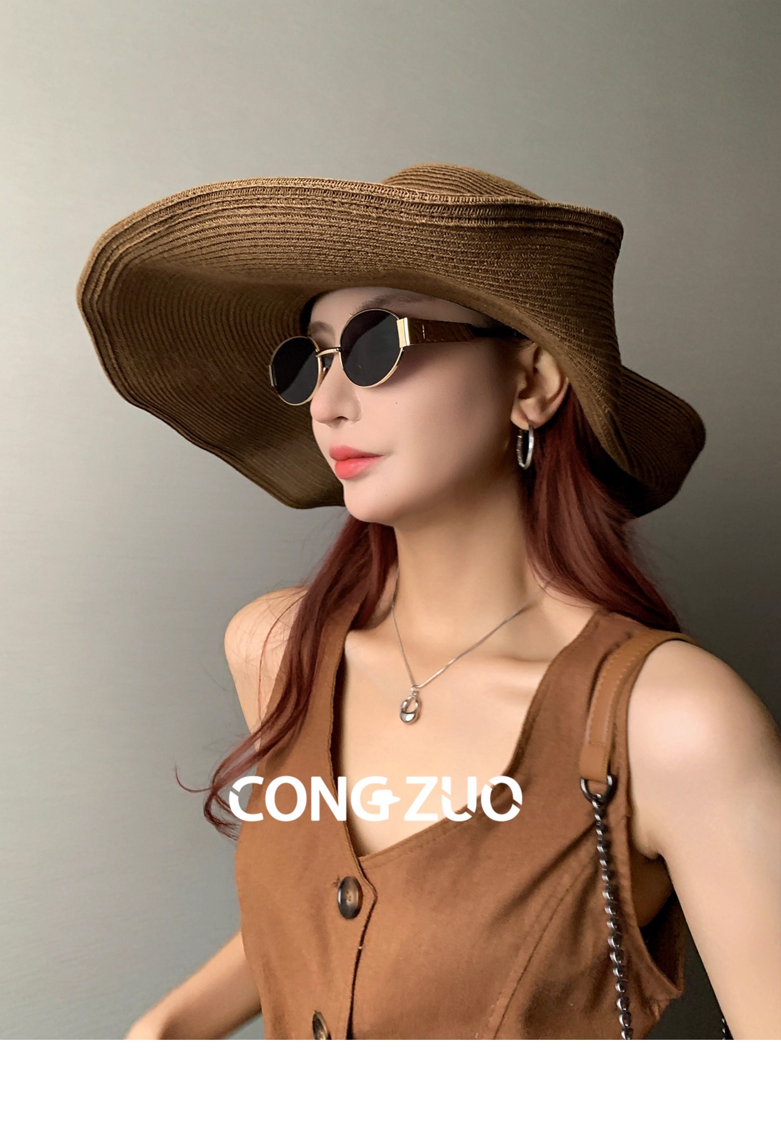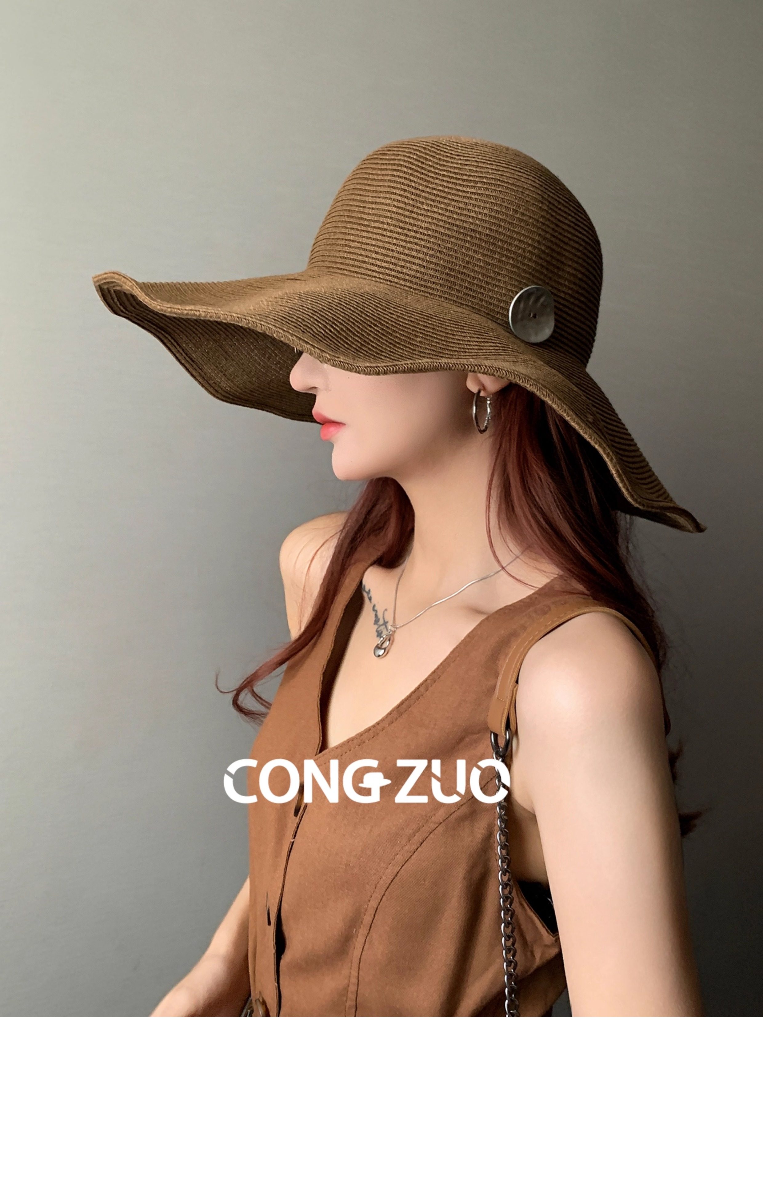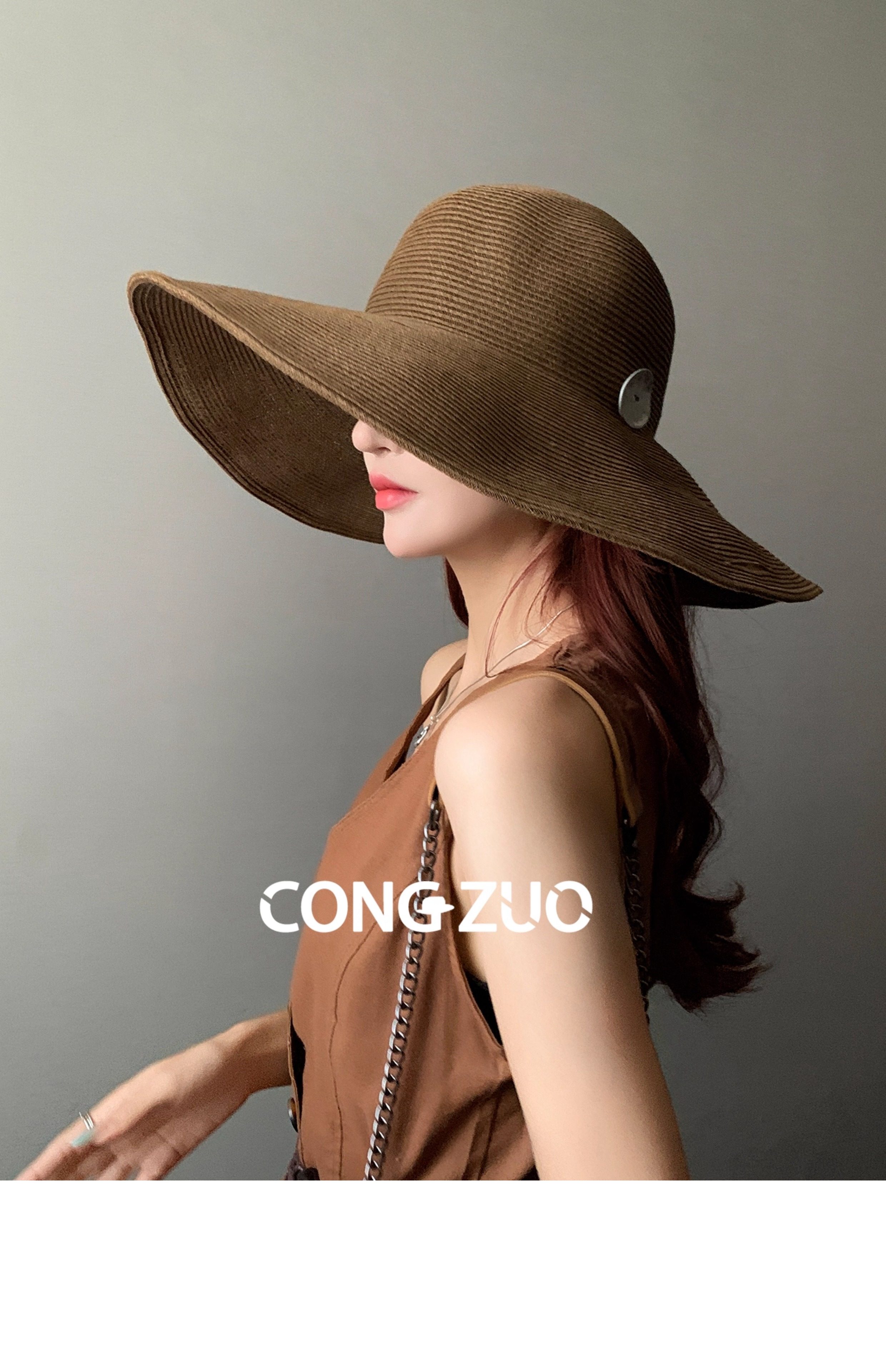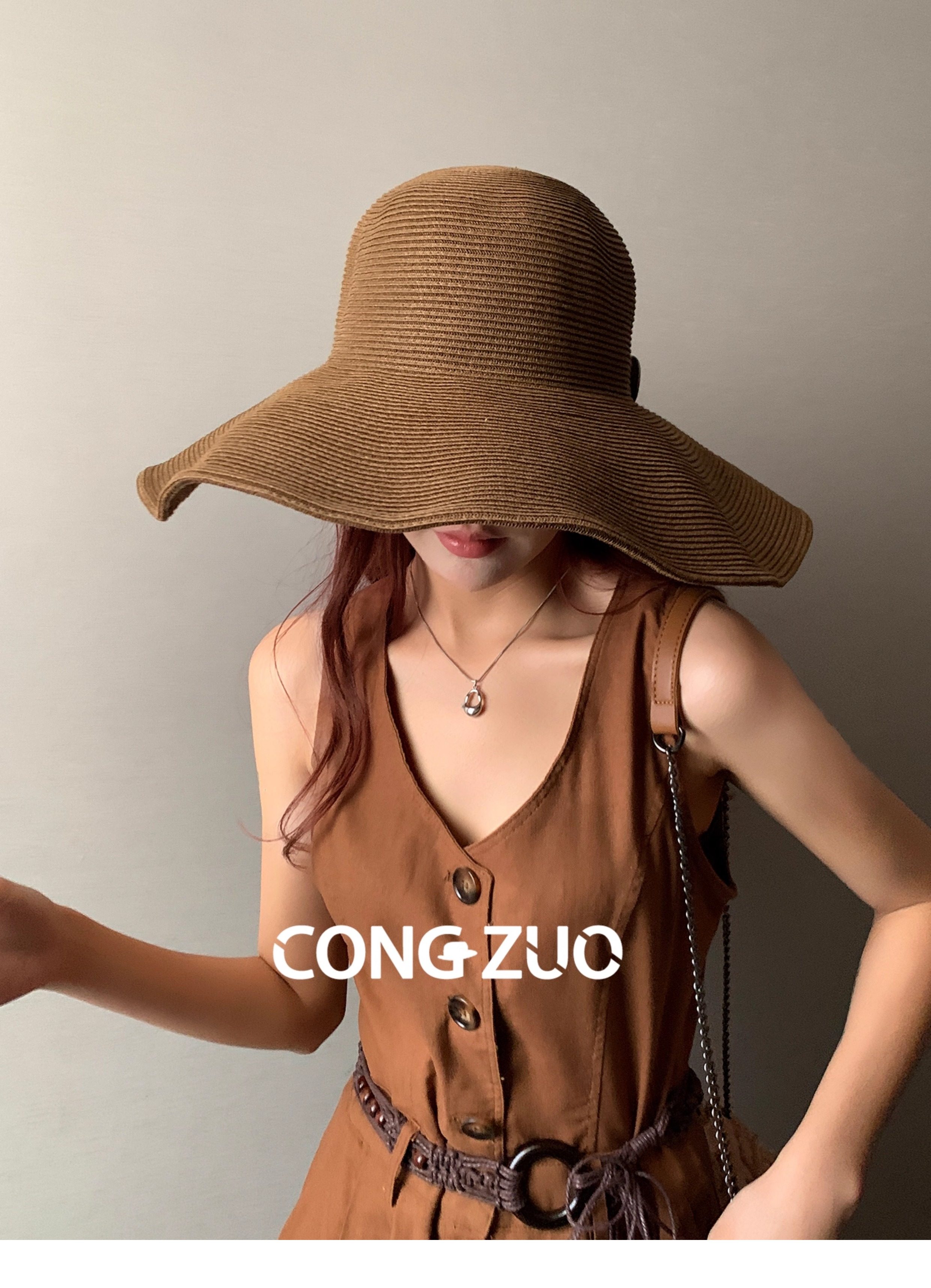 Designer high-definition large brim straw hat for women summer sun protection fisherman hat folding straw hat sun hat