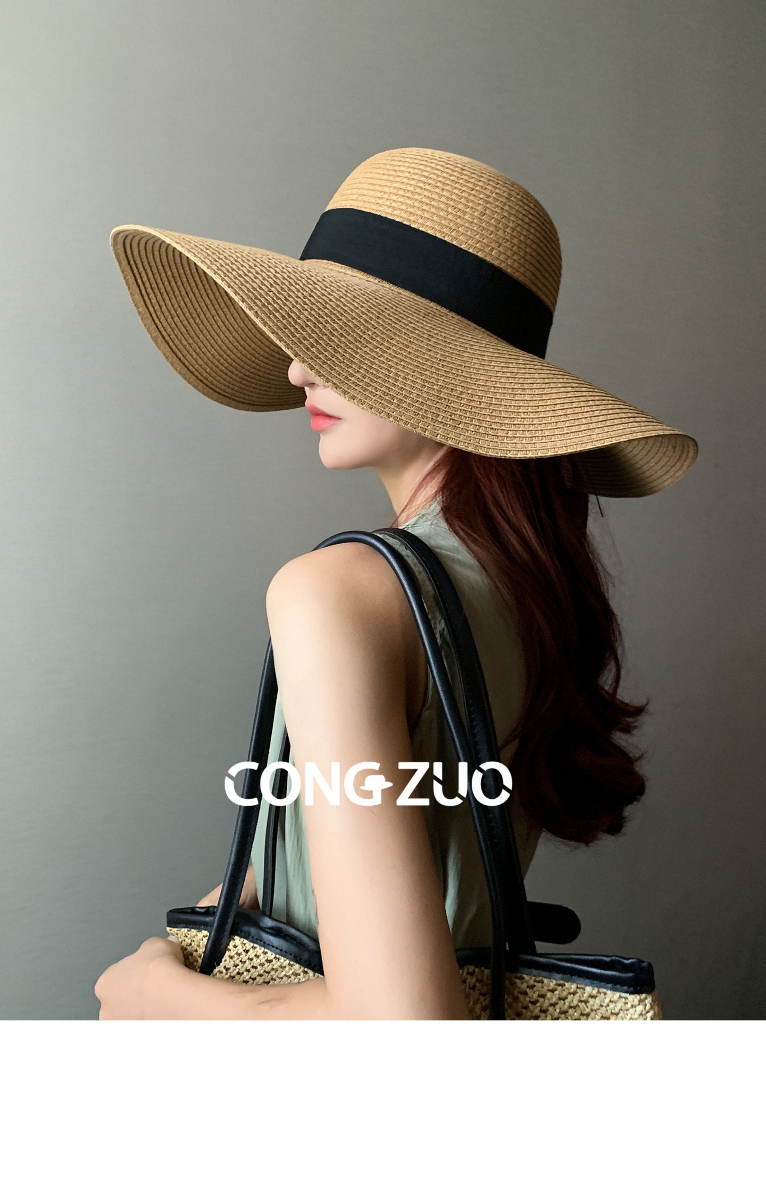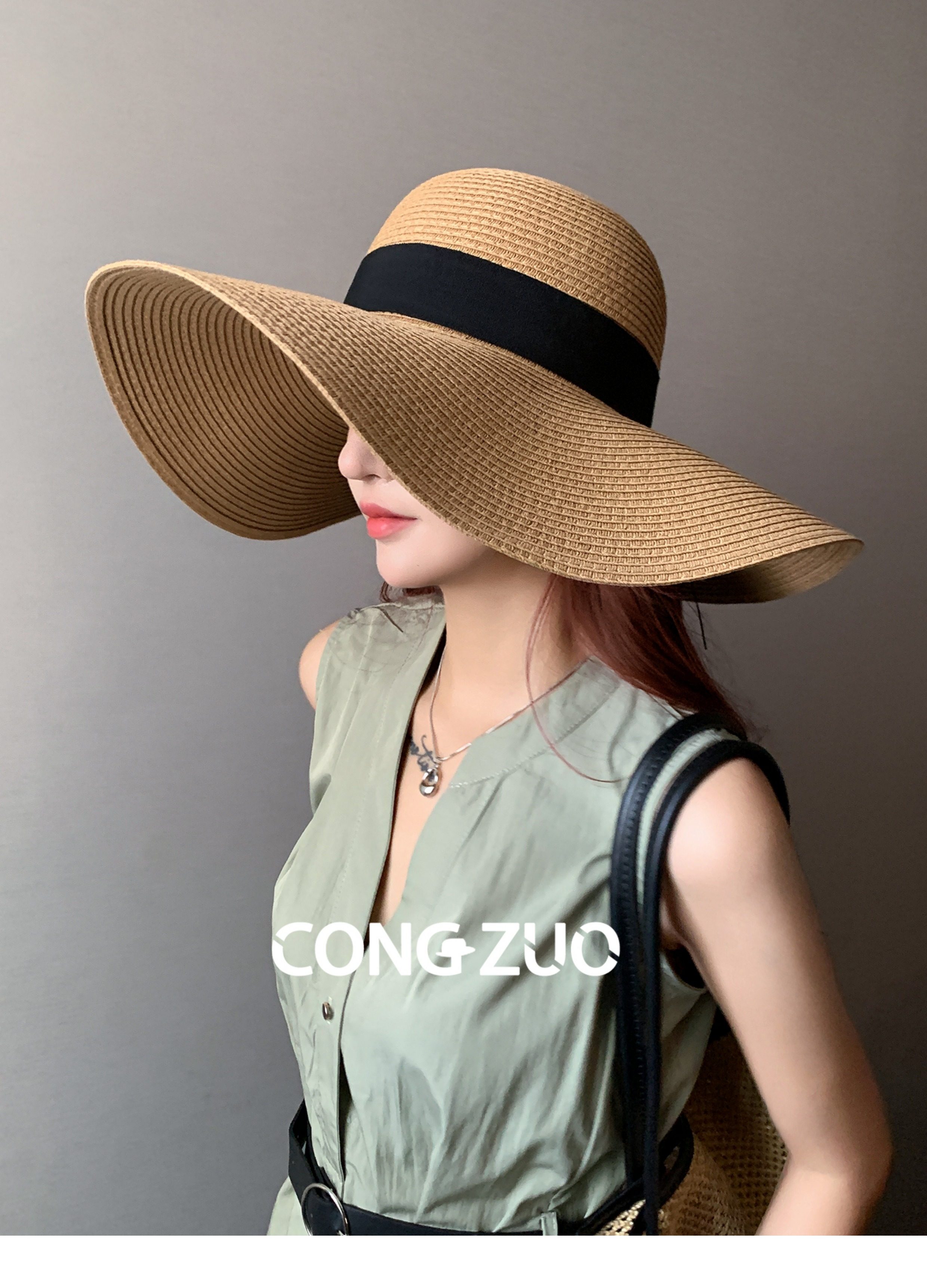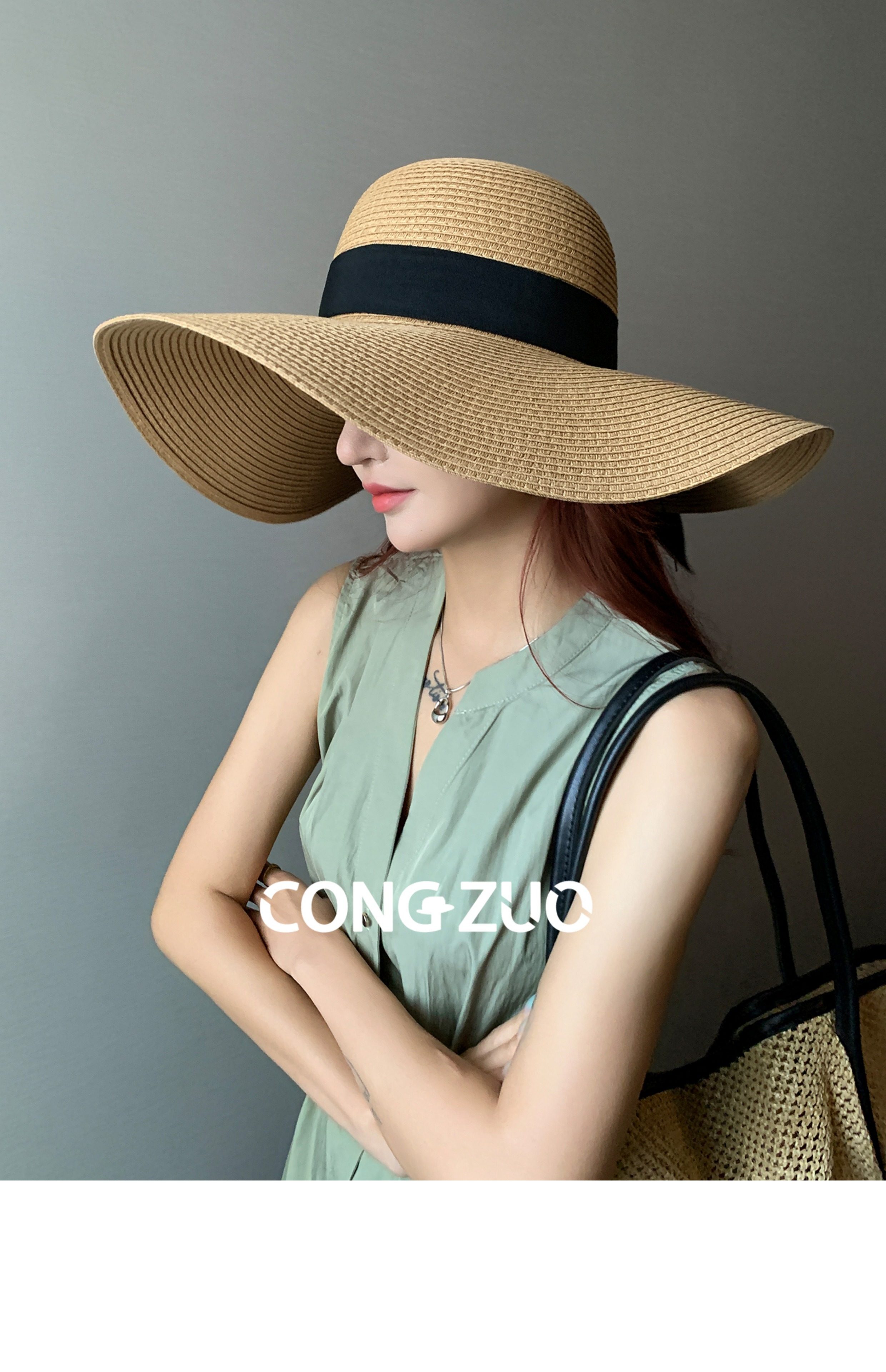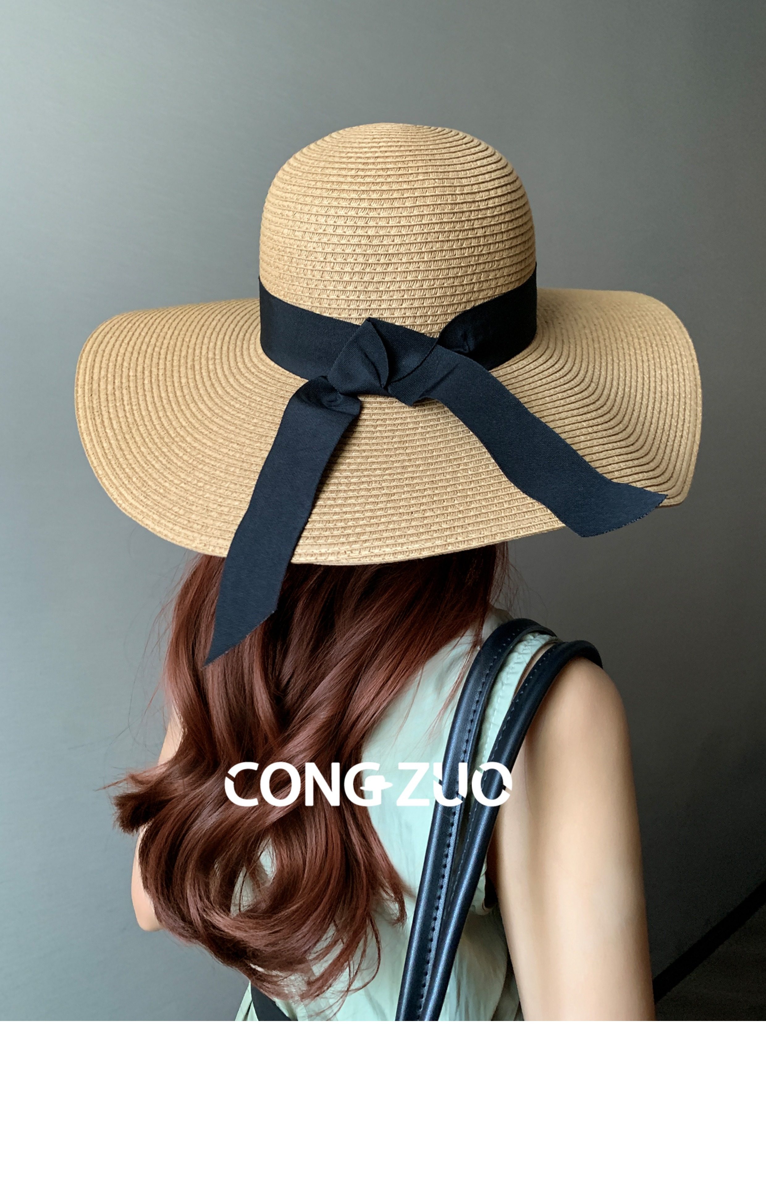From Zuo big brim straw hat women's summer new bow sun protection sunshade fisherman hat high-definition holiday beach hat
