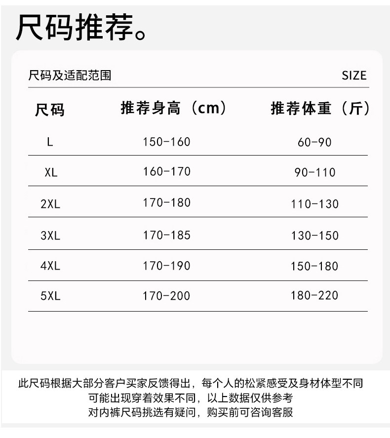 Size L [Recommendation 30-45kg],XL [Recommended 45-55kg],2XL [Recommended 55-65kg],3XL [Recommended 65-75kg],4XL [Recommended 75-90kg],5XL [Recommended 90-105kg],10XL