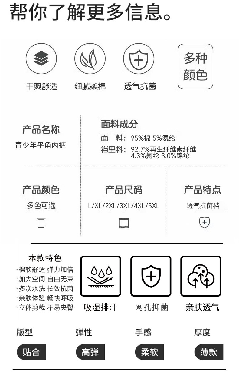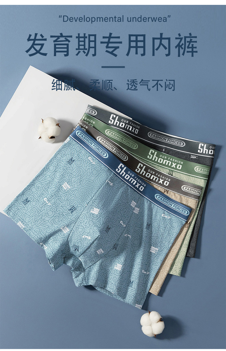Teenage Boys' Underwear for Puberty, Junior High School Students' Pure Cotton Children's Boxer Shorts, Boys' Breathable Boxer Briefs for Older Children