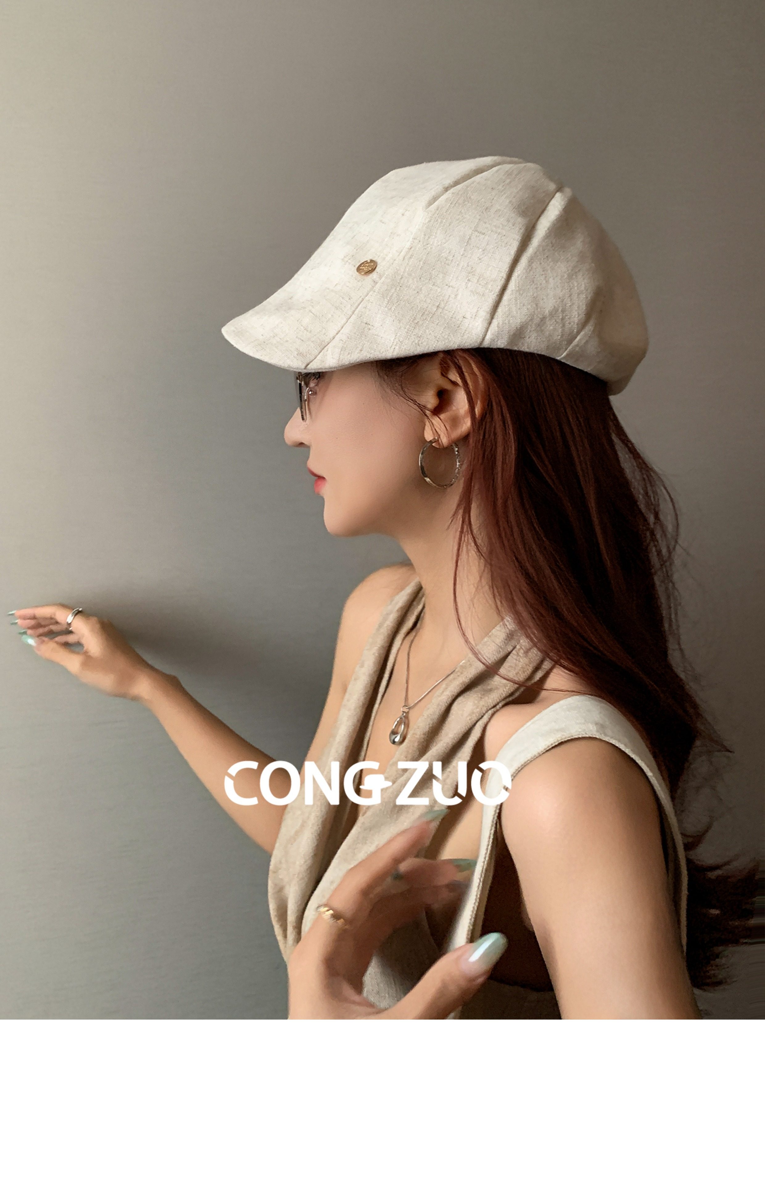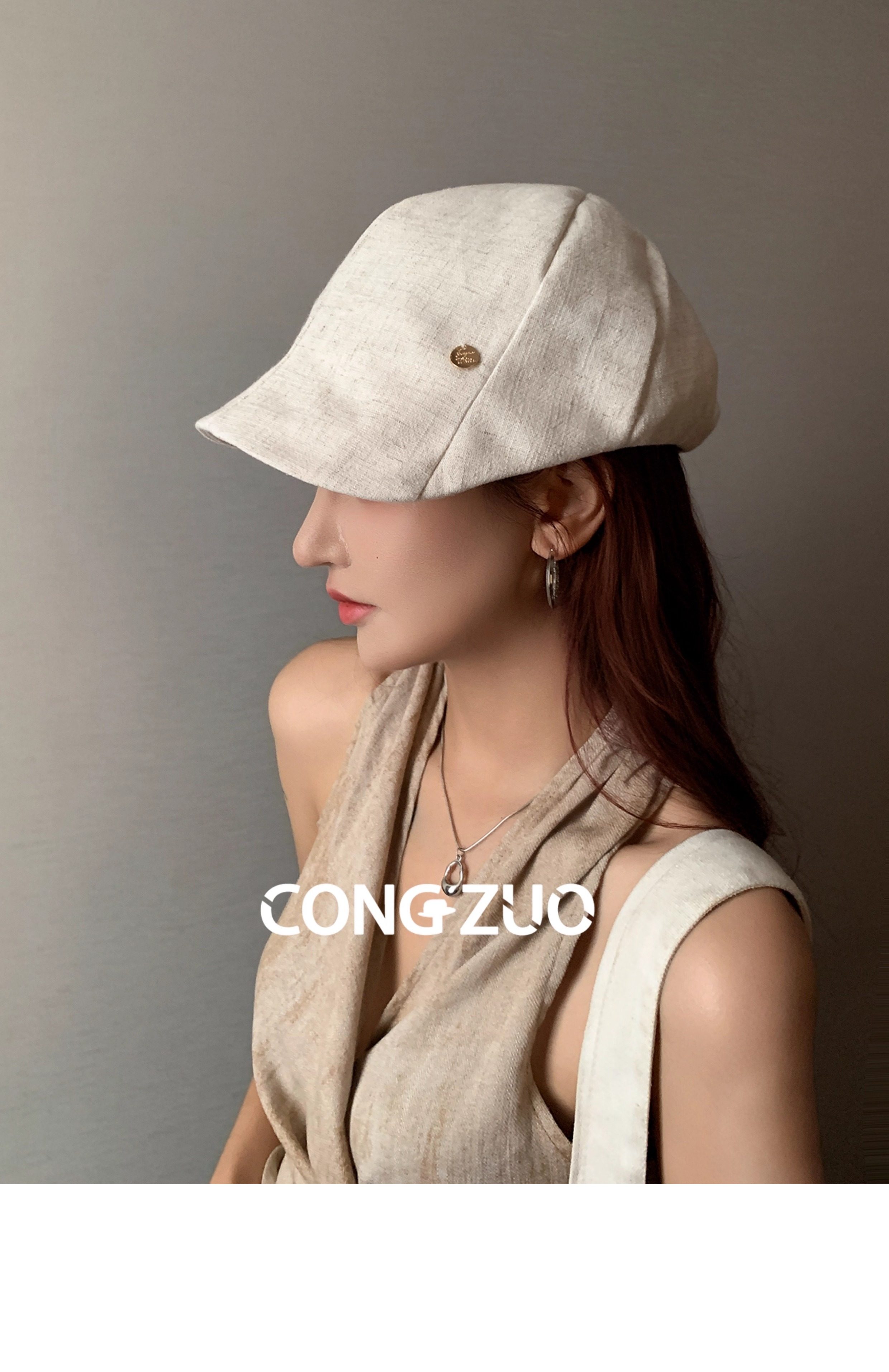 Designer-Vorwärtshut, Damen-Baumwolle und Leinen, dünne Entenkappe, Sommer, atmungsaktiver Sonnenschutz, Retro, vielseitige Enten-Baskenmütze