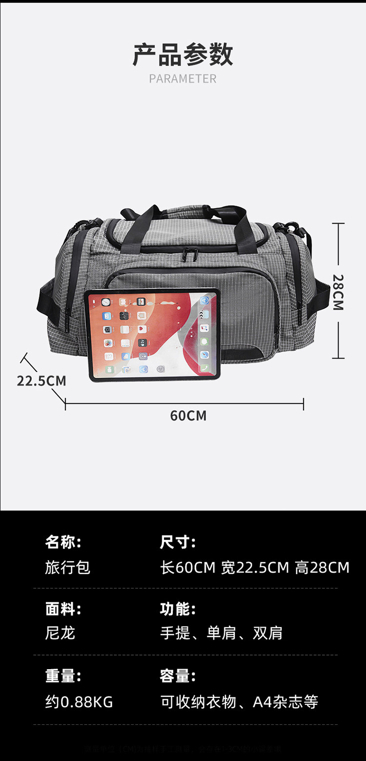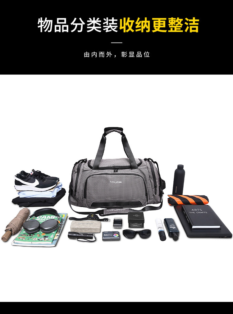 Men's large-capacity fitness bag, sports fashion backpack, dry and wet separation short-distance travel bag, multi-functional handbag