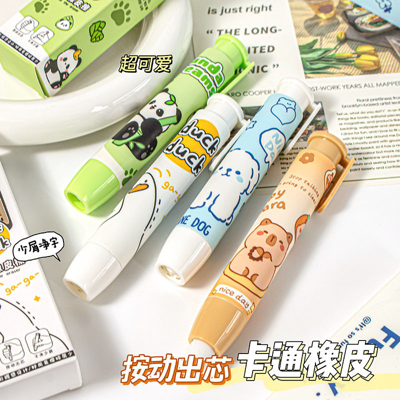 Creative Cartoon Cute Animal-Shaped Retractable Eraser for Students, Clean Erasing with Less Debris, Refillable, Retractable Eraser, Children's Reward Learning Stationery Gift