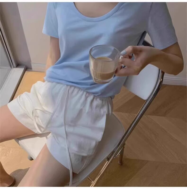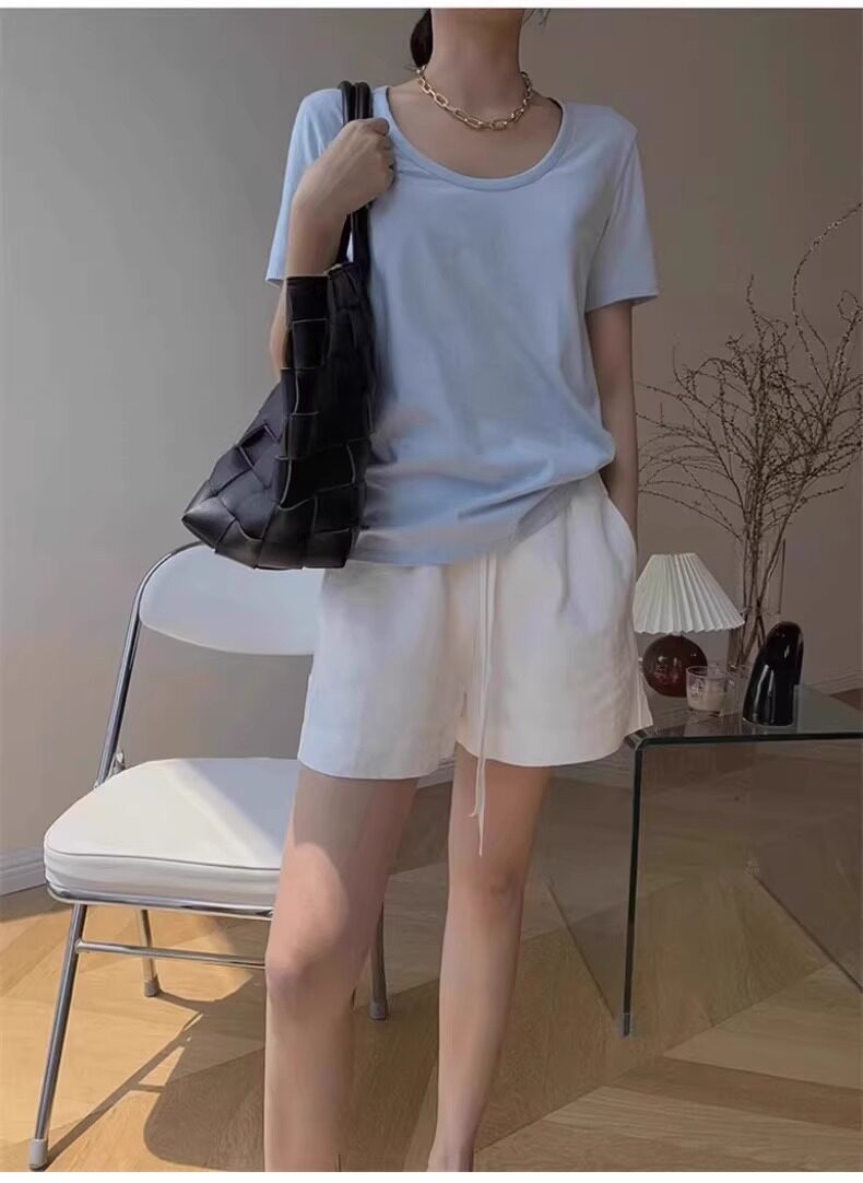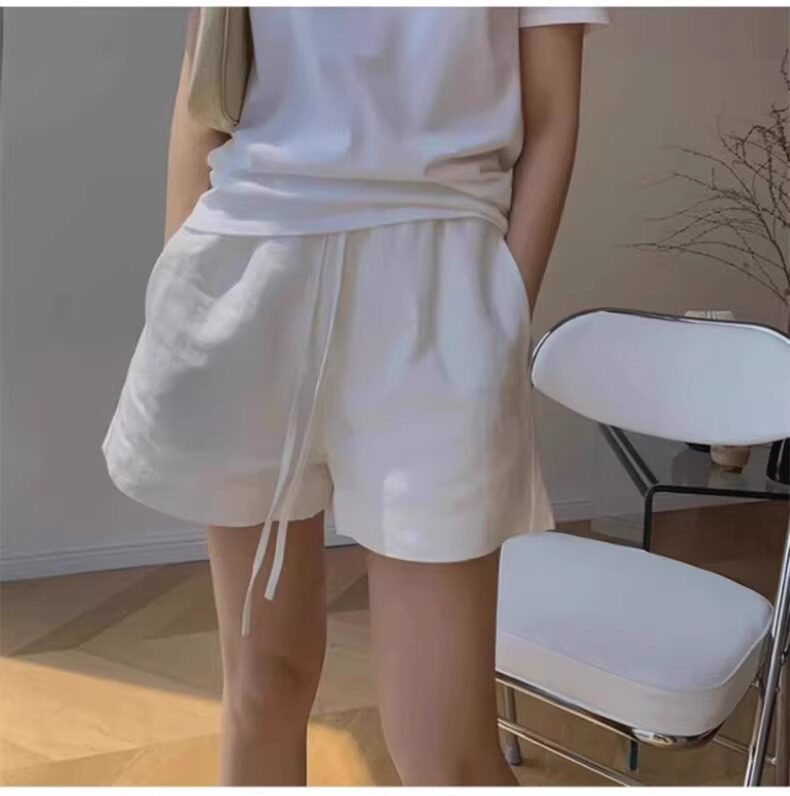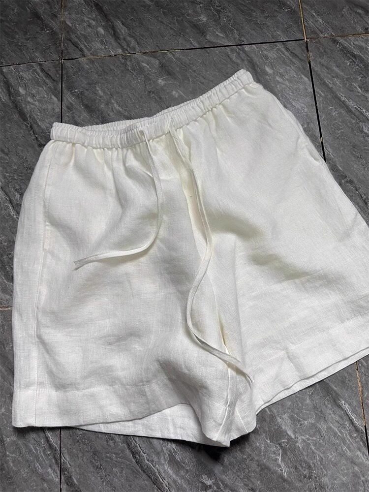 Skin-Friendly and Comfortable Cotton and Linen White Shorts for Women, Summer ins Relaxed High-Waisted Straight A-Line Thin Tencel Wide-Leg Pants