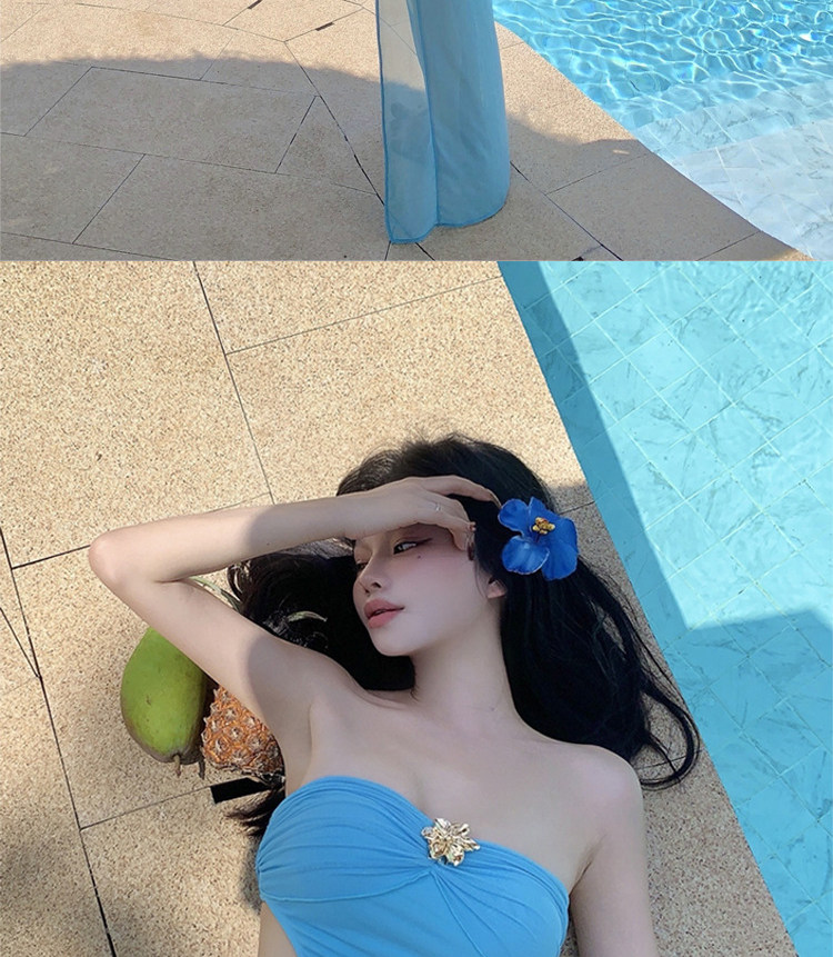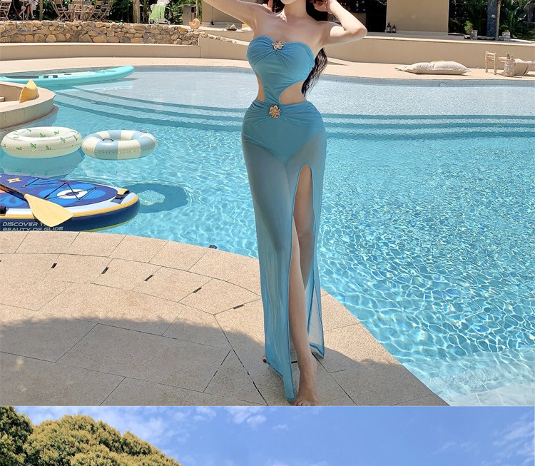 New One-Piece Swimsuit, Sexy Hot Girl, Pure Desire, Small Breasts Gathered, Resort Hot Spring, Fashionable Long Skirt Swimsuit, Two-Piece Set
