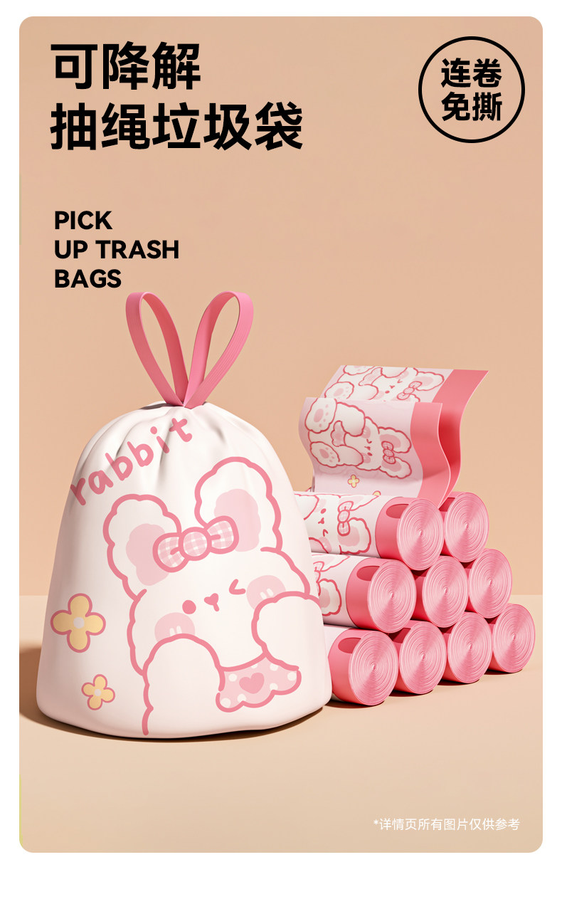 Biodegradable Tear-Free Garbage Bags for Use in the Pool, Household Portable Thickened Large Drawstring Bags, 2025 New Economical Pack