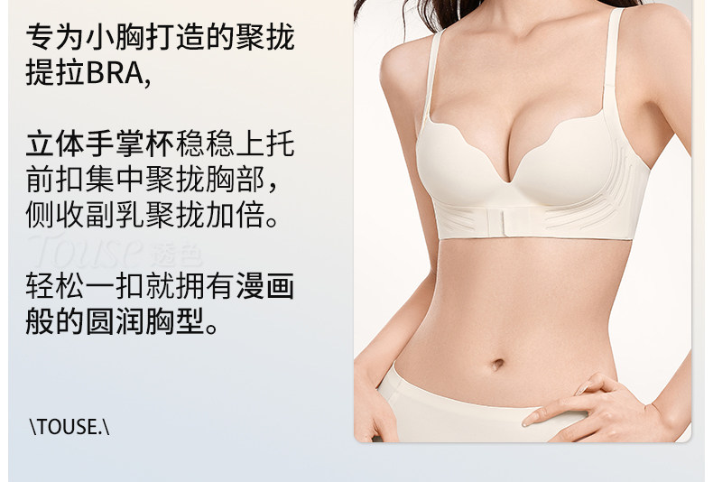 Double lift bra for women with small breasts that gathers deep V to look bigger, thin summer style breast-retracting anti-sagging bra with no empty cup