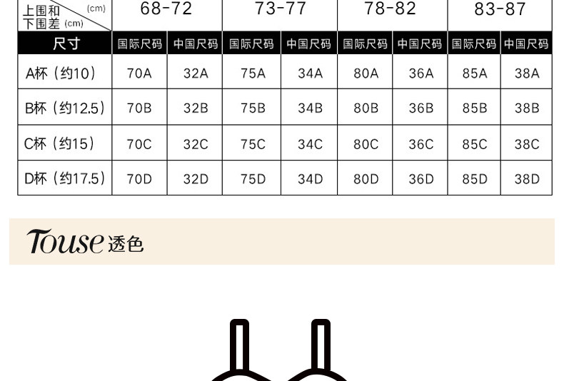 Size 32/70A,32/70B,34/75A,34/75B,36/80A,36/80B,38/85A,38/85B