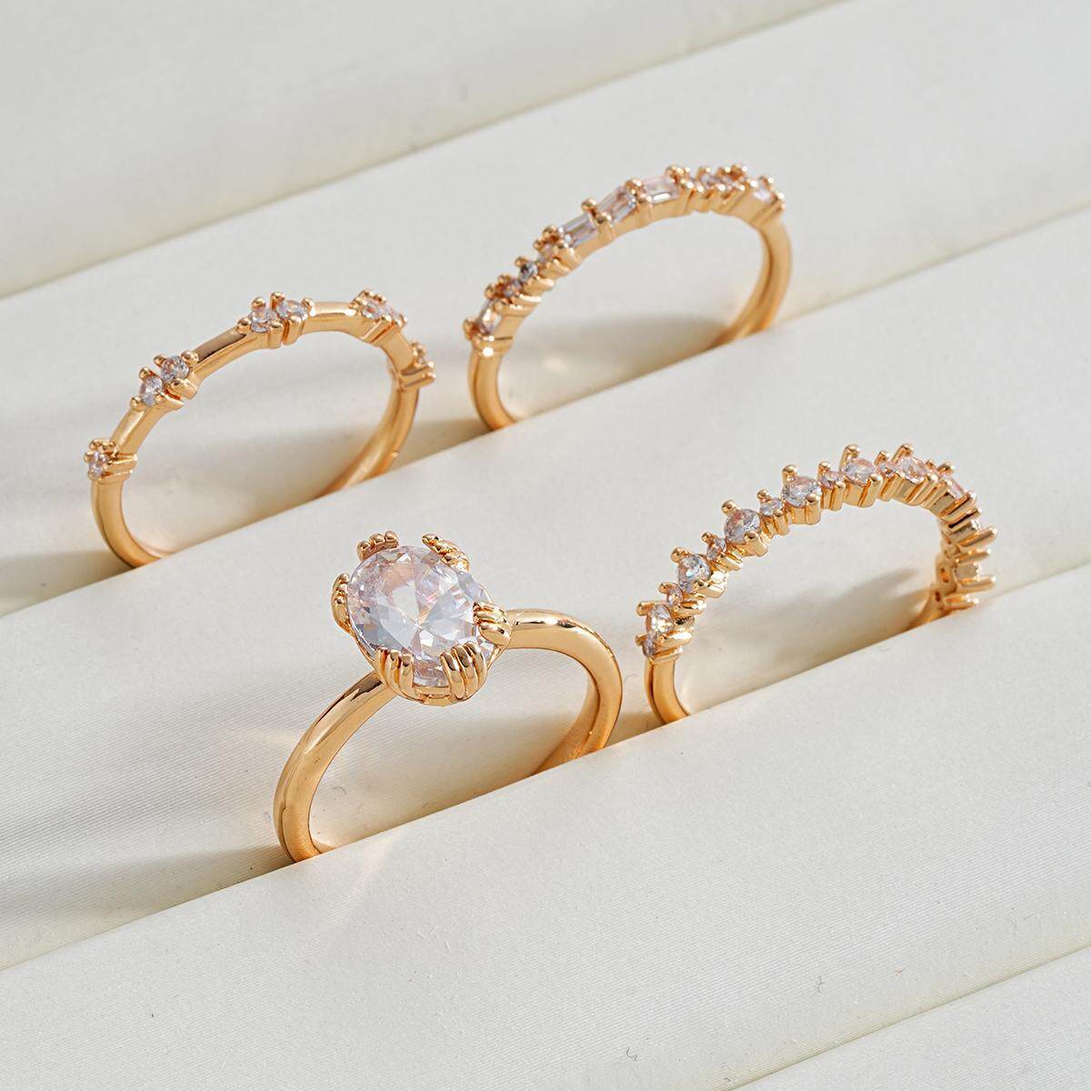 4-Piece Ring Set Cross-Border New Egg-Shaped Diamond-Studded Dazzling Wedding Proposal Women's Ring Gift Set