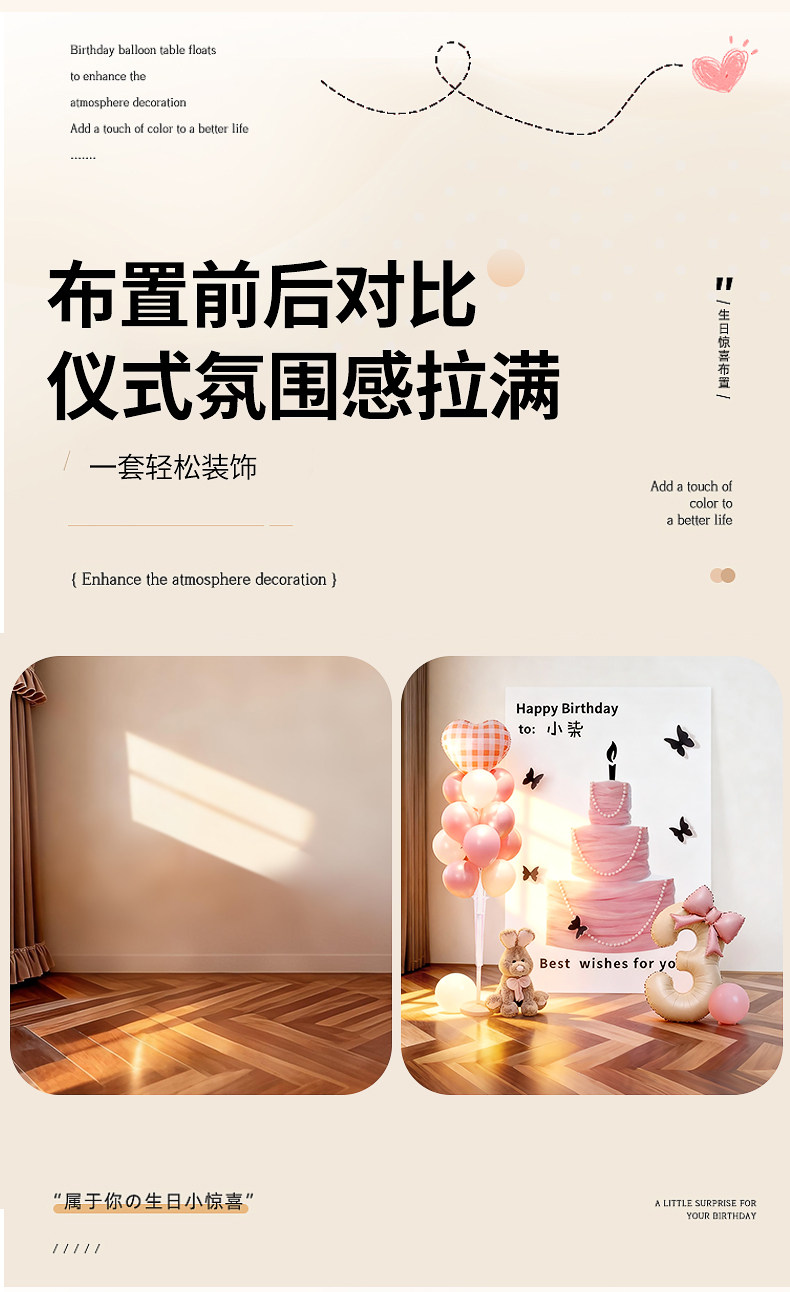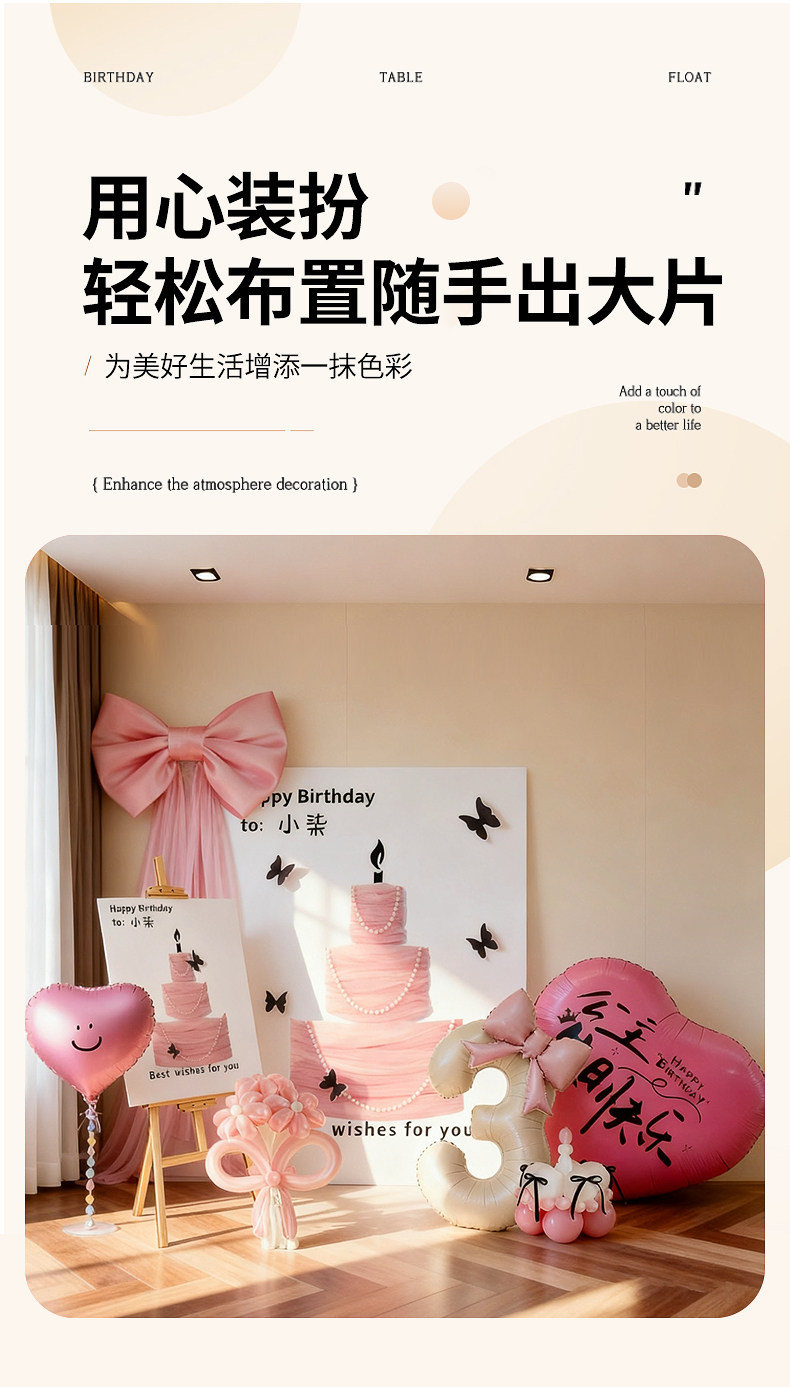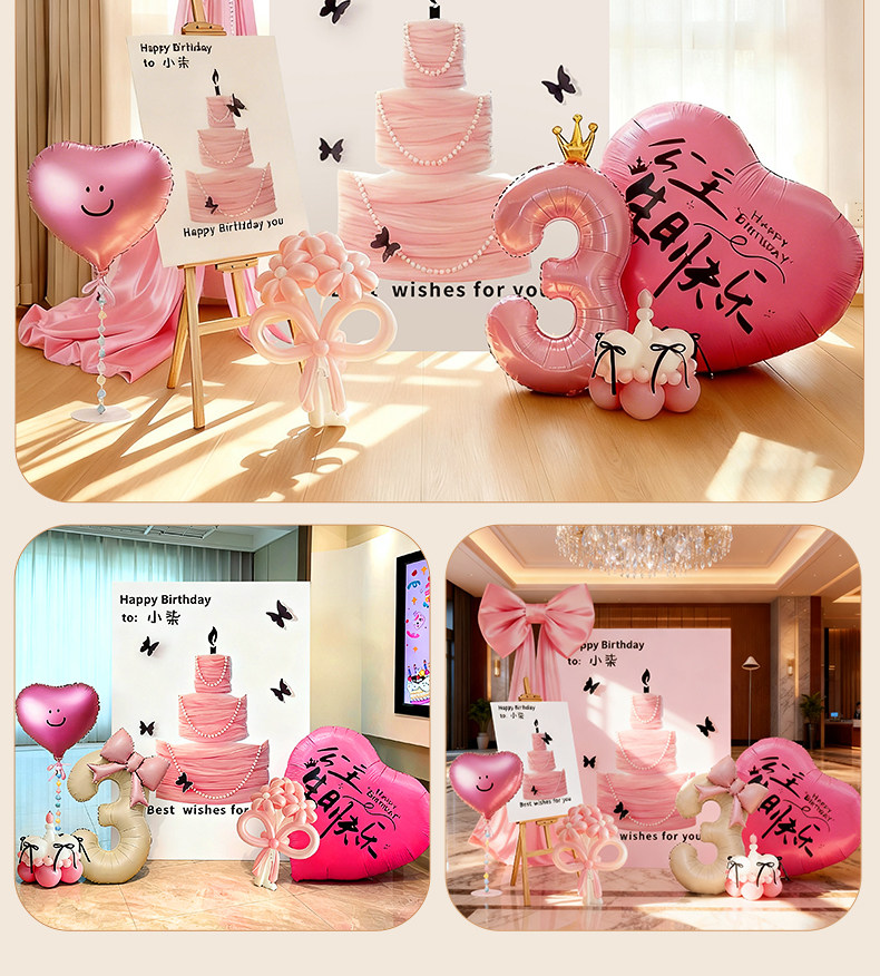 Three-Year-Old Girl's Birthday Decoration Scene Setup with Kt Board, Tulle, Cake, 3-Year-Old Princess Ceremony, Simple Family Celebration