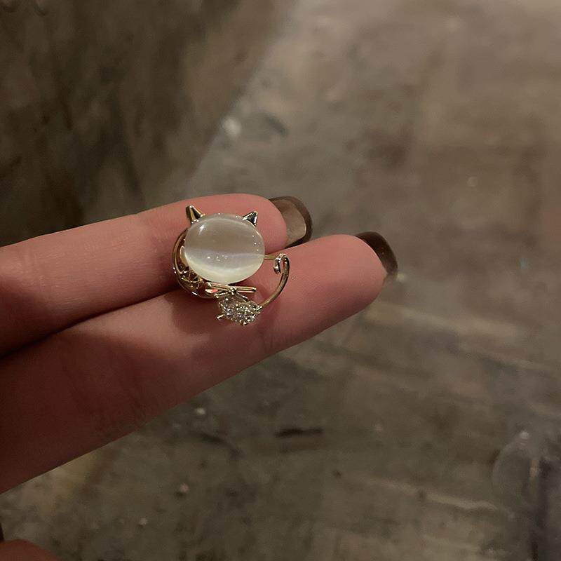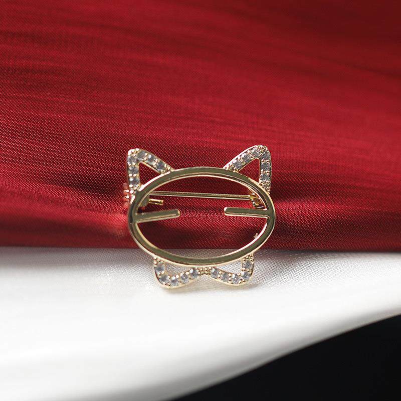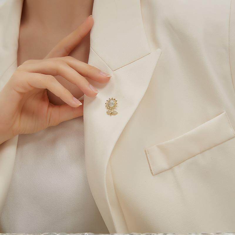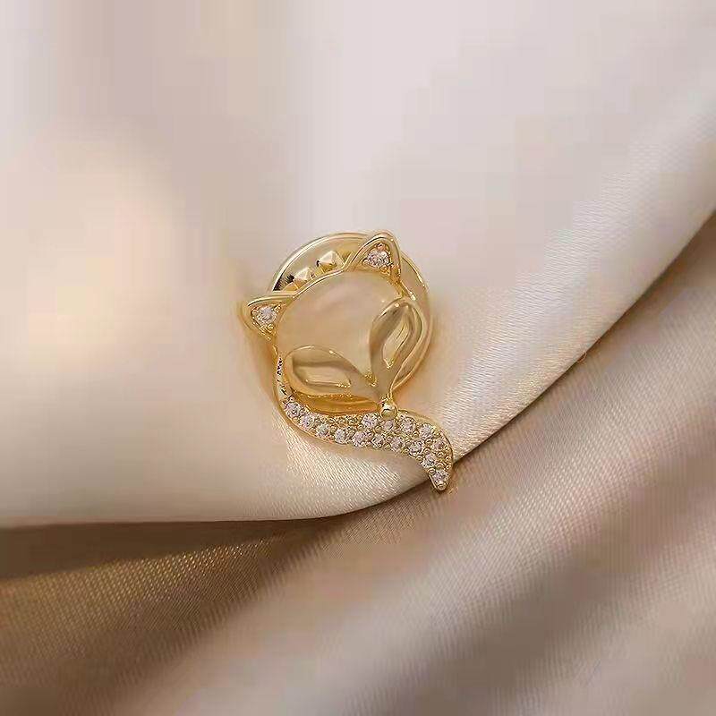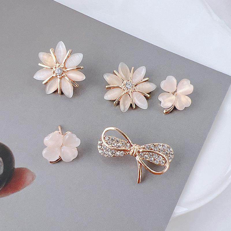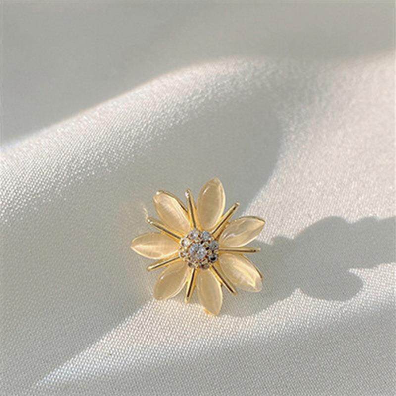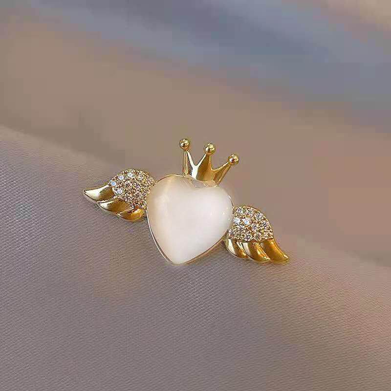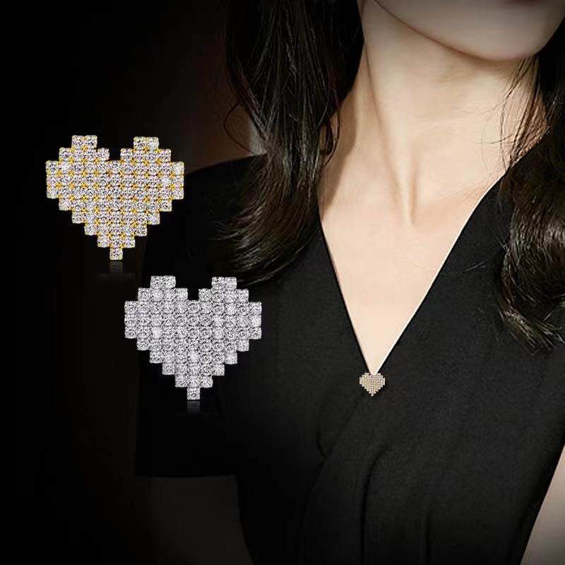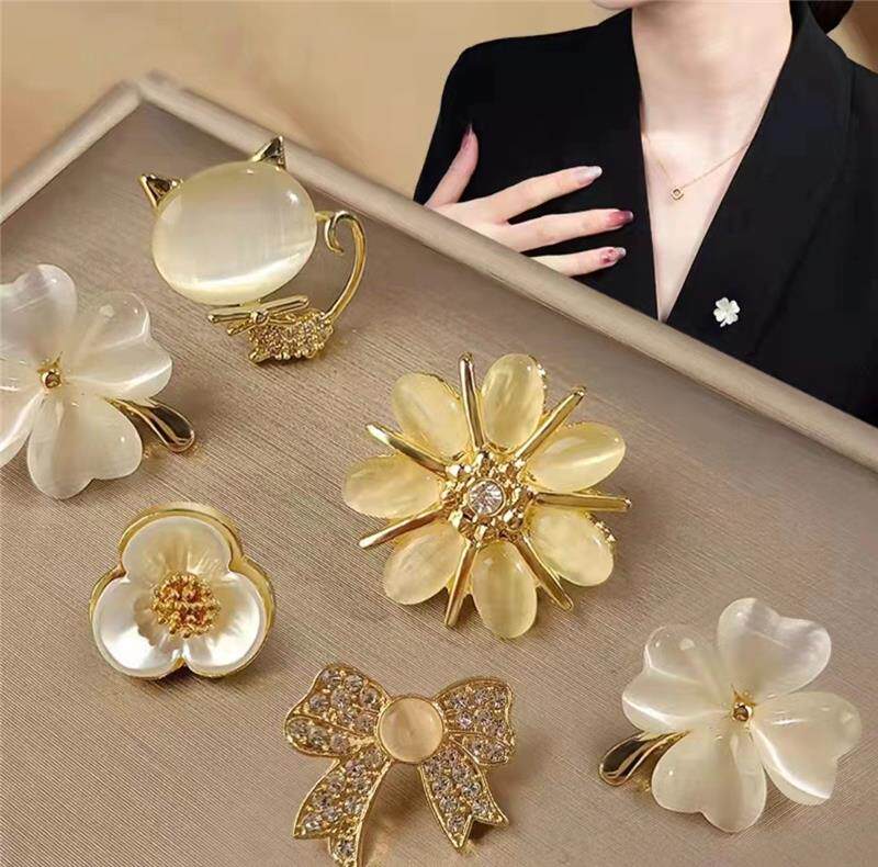 Brooch with Anti-Exposure Collar Design, Floral Rhinestone-Studded, Cute Korean Cat's Eye Stone Heart-Shaped Brooch, Personalized Pin, Clothing Corner Clasp
