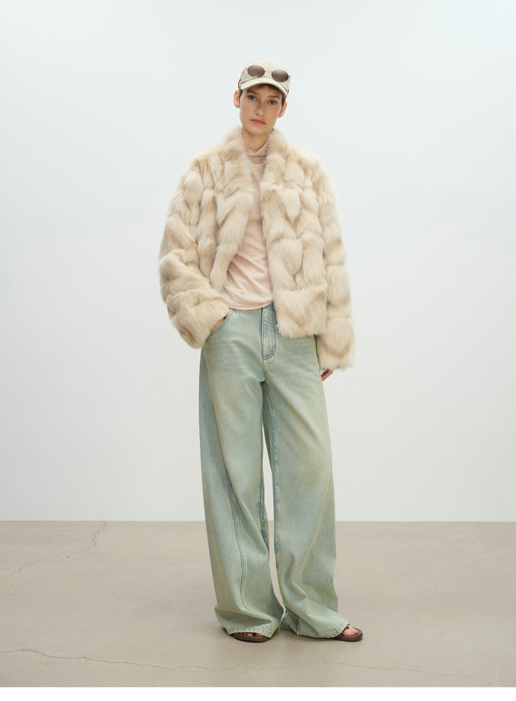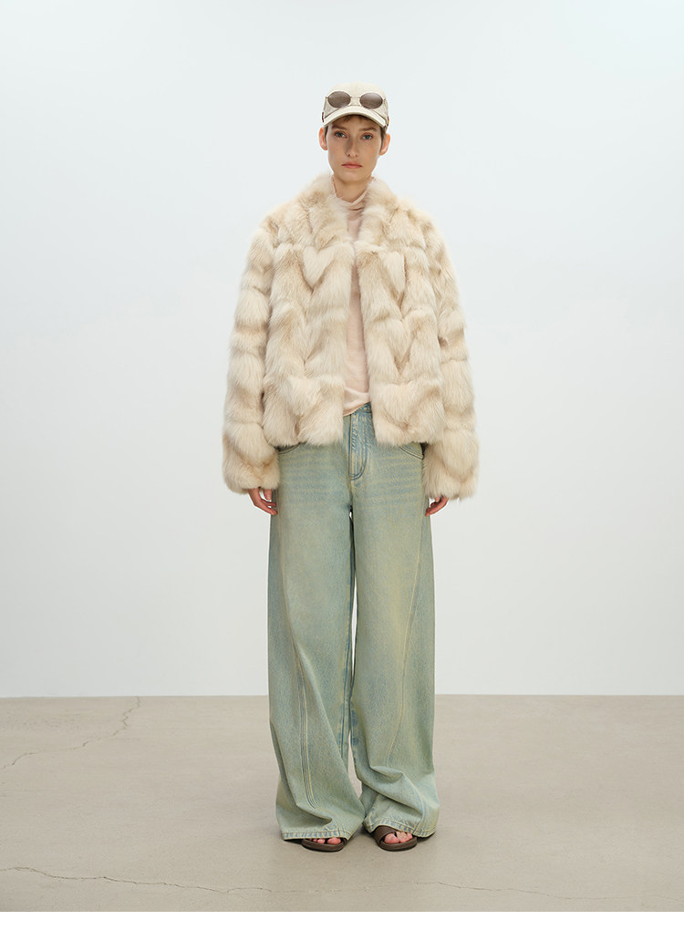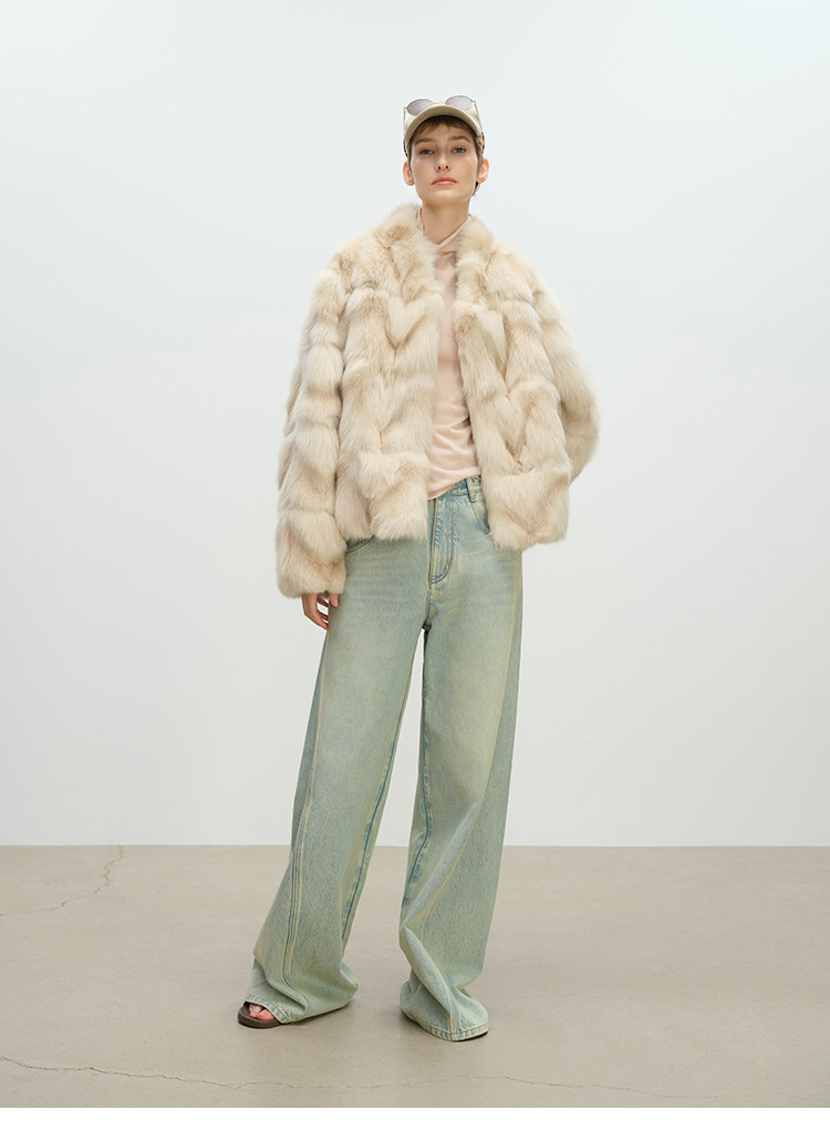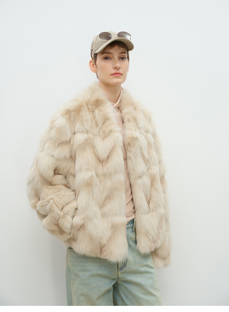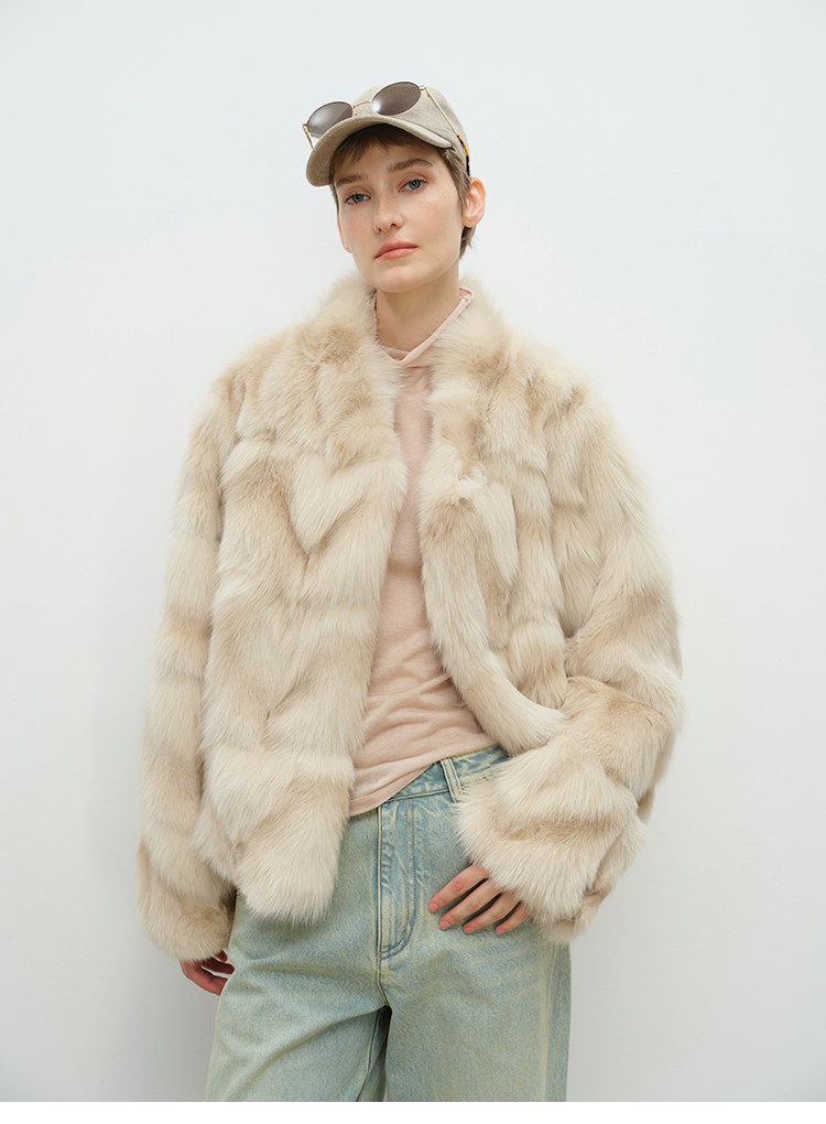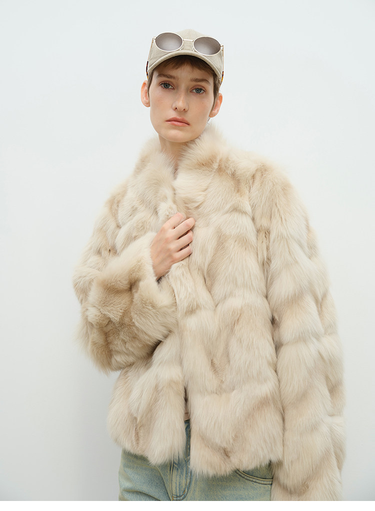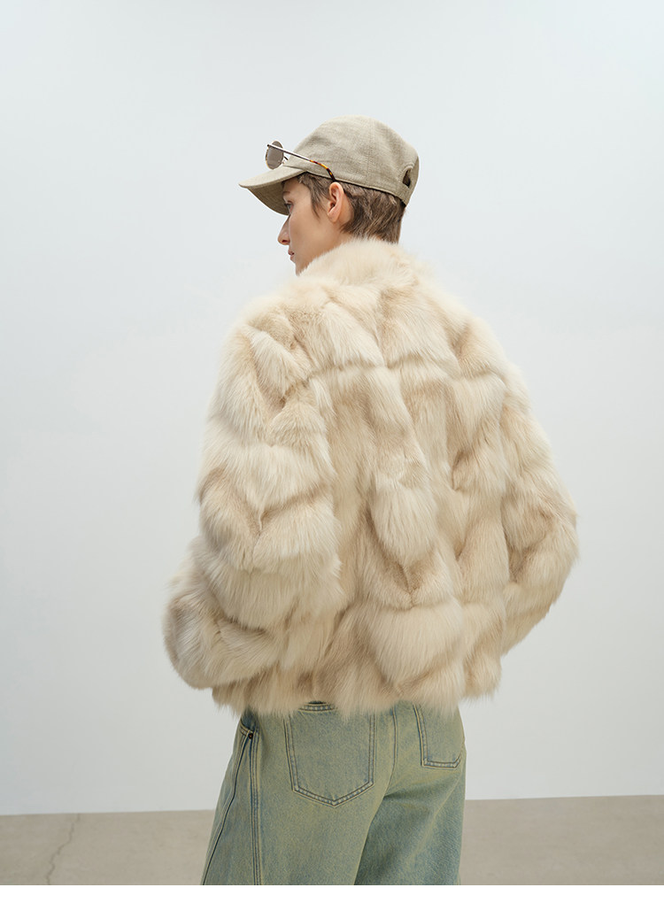 MSBEAST natural irregular V-shaped texture two-color fox leg hair stand-up collar short fur for women丨Muse Focus