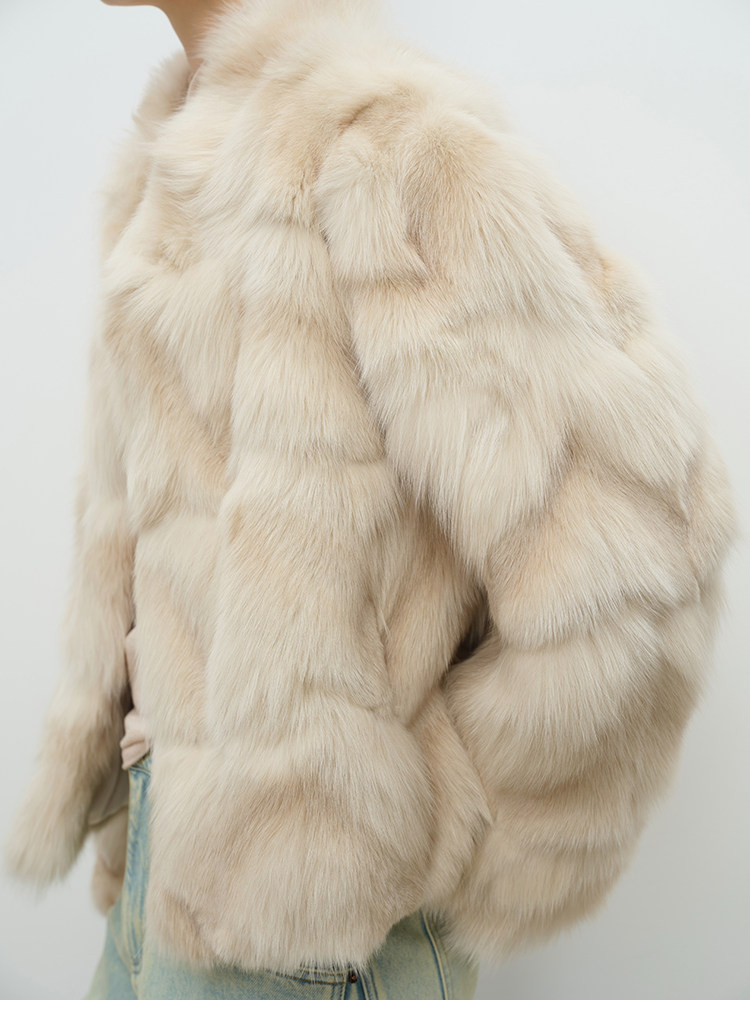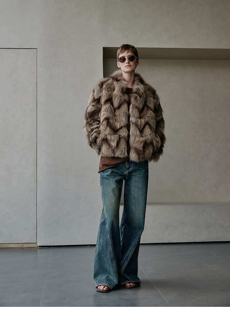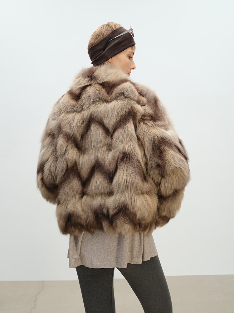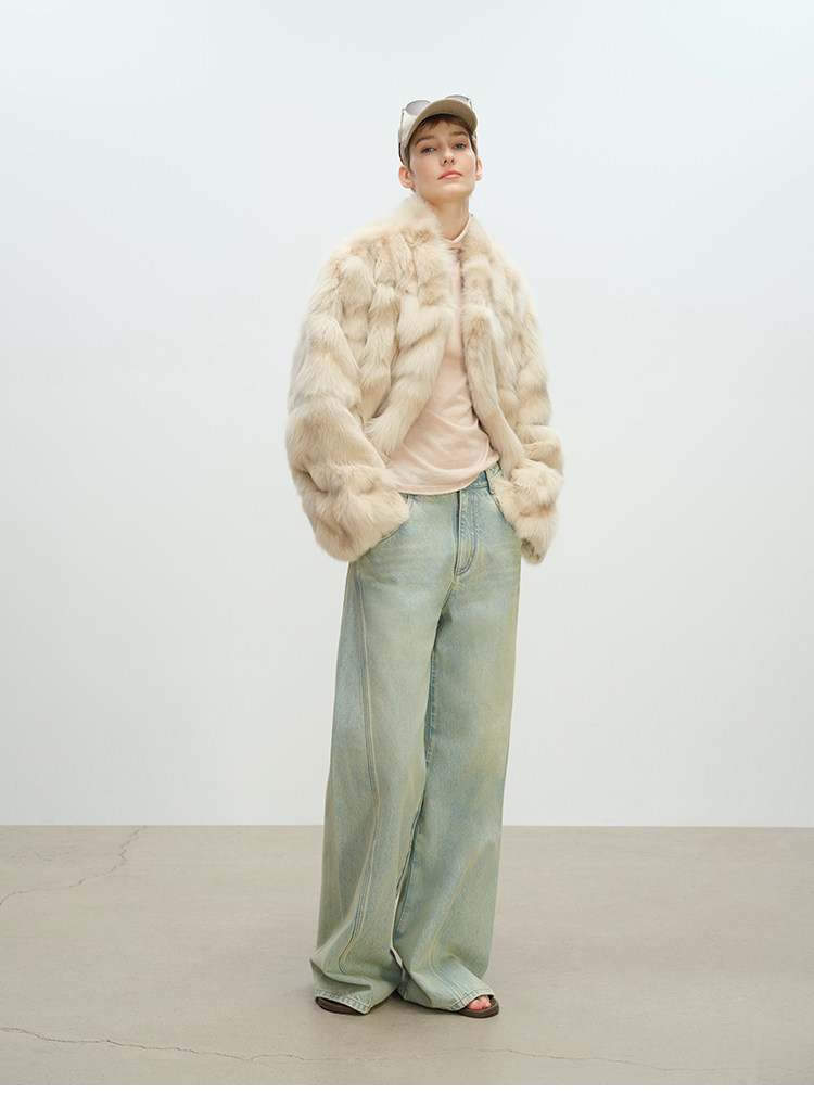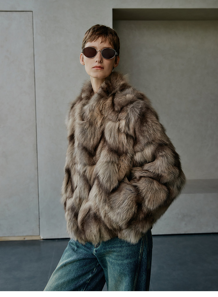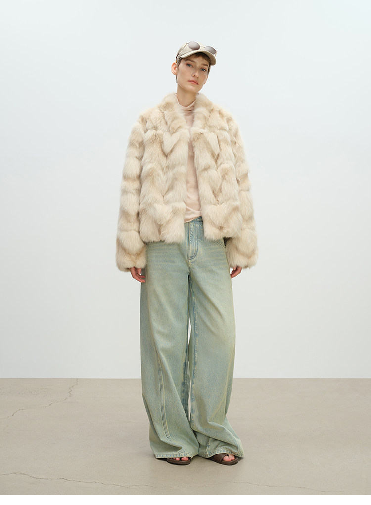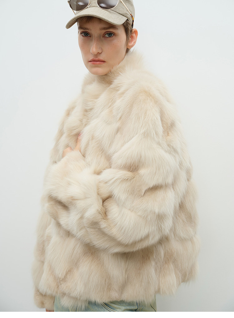 MSBEAST natural irregular V-shaped texture two-color fox leg hair stand-up collar short fur for women丨Muse Focus