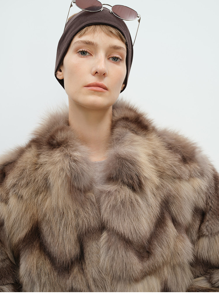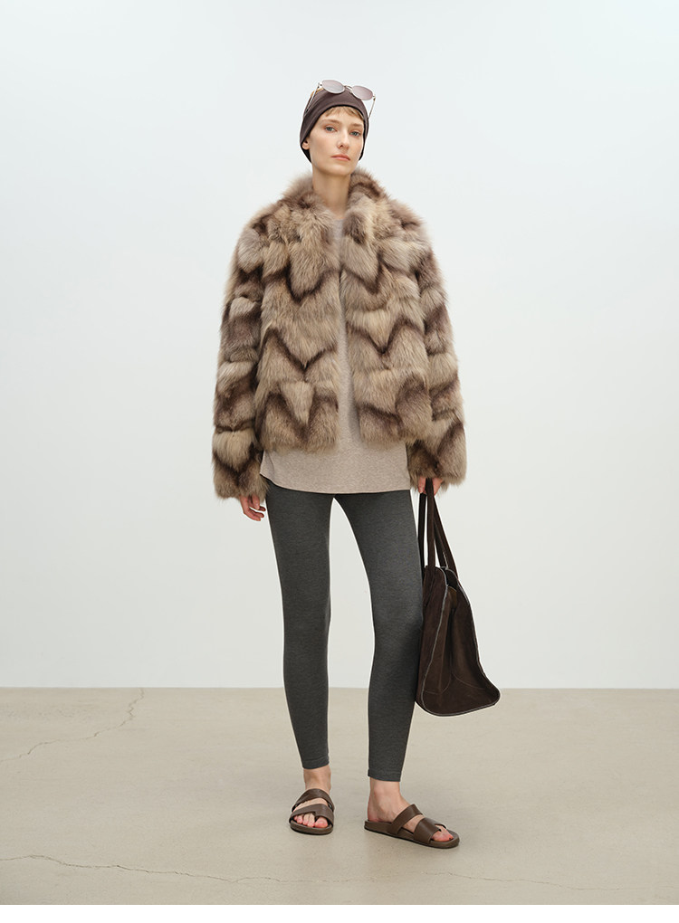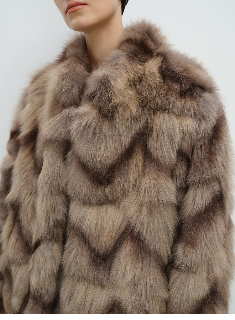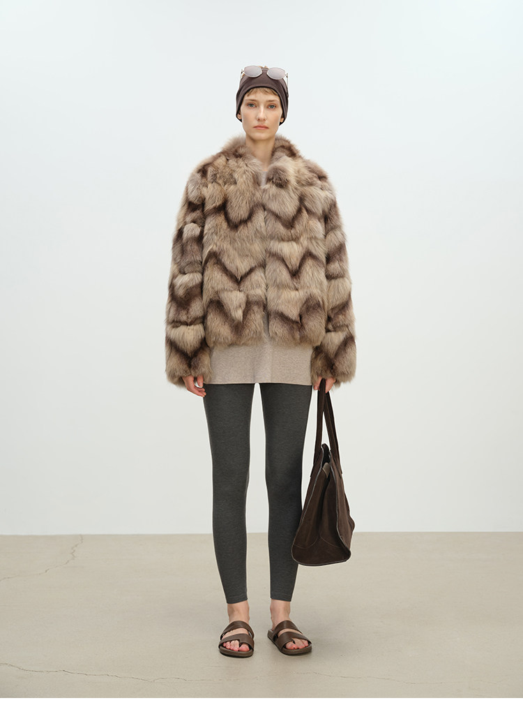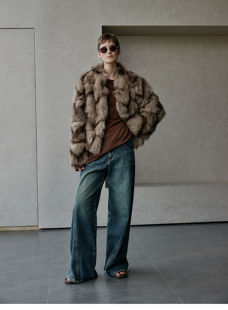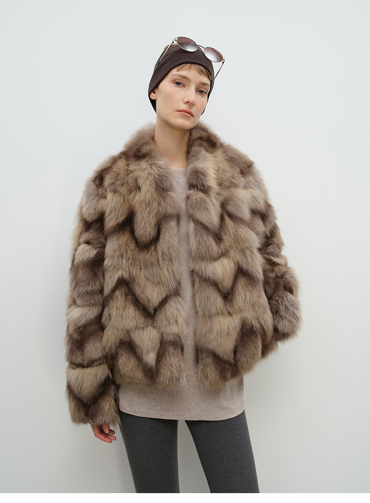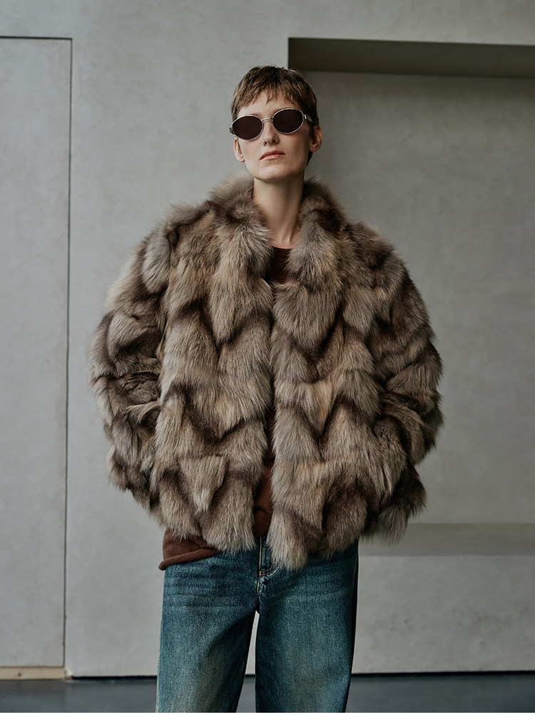 MSBEAST natural irregular V-shaped texture two-color fox leg hair stand-up collar short fur for women丨Muse Focus