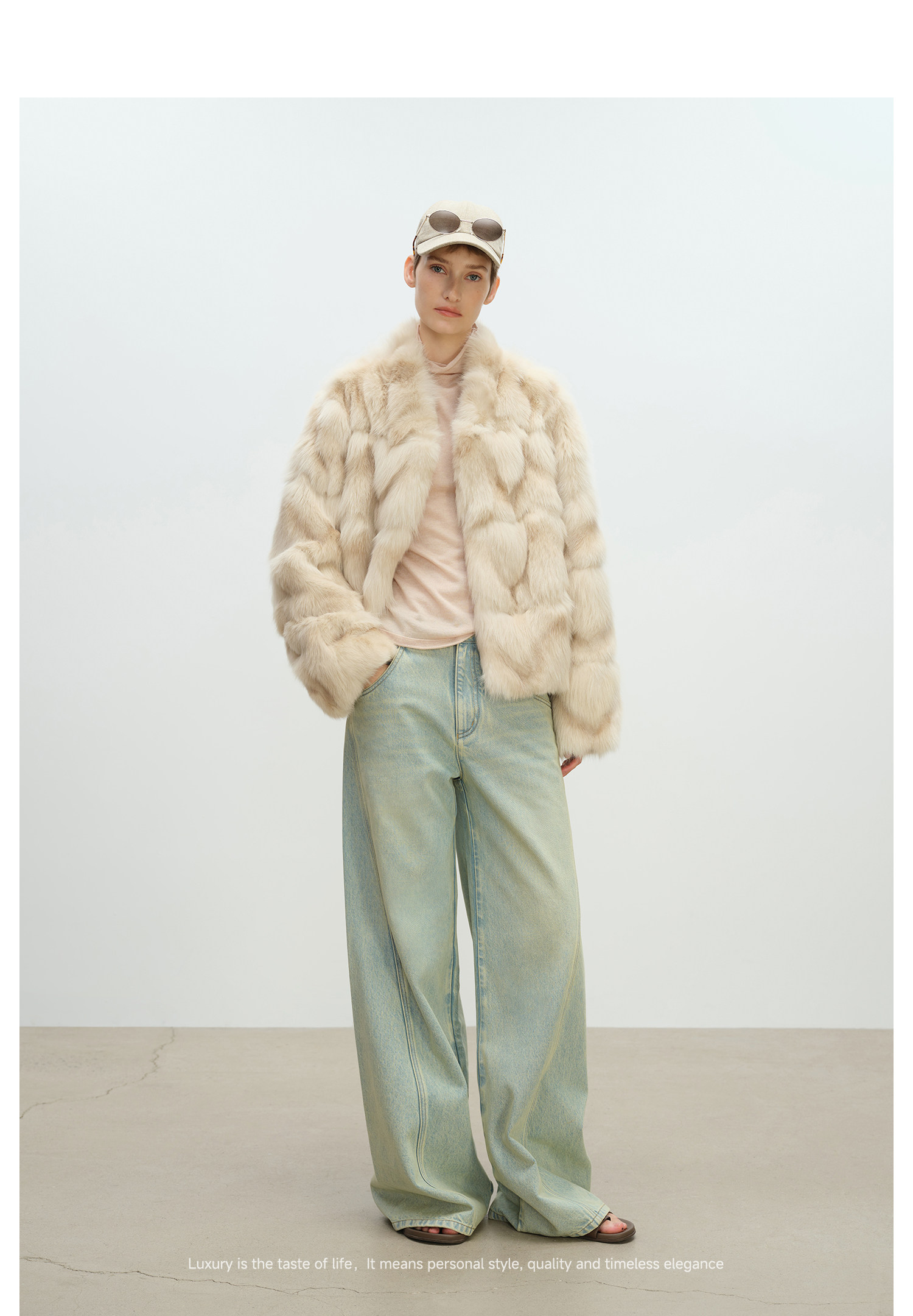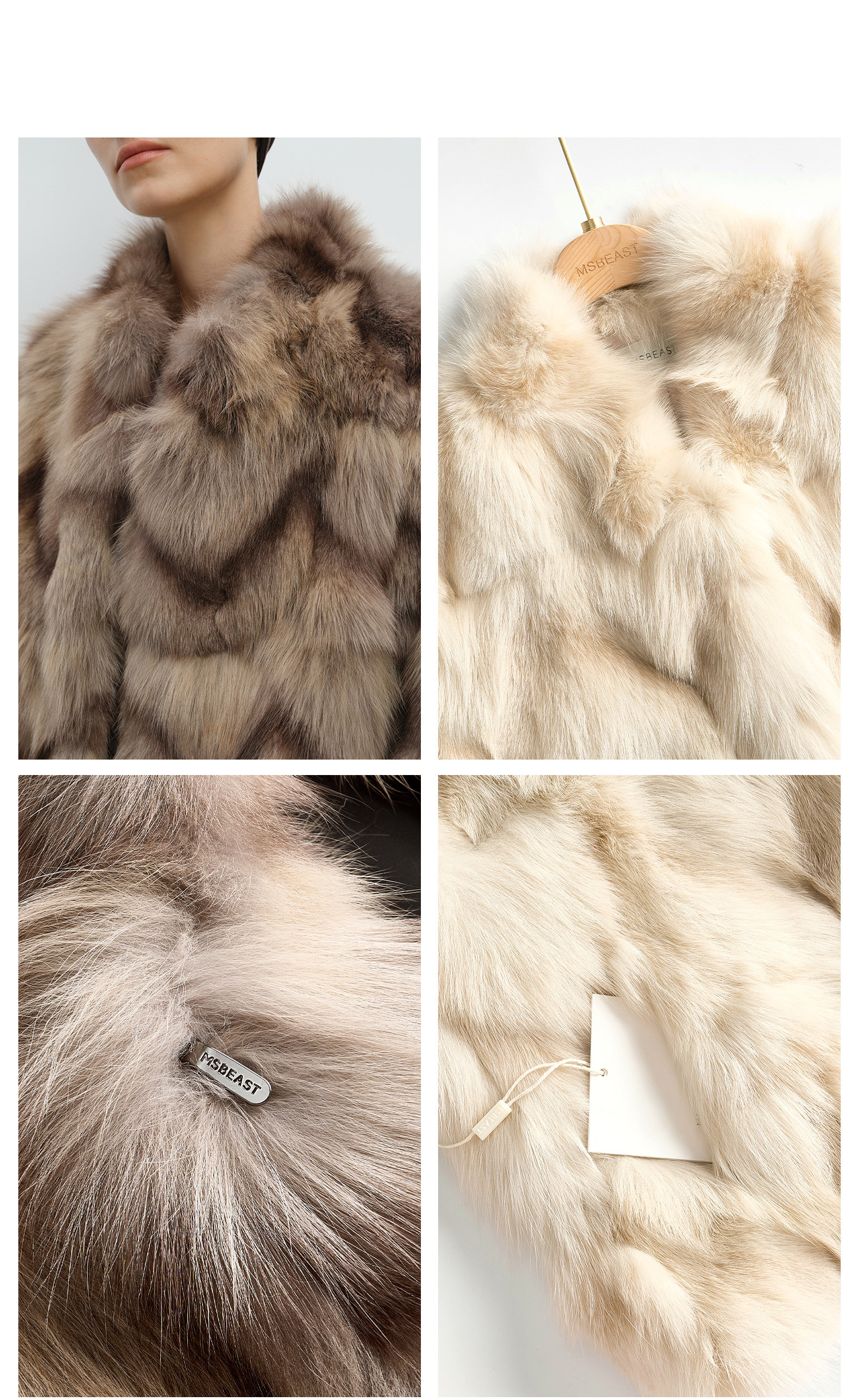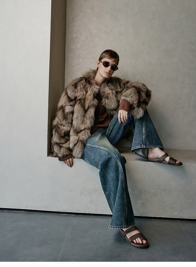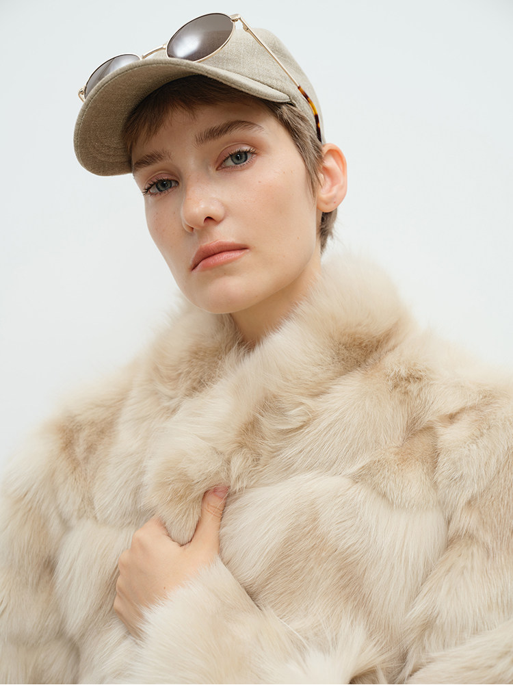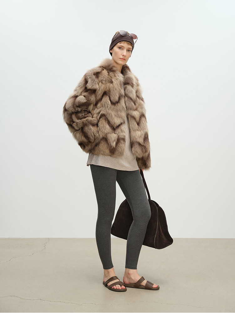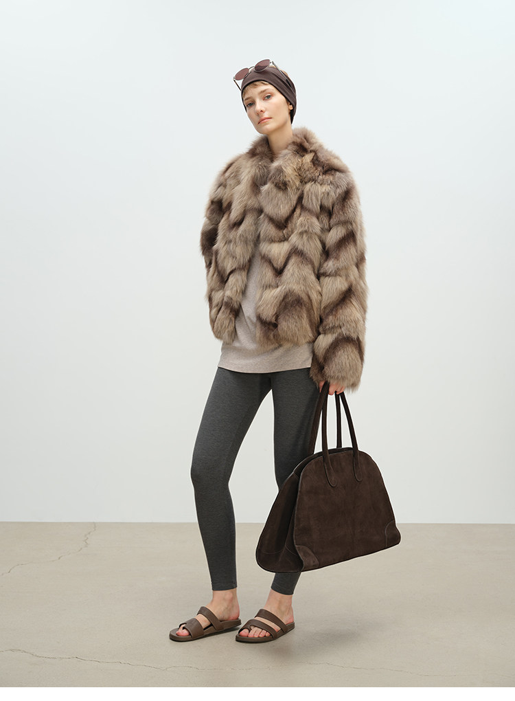 MSBEAST natural irregular V-shaped texture two-color fox leg hair stand-up collar short fur for women丨Muse Focus