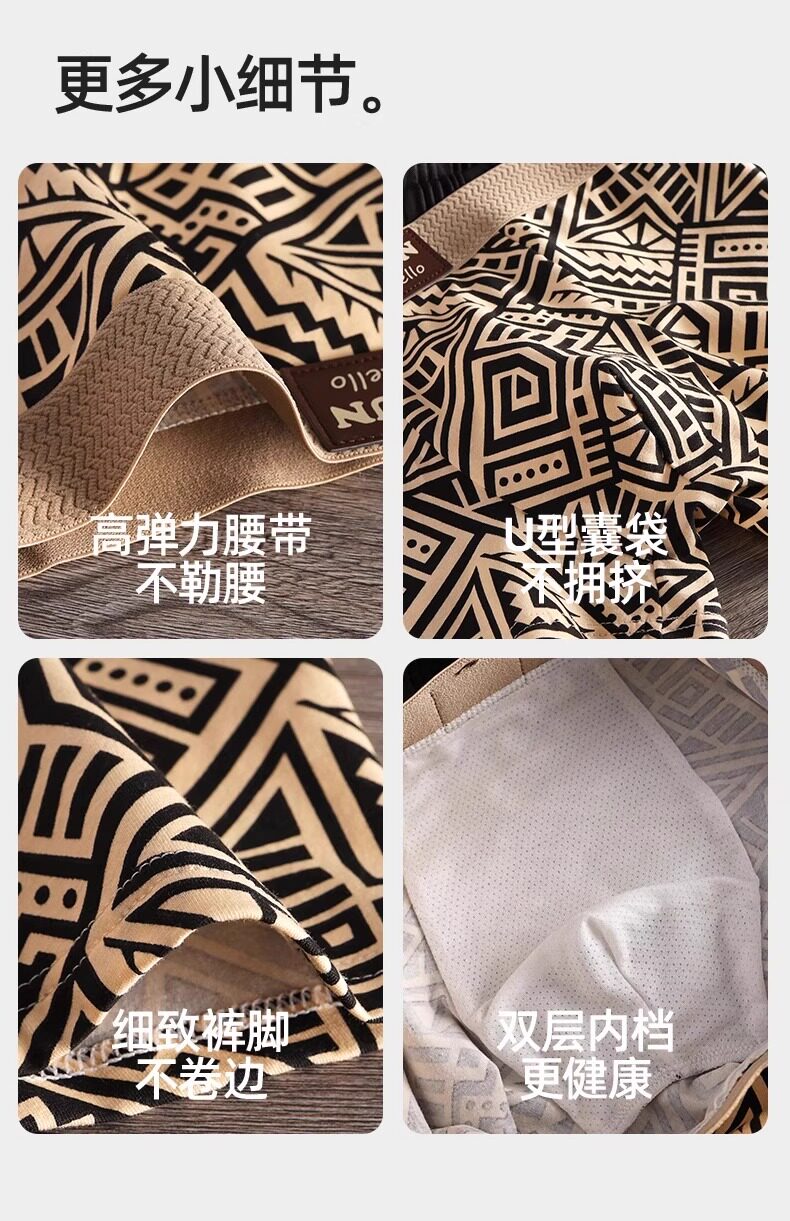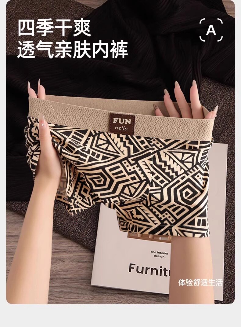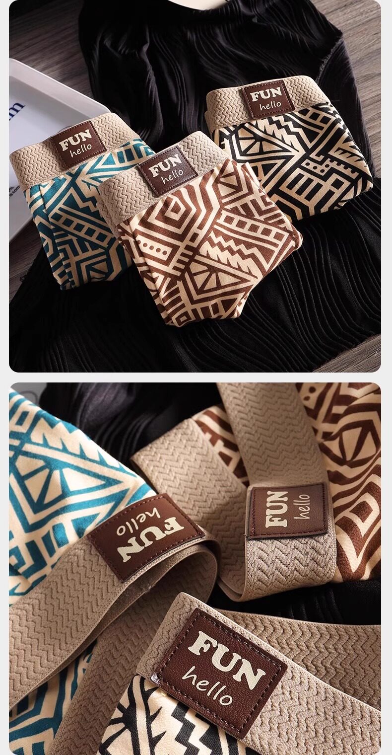 Men's Underwear Pure Cotton Boxer Briefs 2026 New Retro Print Seamless Breathable Non-Binding Men's Boxer Shorts