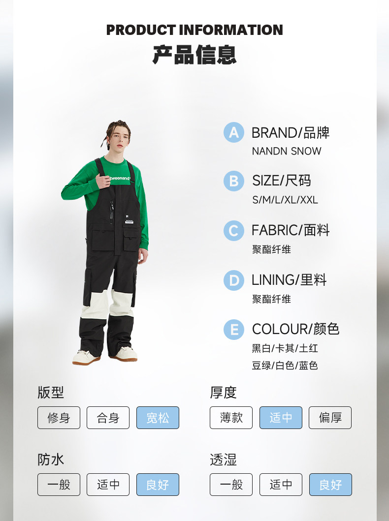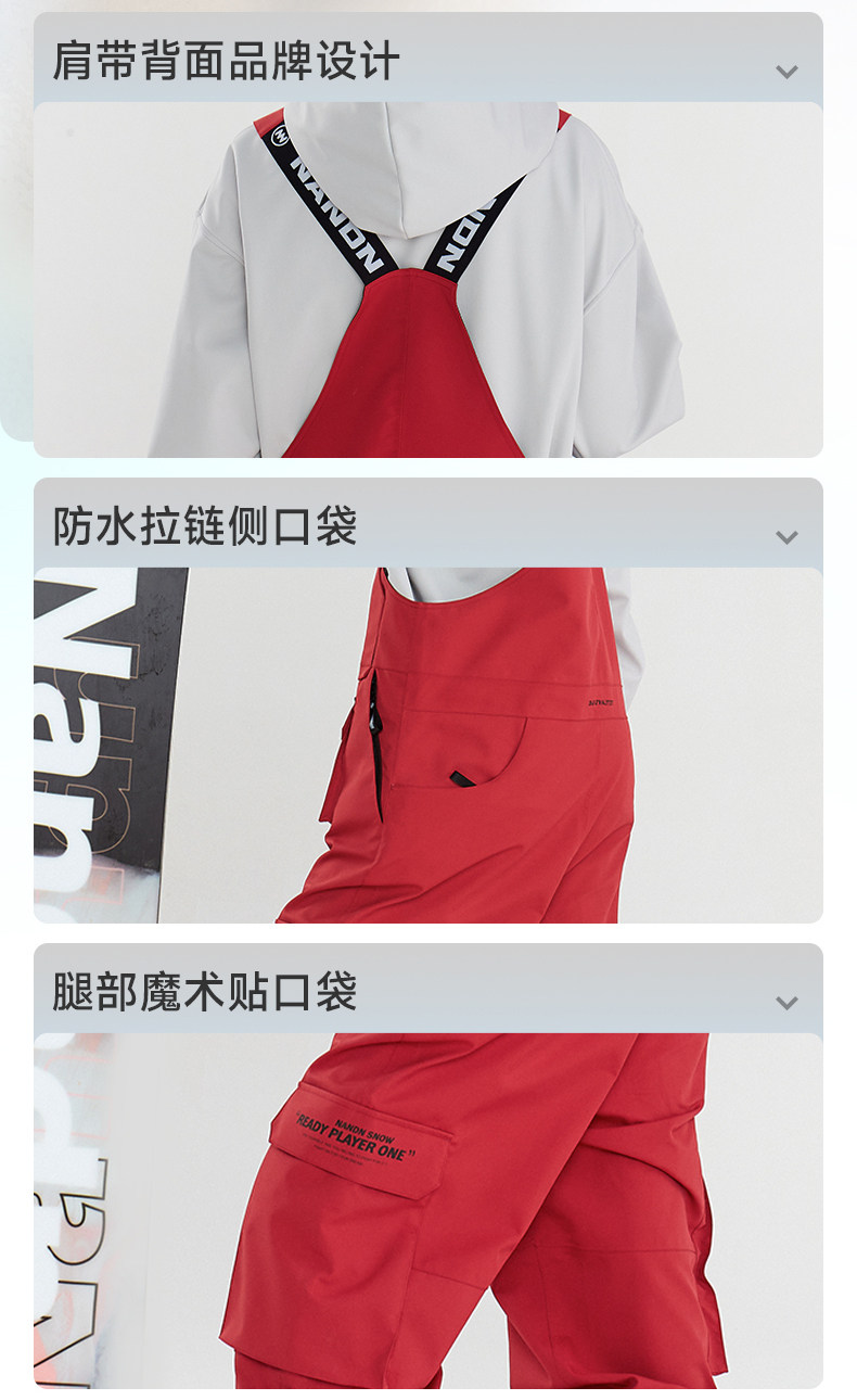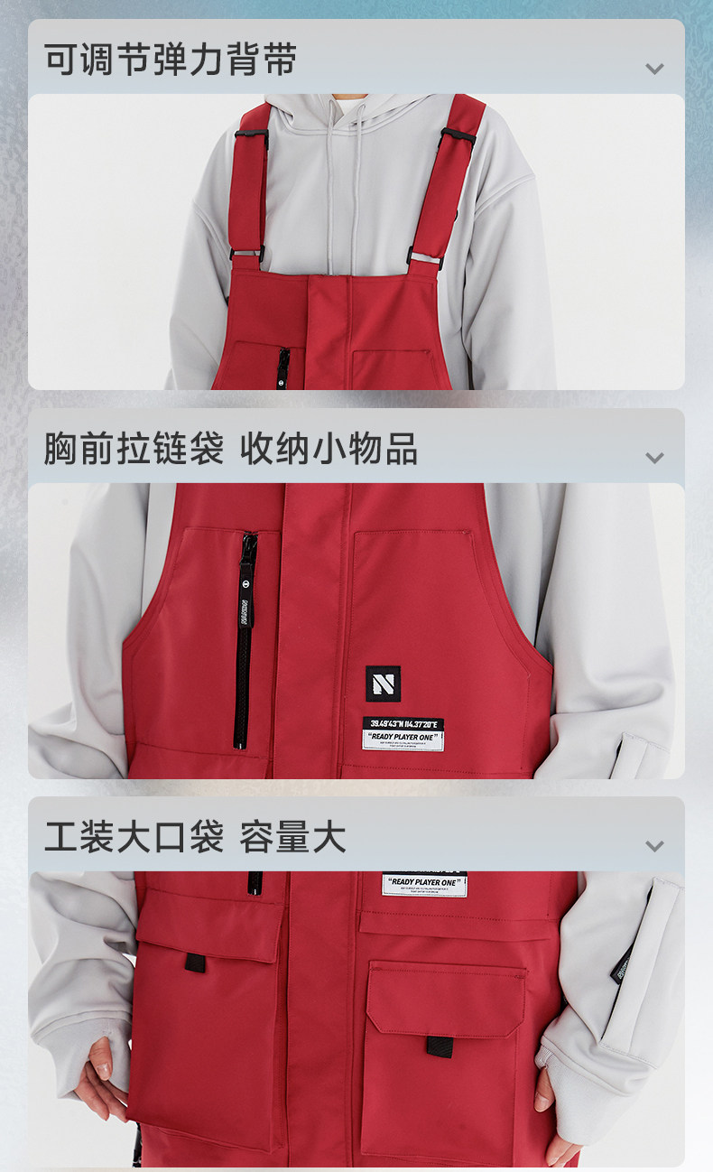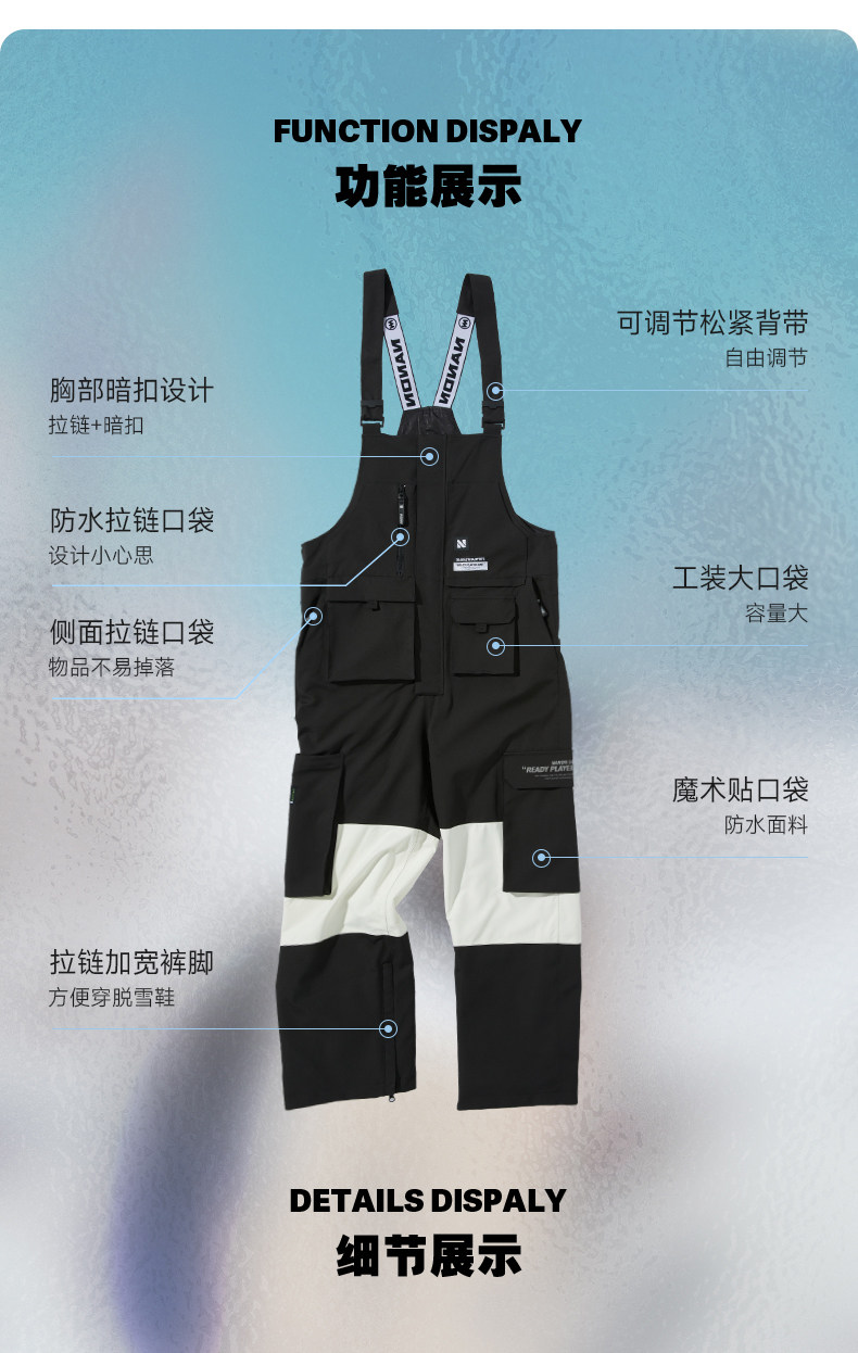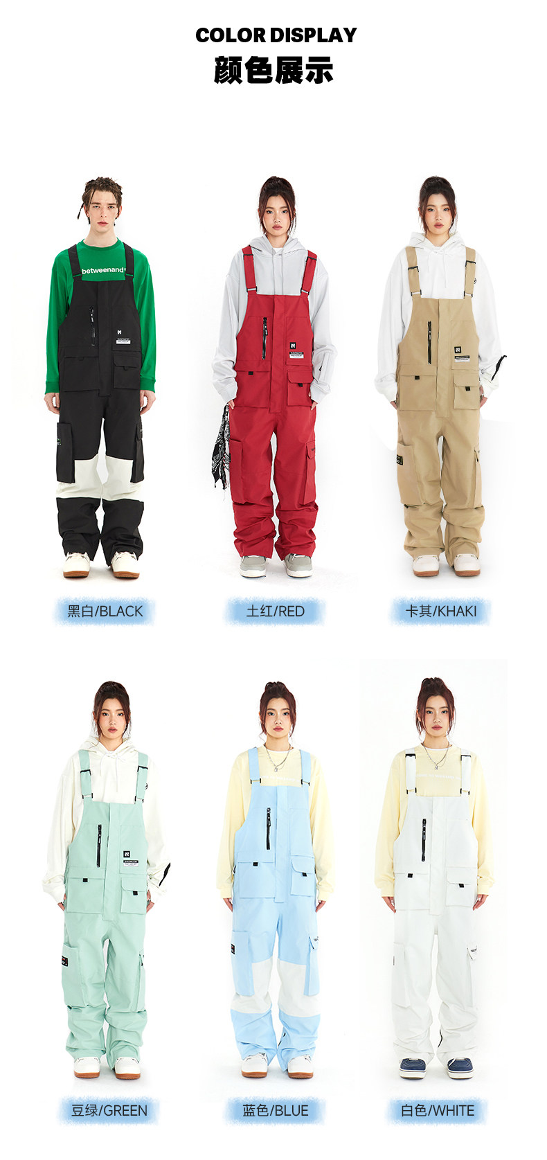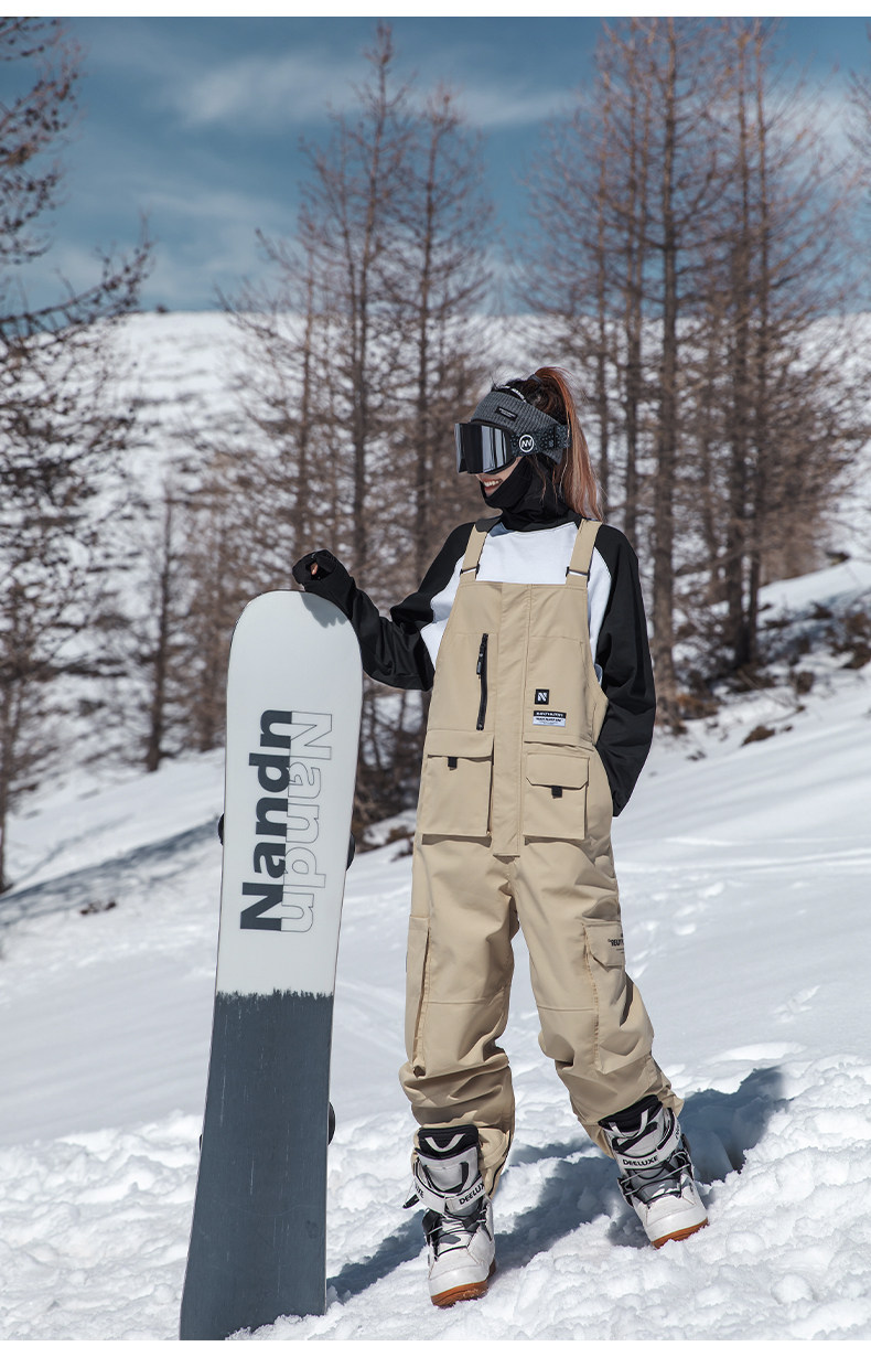 Nandn Snowboard Bib Ski Pants for Women, Waterproof and Windproof, Loose-Fitting Winter One-Piece Snow Pants for Men, Warm Bottoms