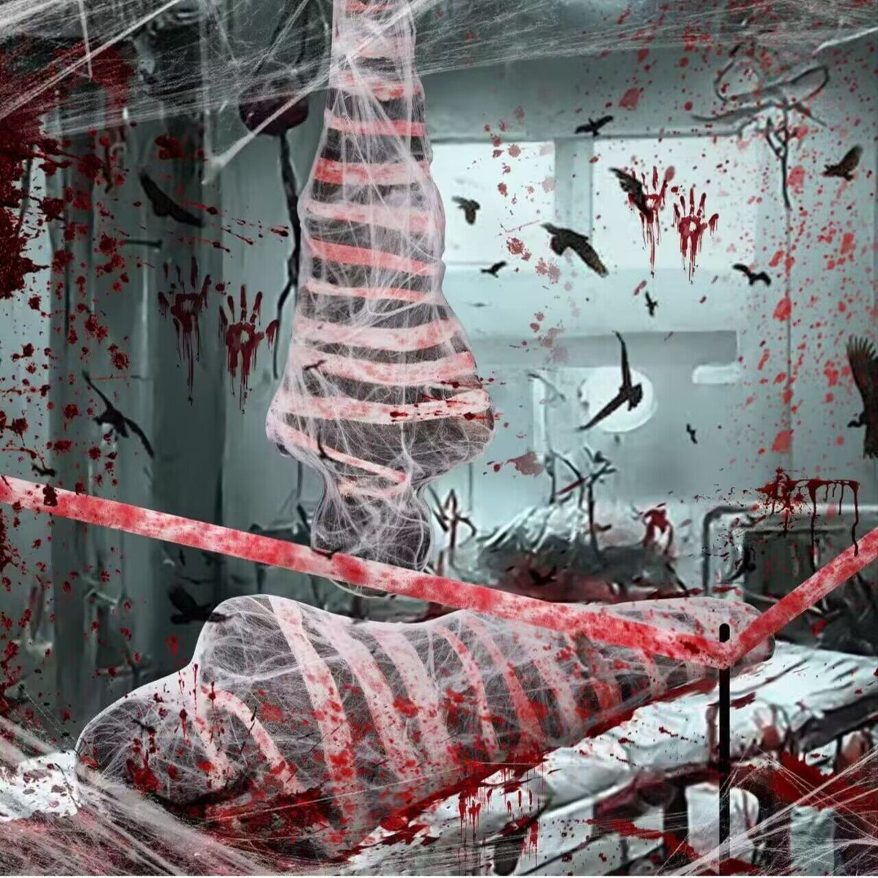 Color Classification Halloween Props: Blood-Stained Cloth Strip Corpse, Black,Halloween Props: Blood-Stained Cloth Strip Corpse, Blood-Red