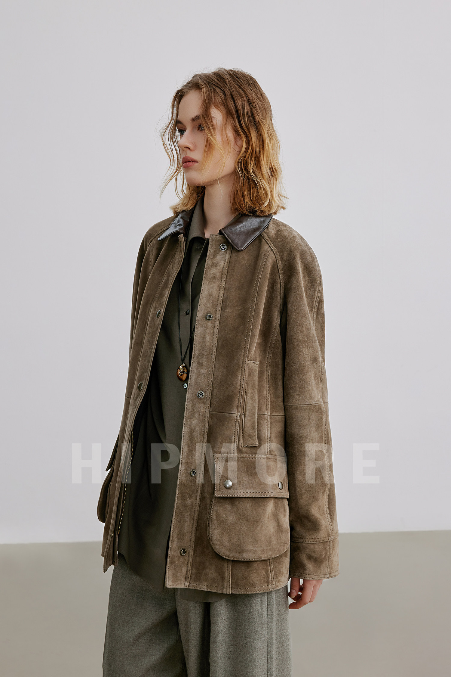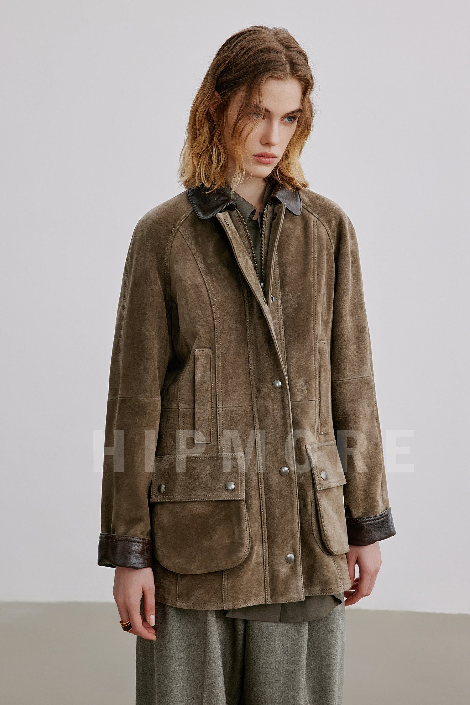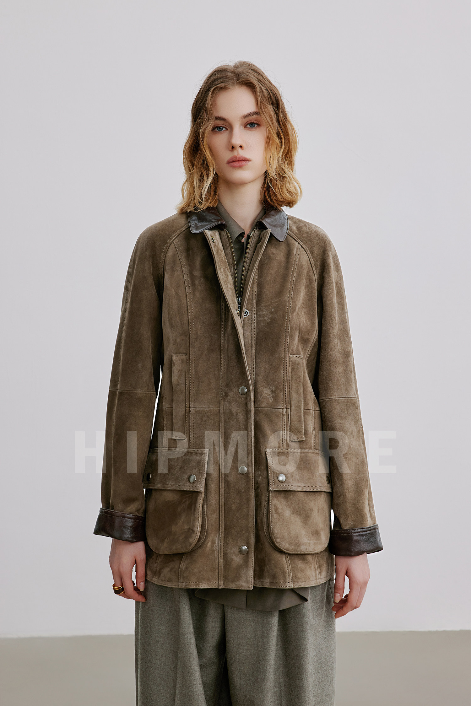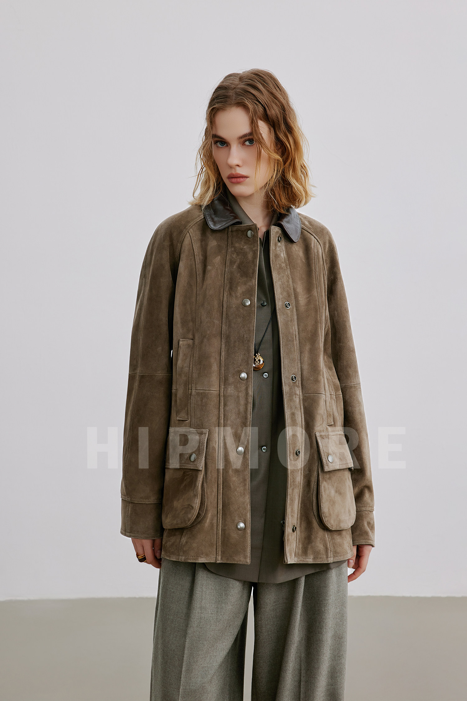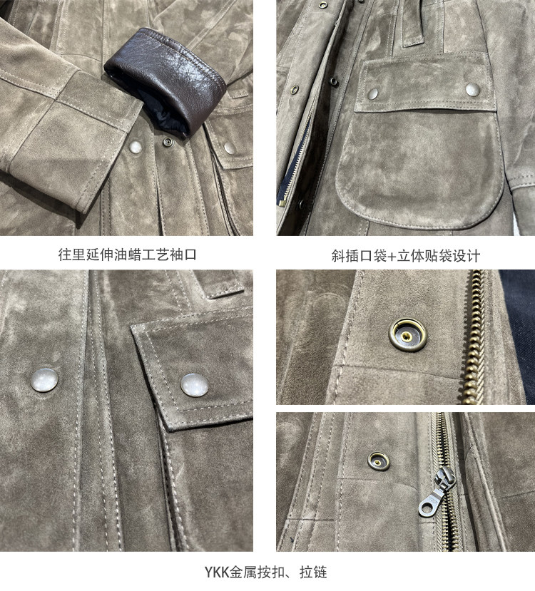 London impression retro Barn style North African imported sheepskin anti-suede leather jacket women's lapel mid-length autumn new style